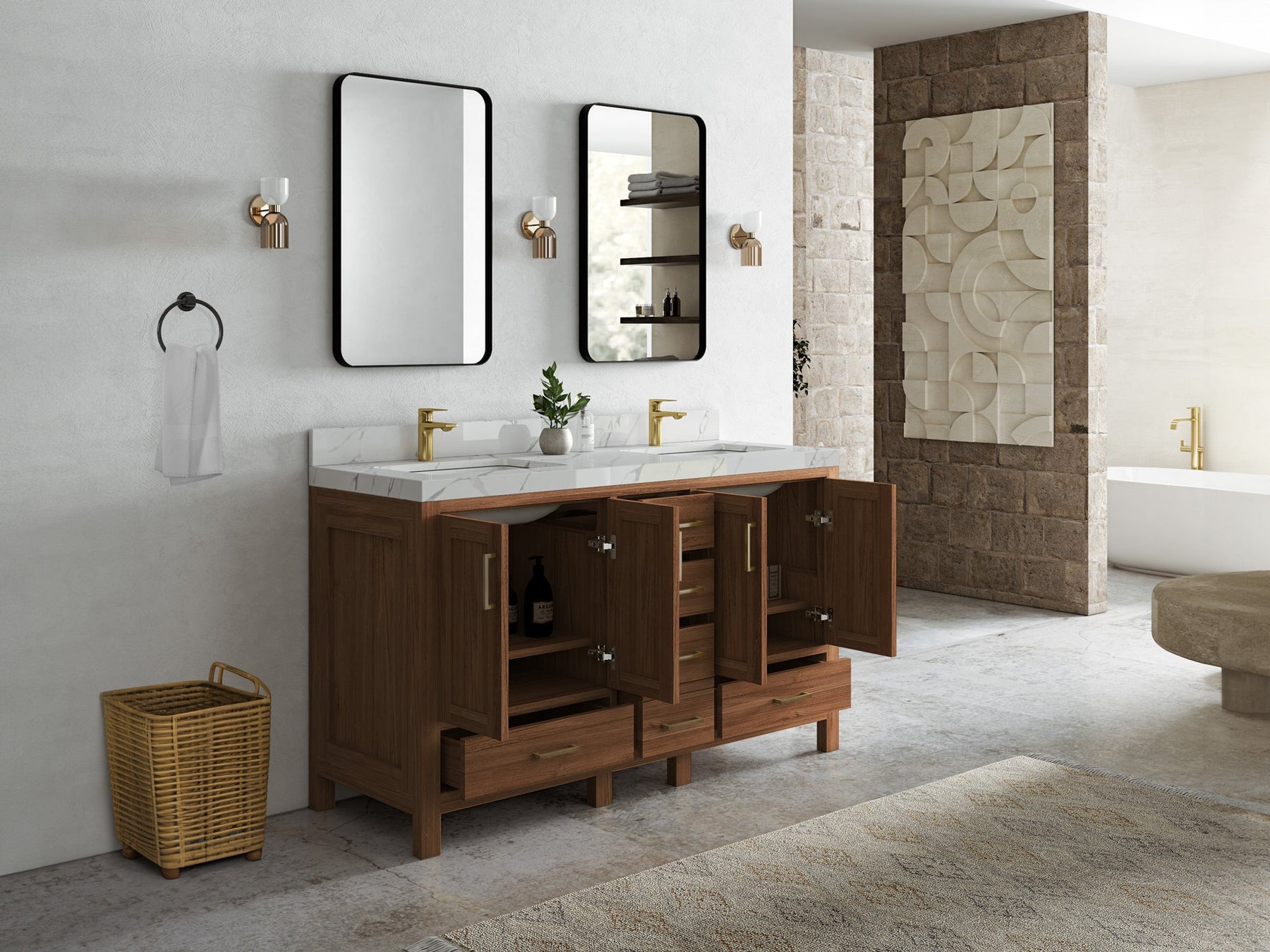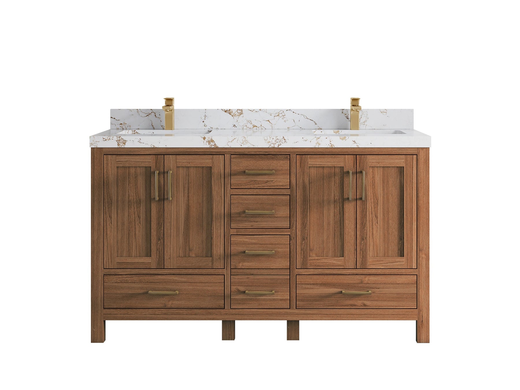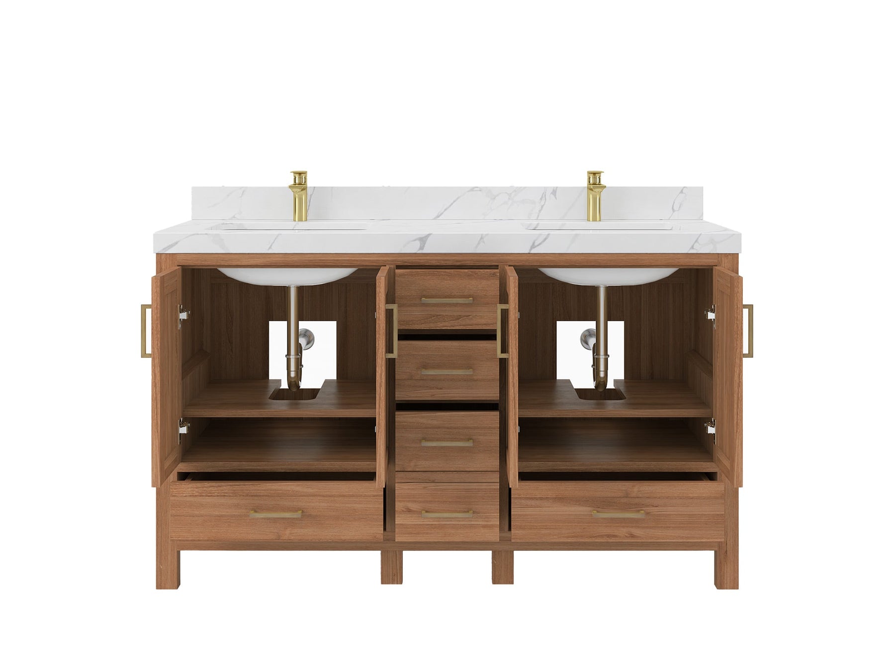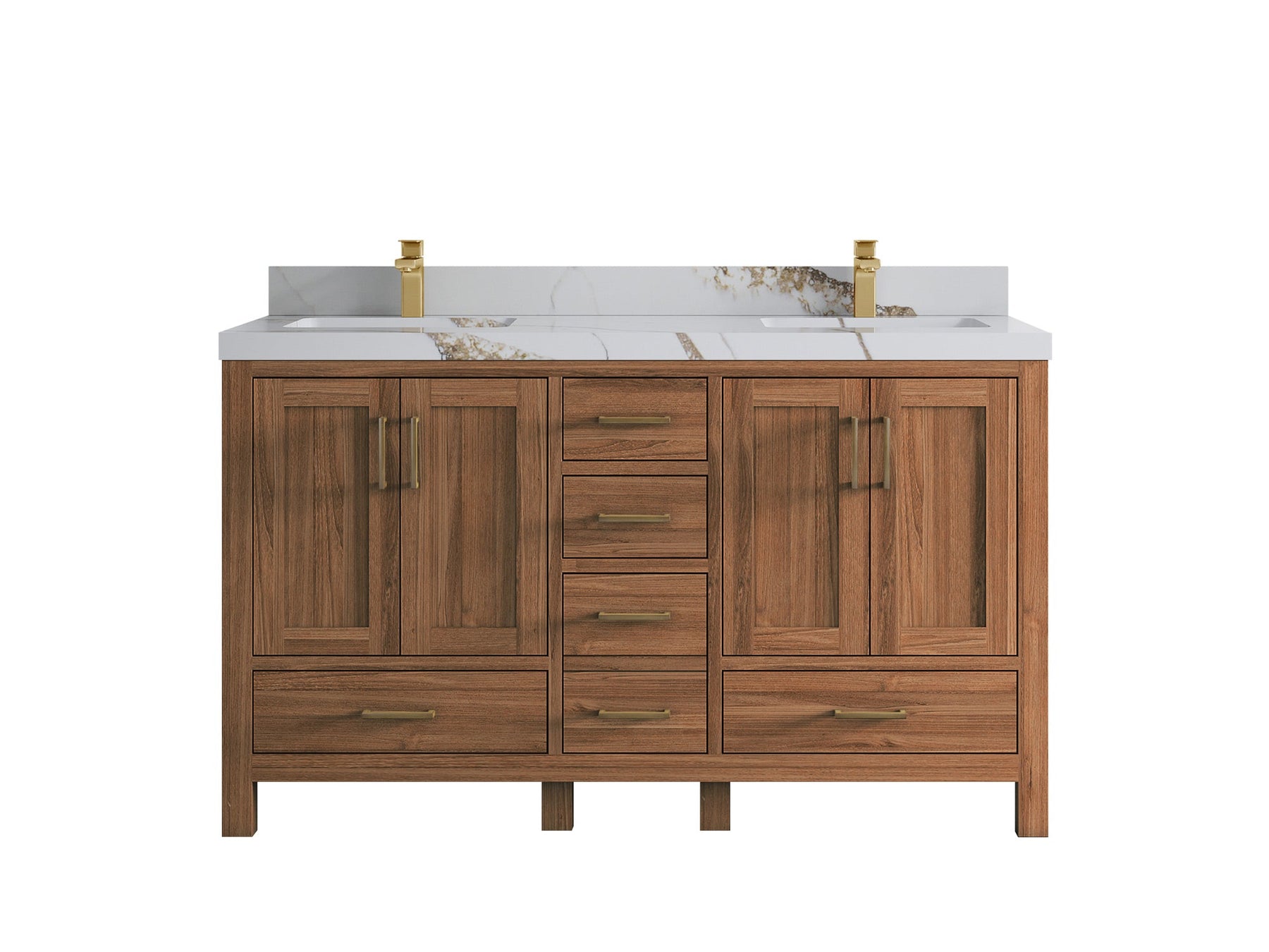Malibu Teak Wood 60 in. W x 22 in. D Double Sink Bathroom Vanity | Dark Natural Teak