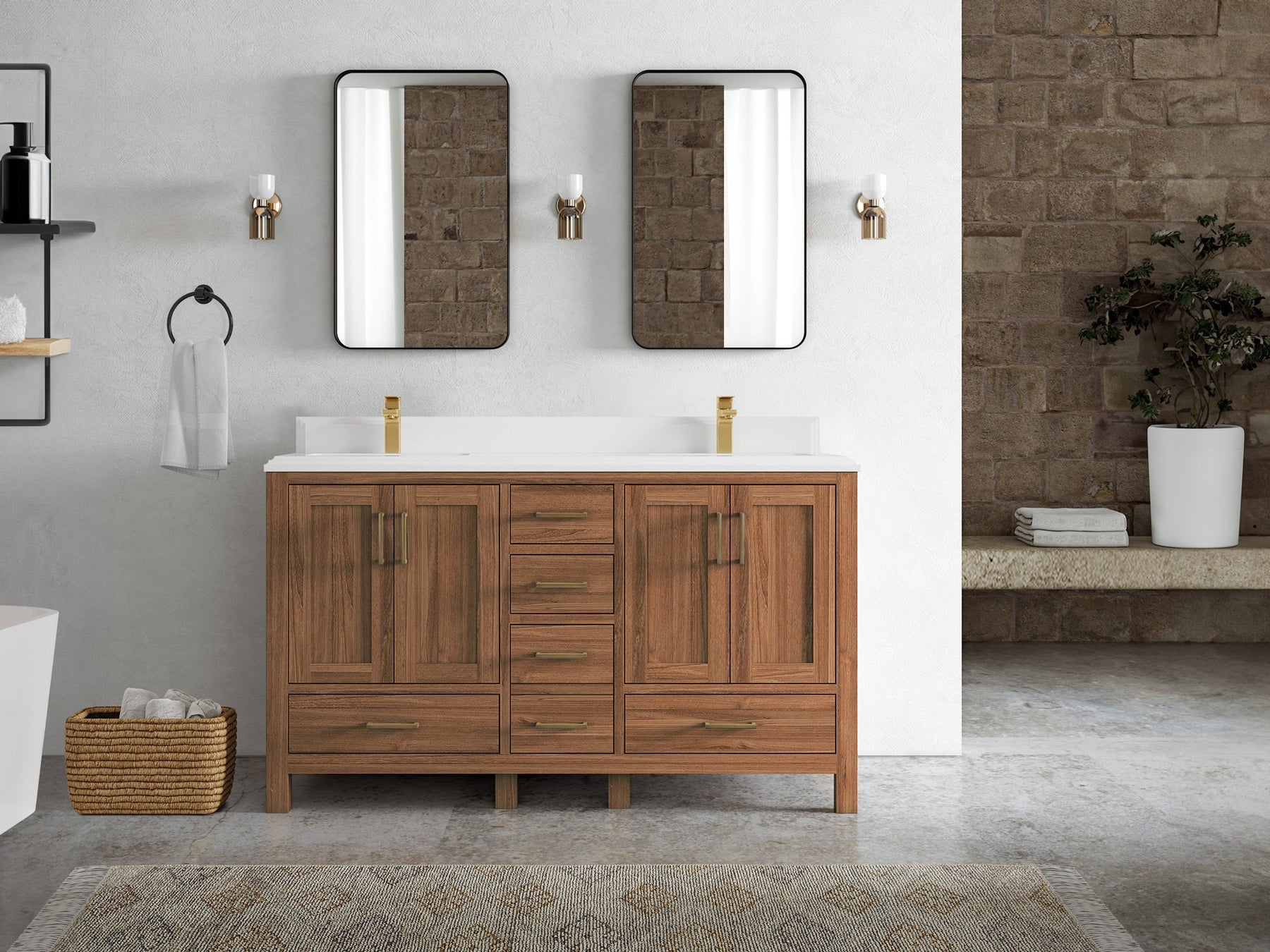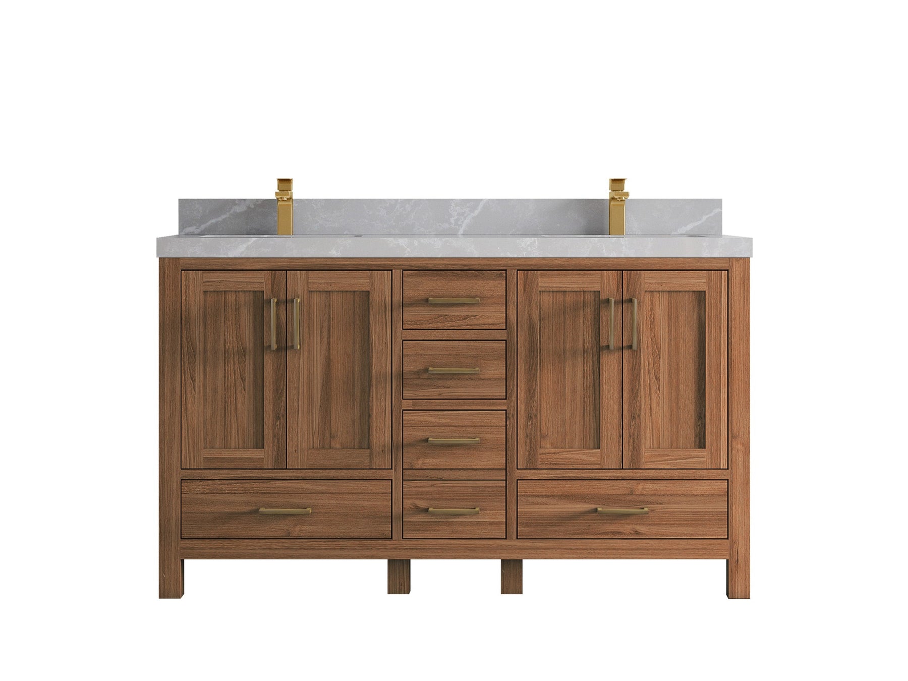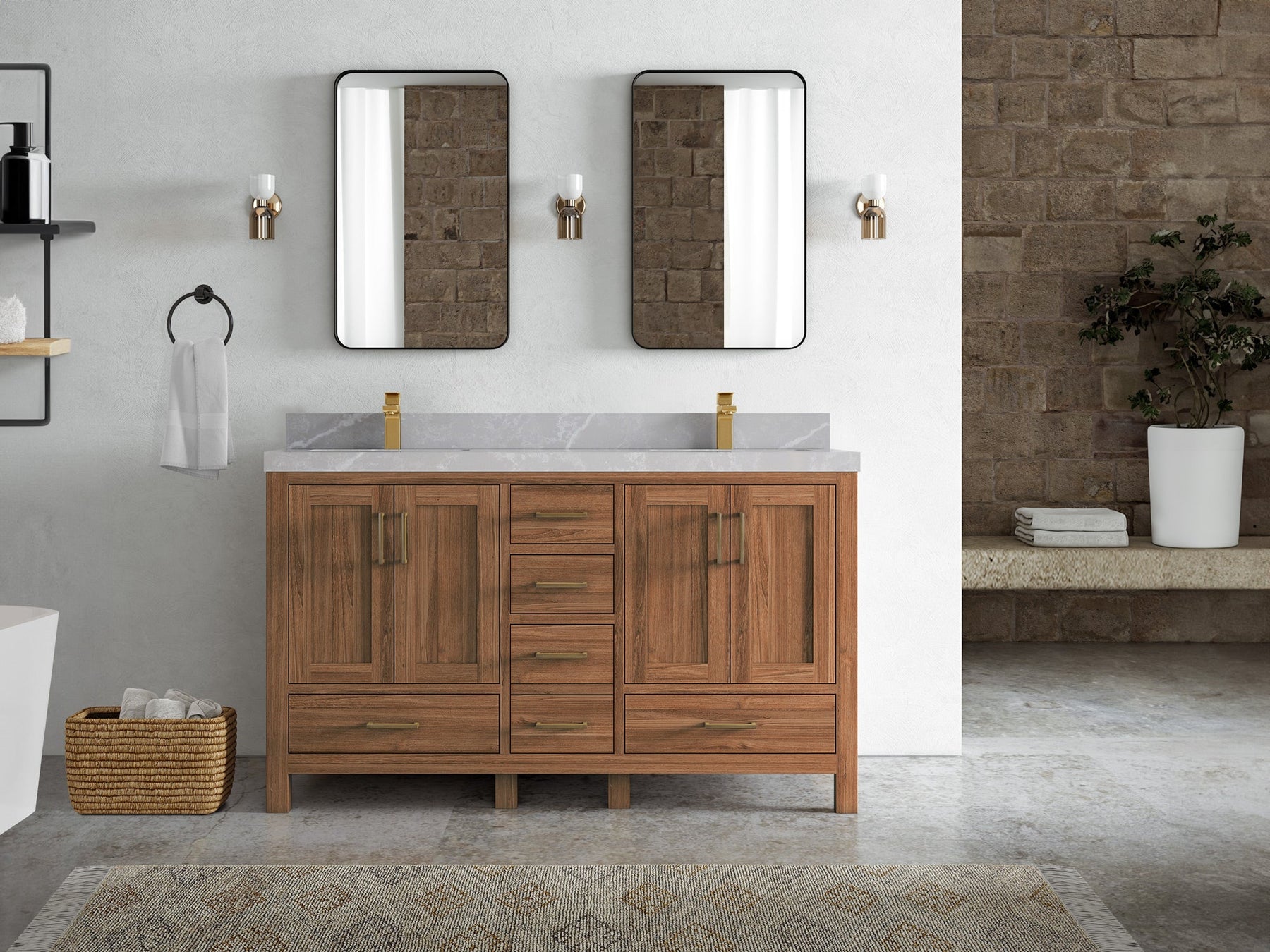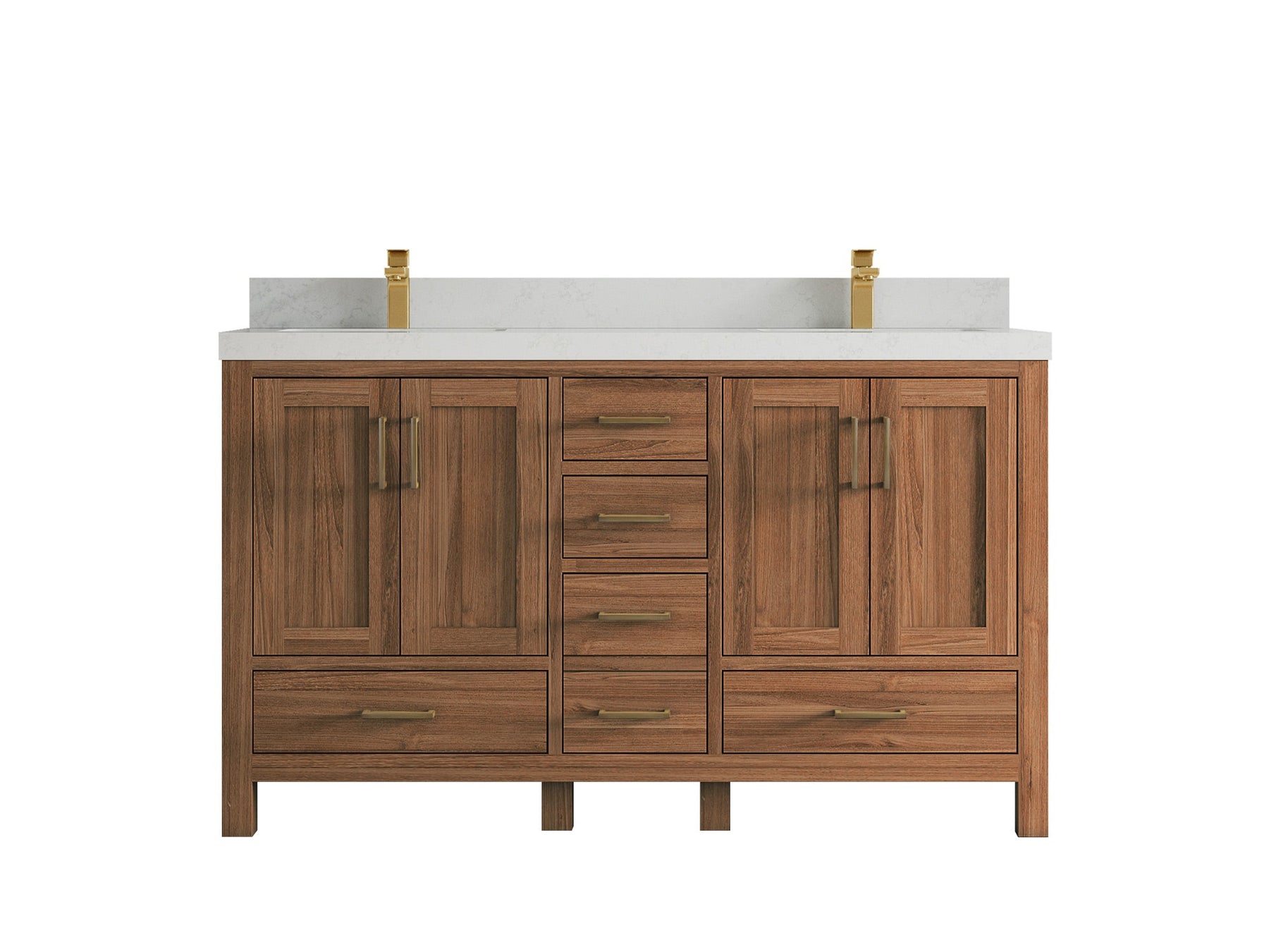 Malibu Teak Wood 60 in. W x 22 in. D Double Sink Bathroom Vanity - Willow Bath and Vanity