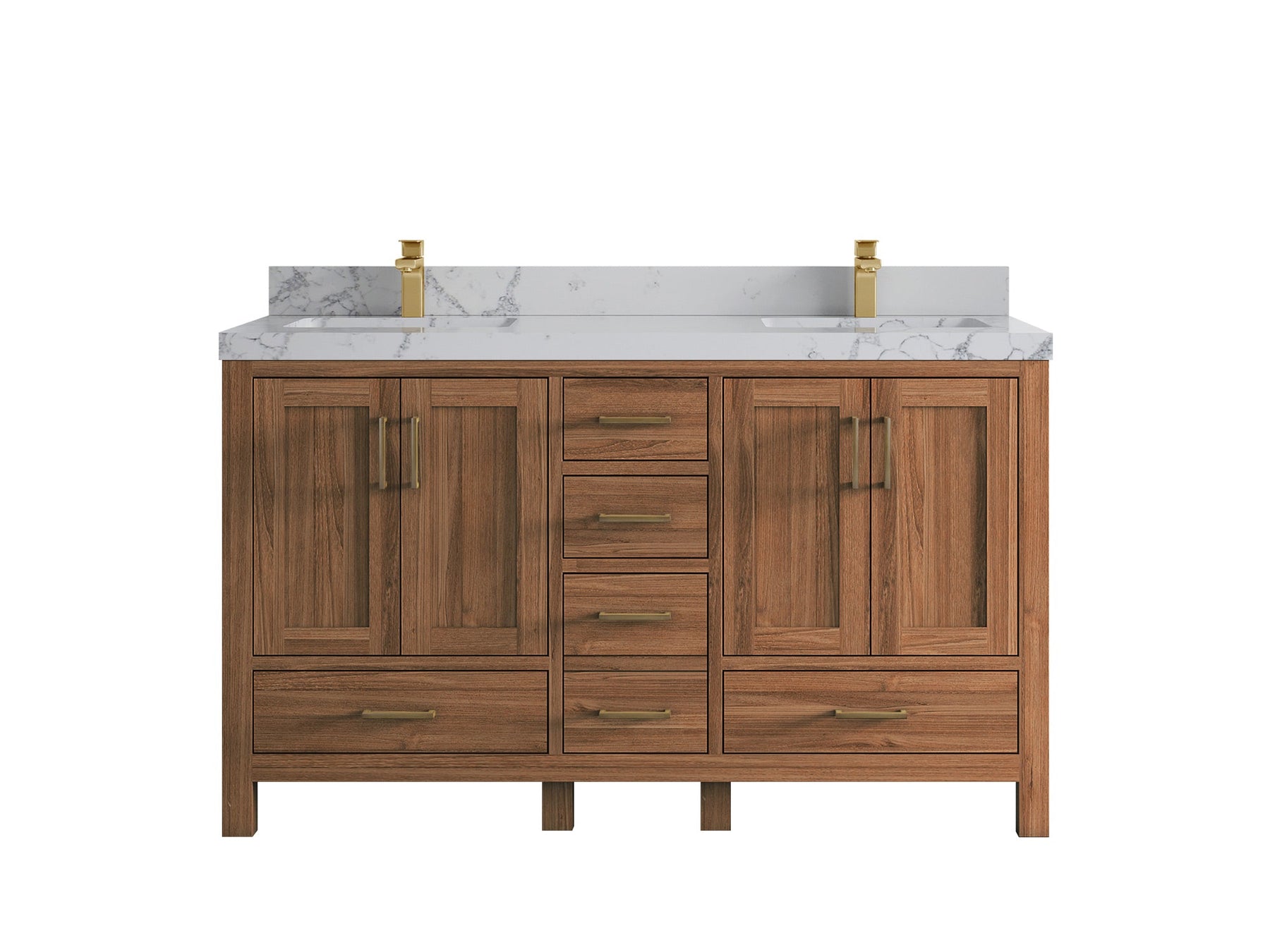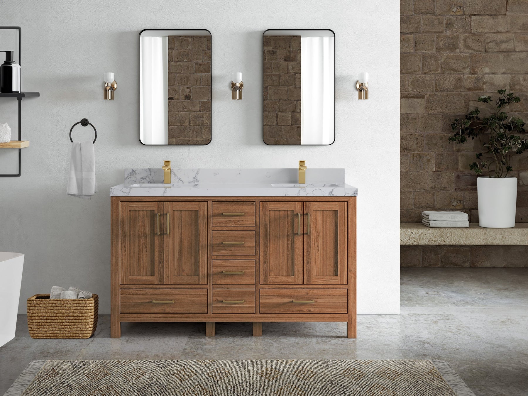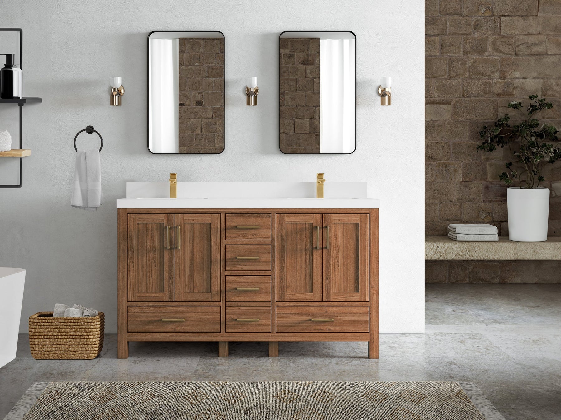 Malibu Teak Wood 60 in. W x 22 in. D Double Sink Bathroom Vanity - Willow Bath and Vanity