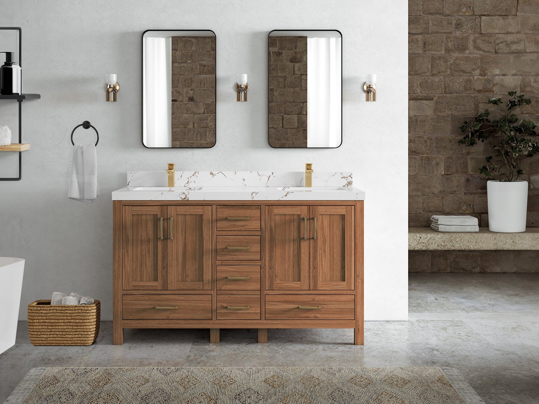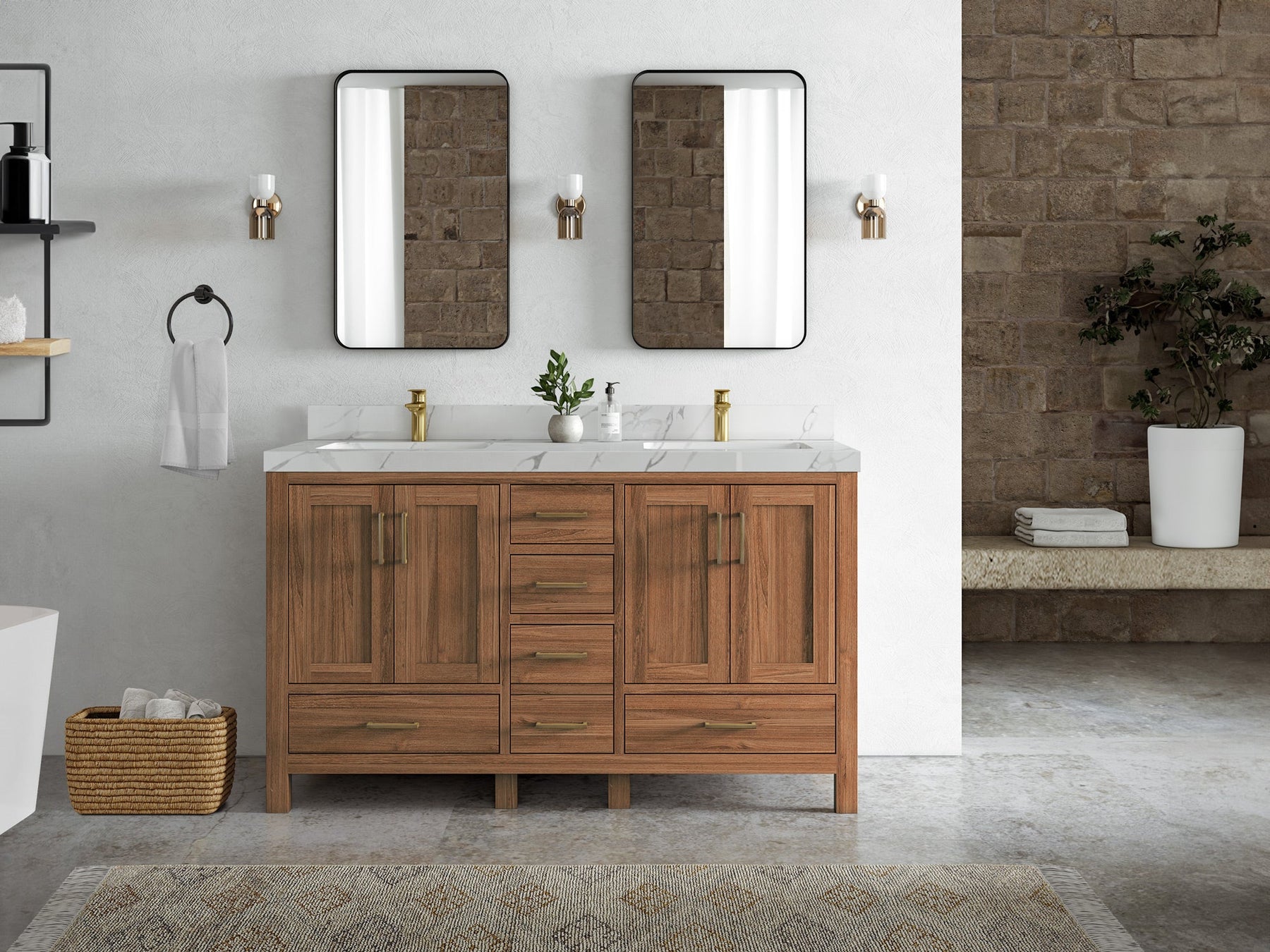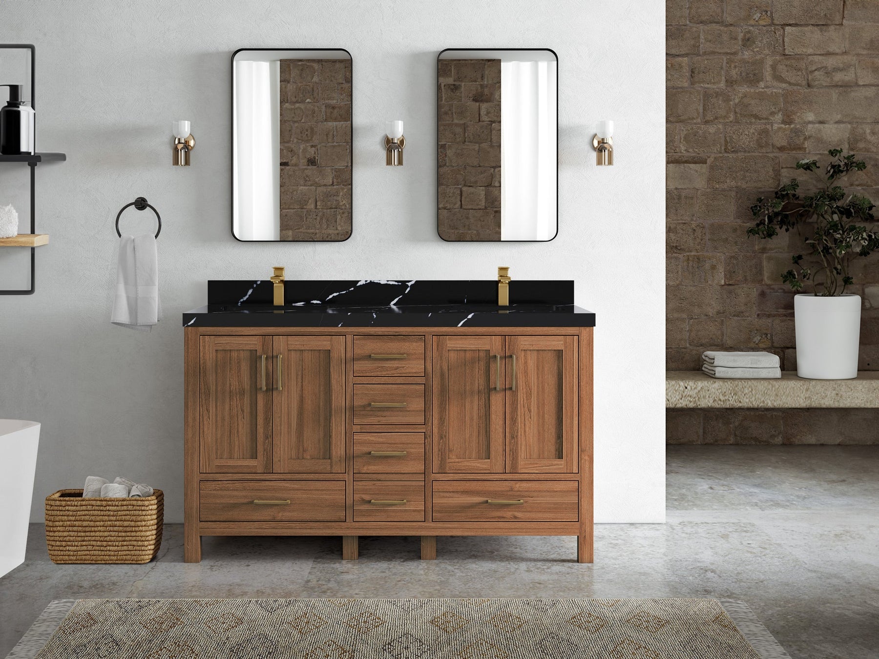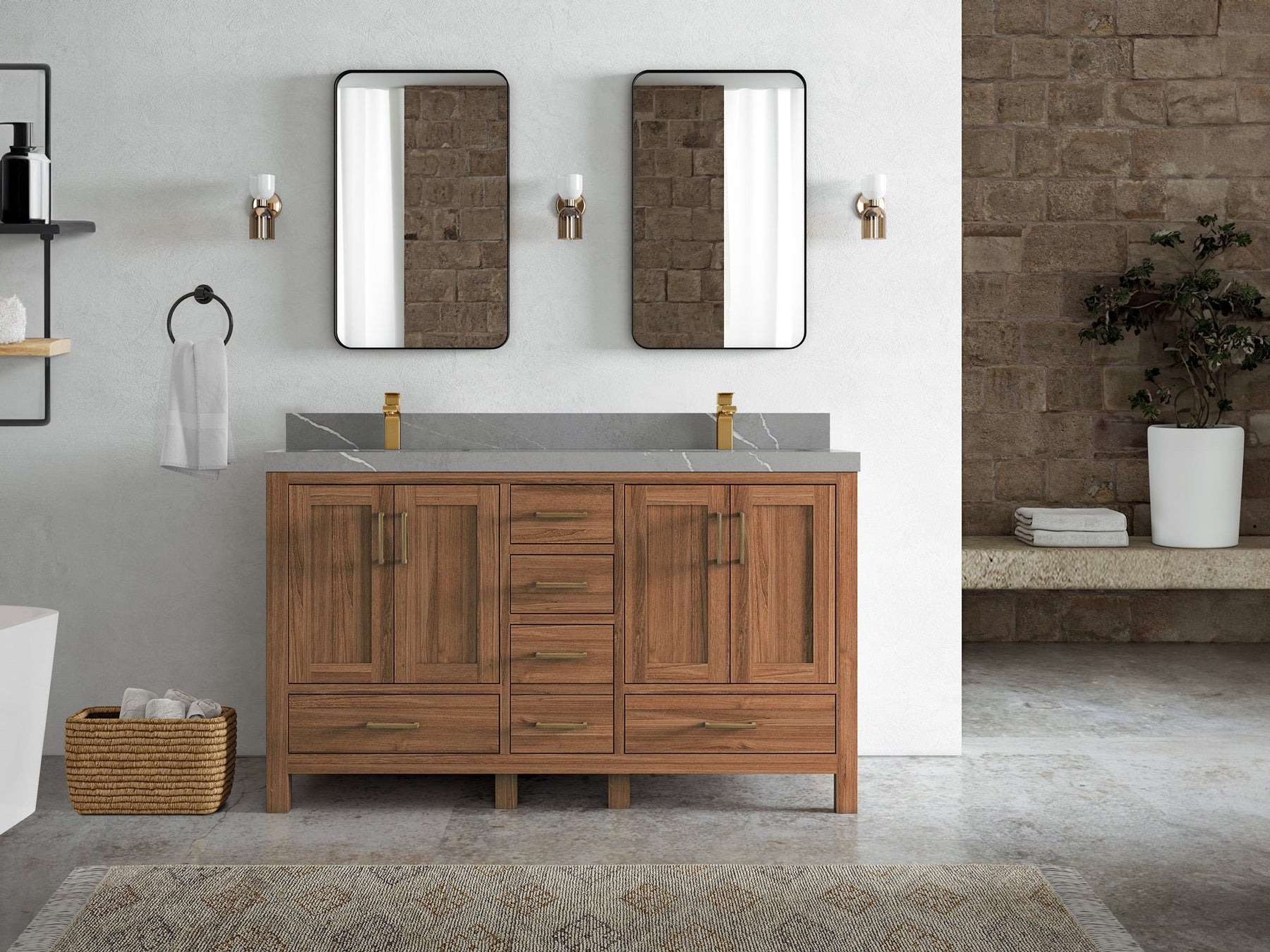 Malibu Teak Wood 60 in. W x 22 in. D Double Sink Bathroom Vanity - Willow Bath and Vanity