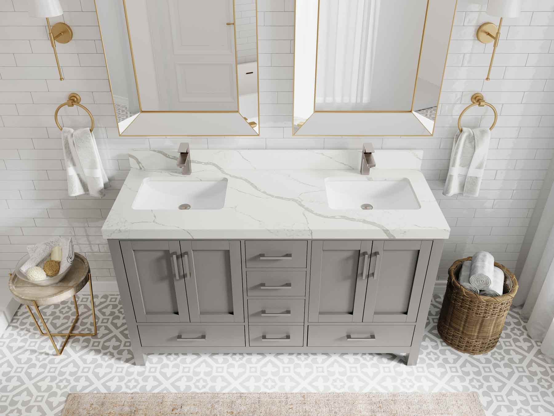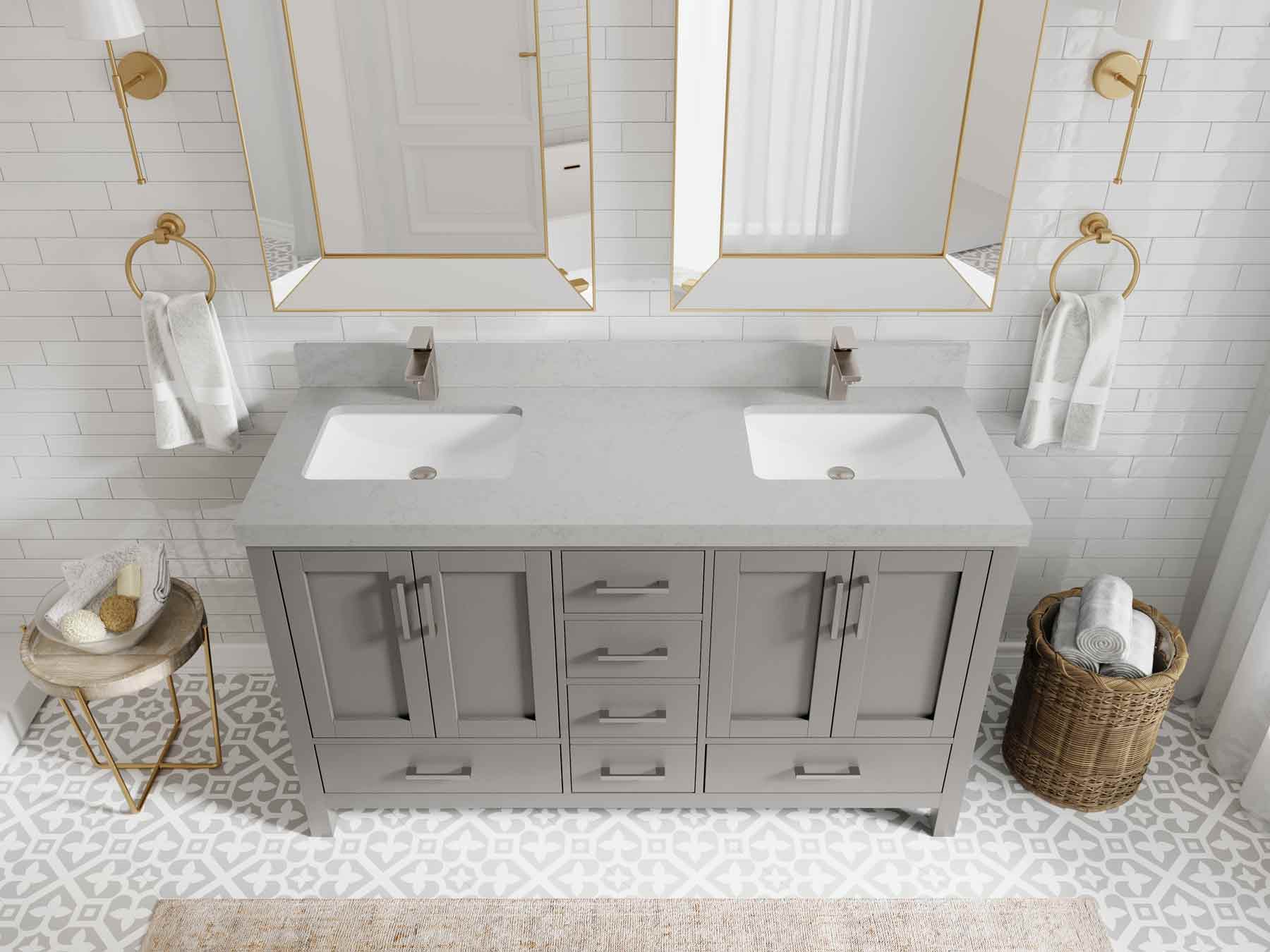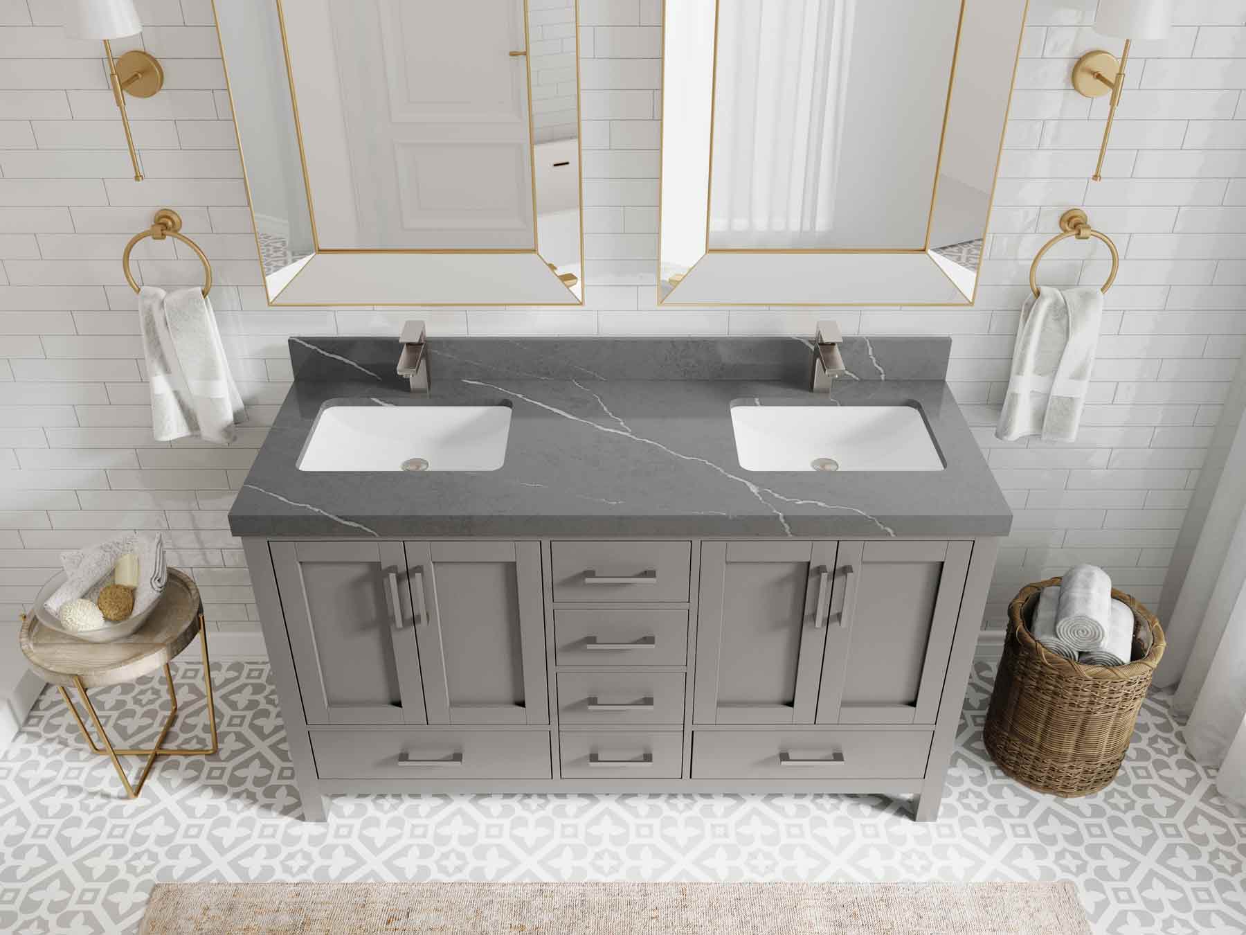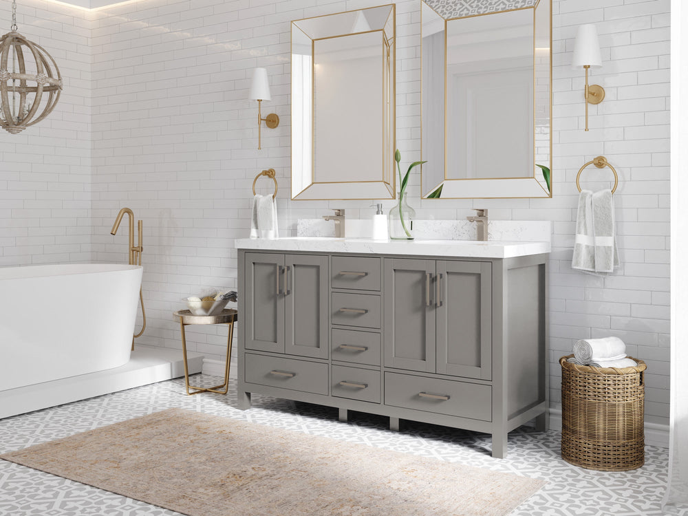 Malibu 60 in. W x 22 in. D Double Sink Bathroom Vanity | Elephant Skin Gray