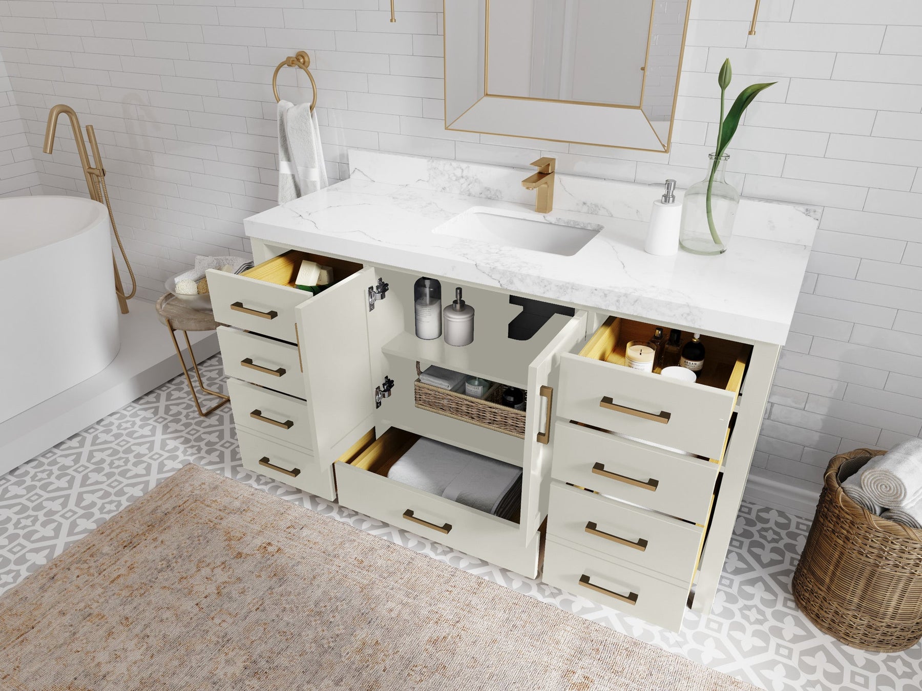 4. Plenty of storage space - this vanity comes with plenty of cabinet space to store all your bathroom essentials.
