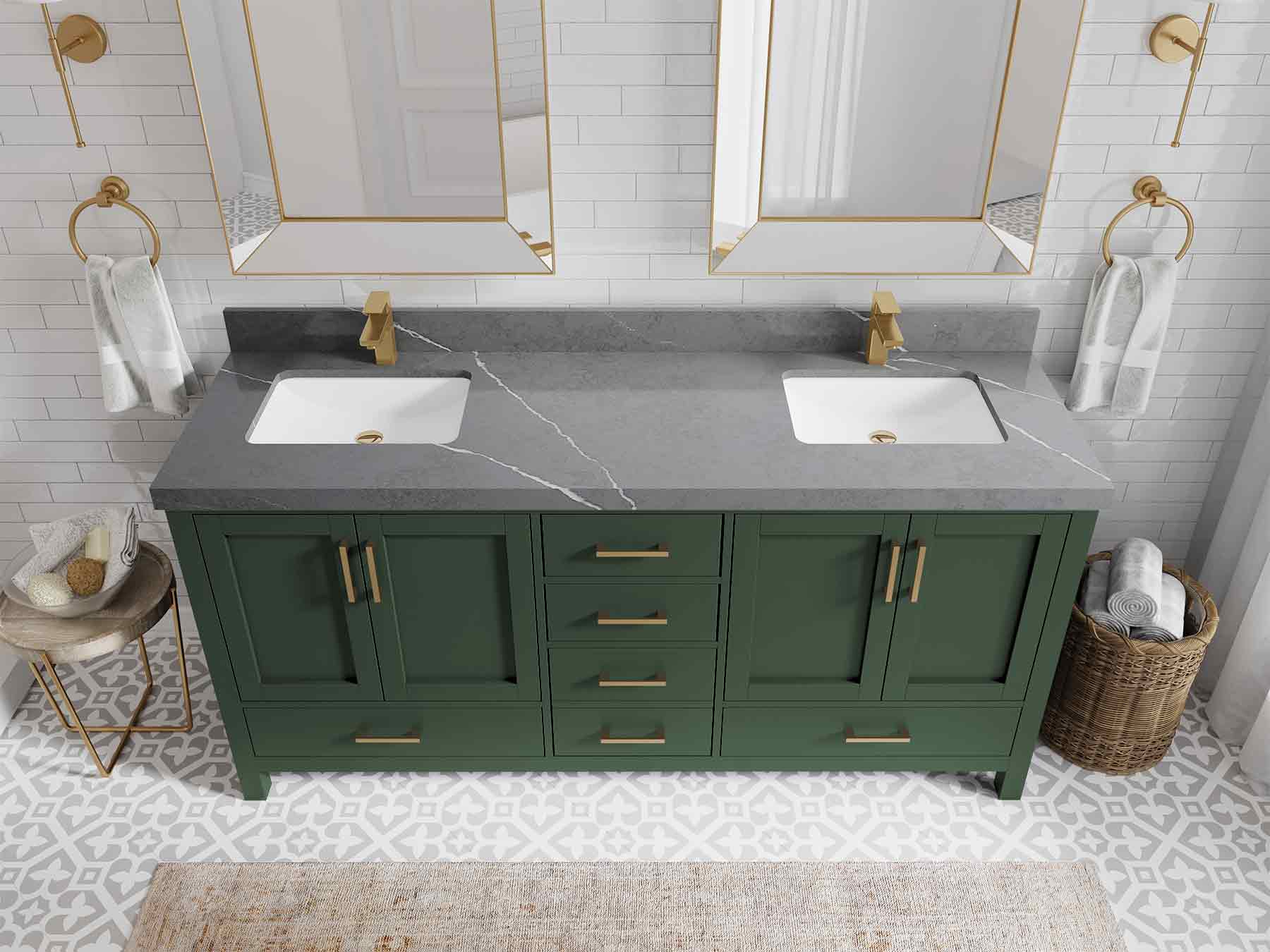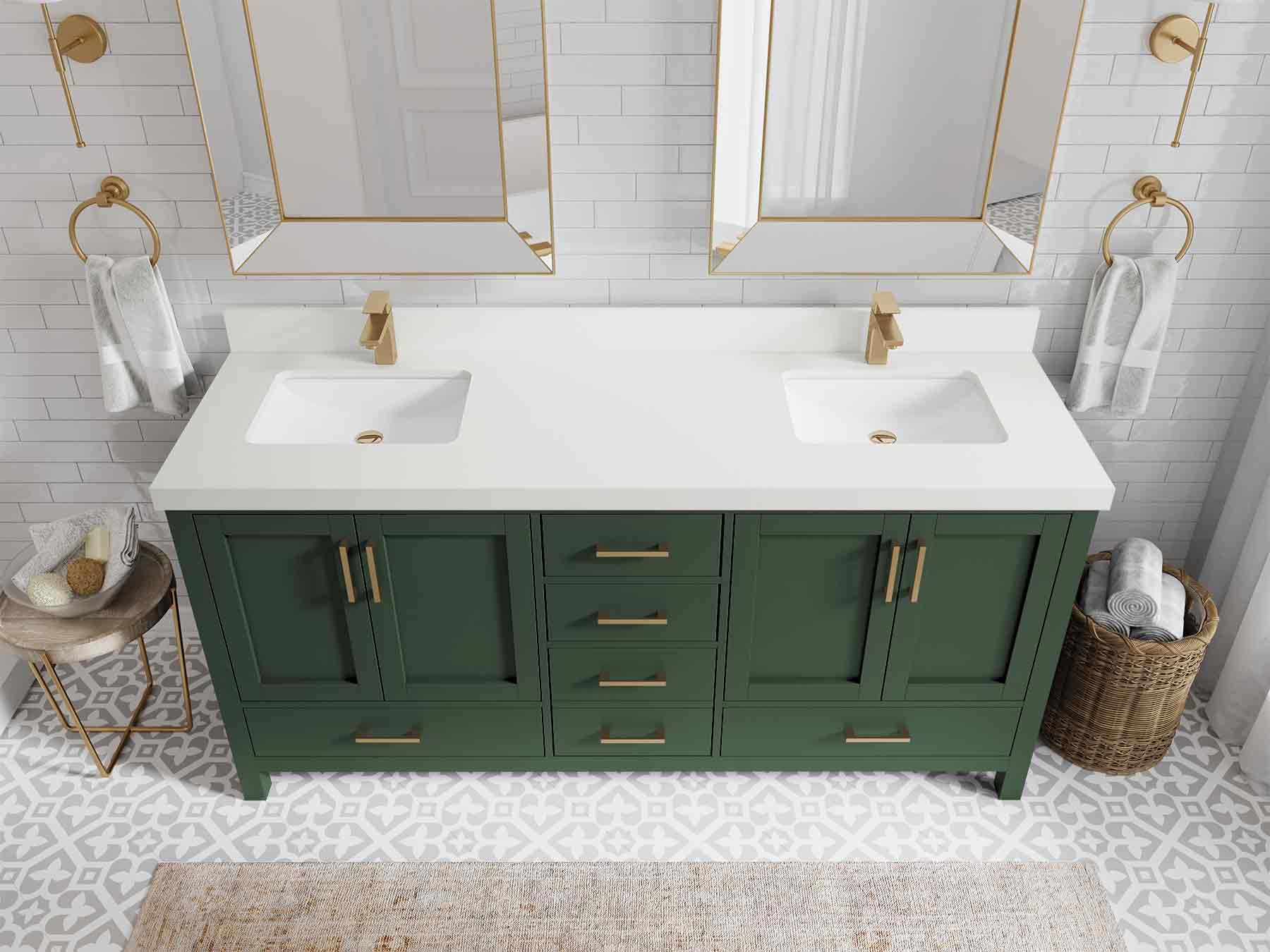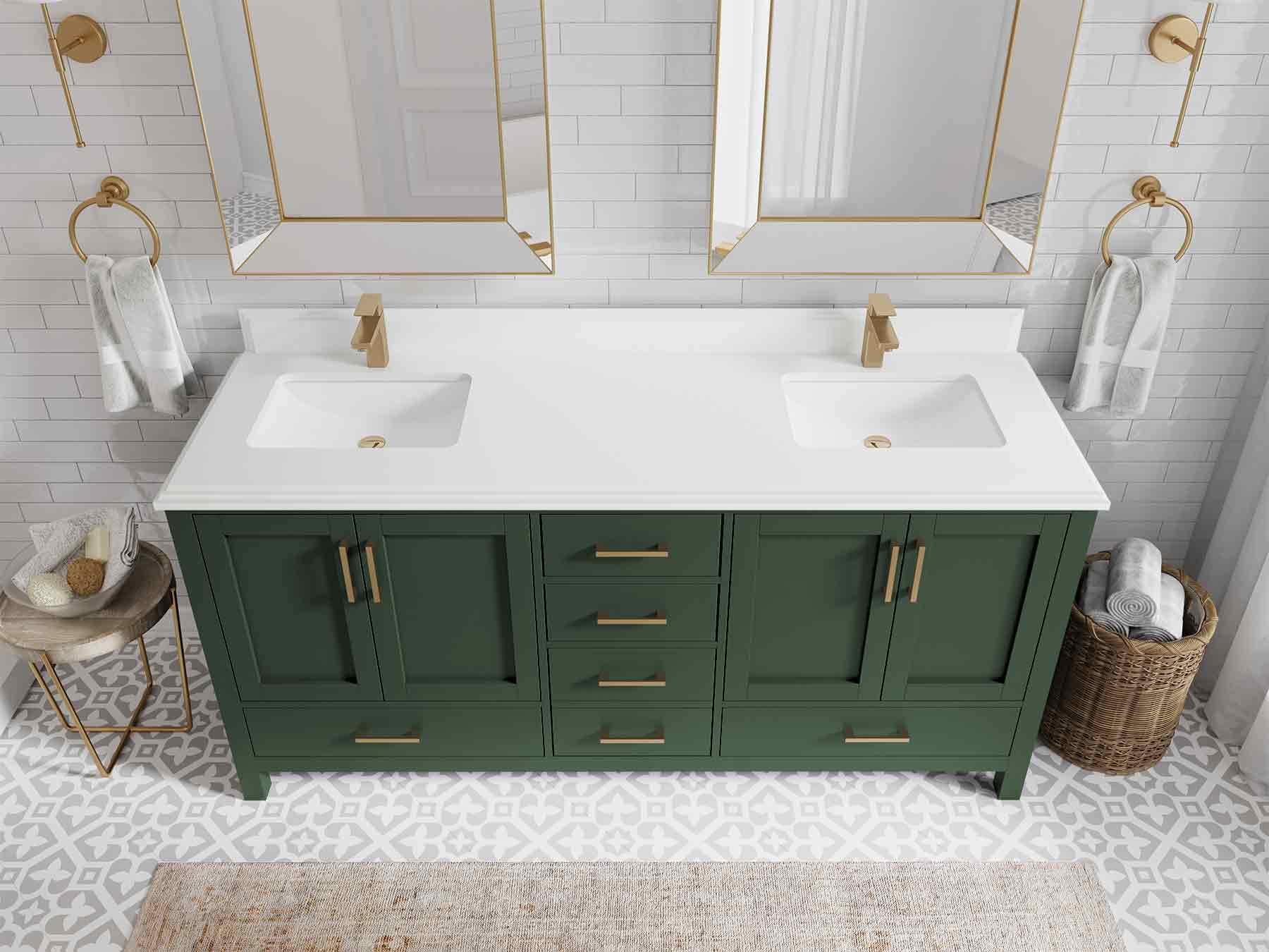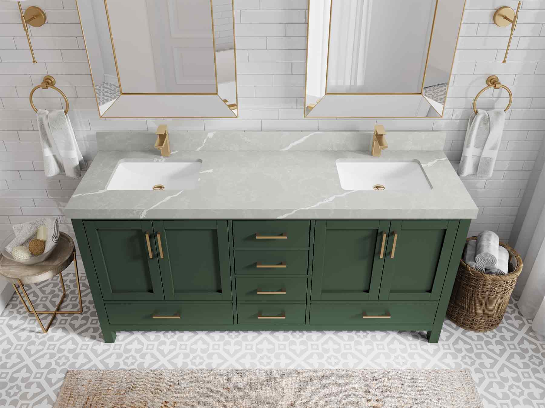 Malibu 72 in. W x 22 in. D Double Sink Bathroom Vanity | Lafayette Green