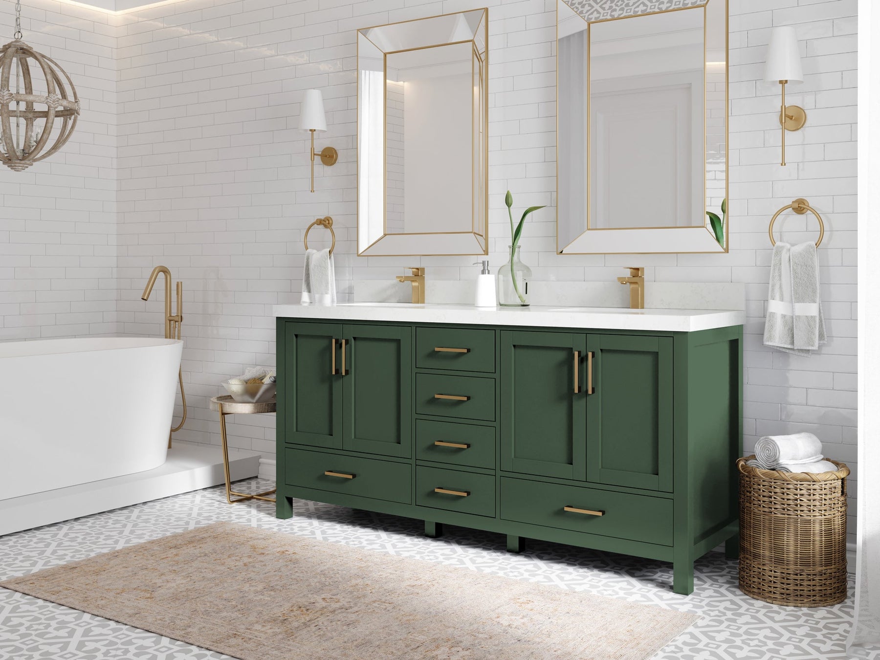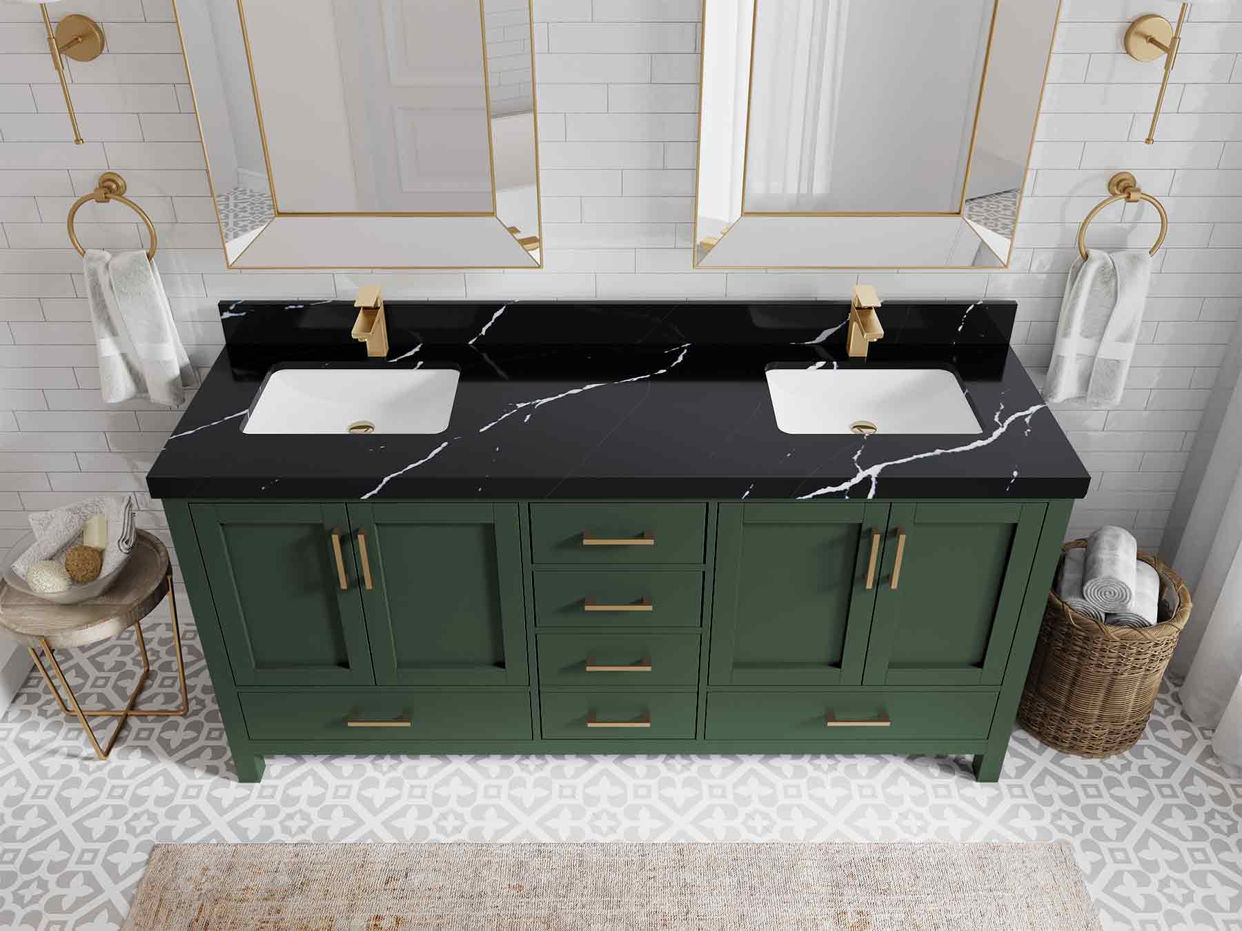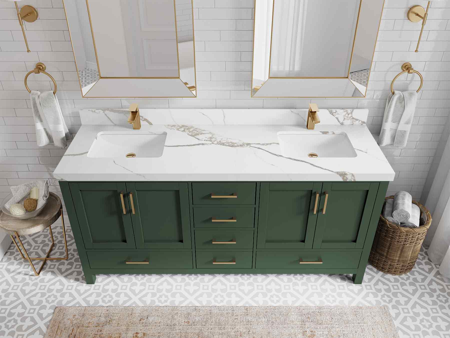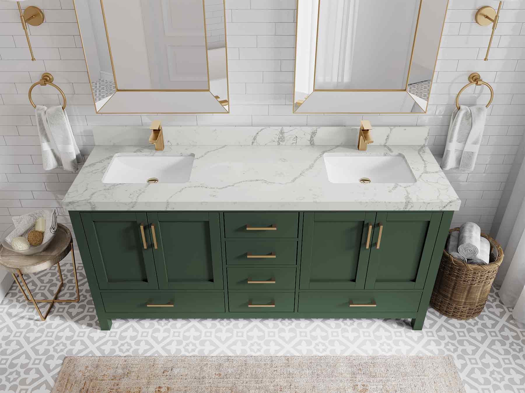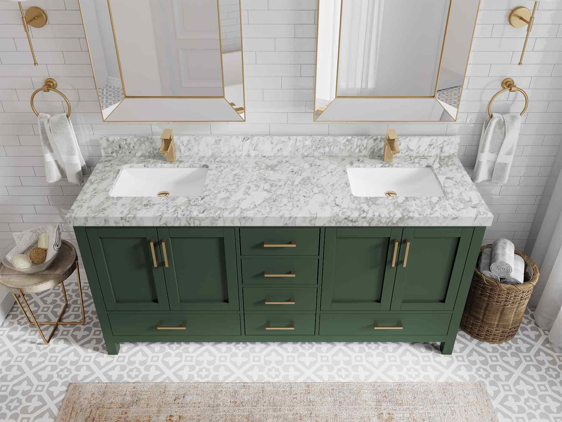 Malibu 72 in. W x 22 in. D Double Sink Bathroom Vanity | Lafayette Green