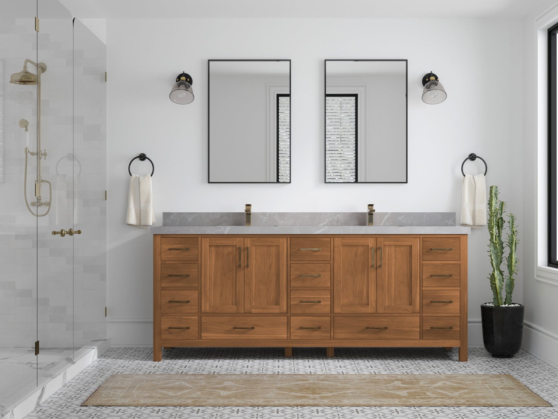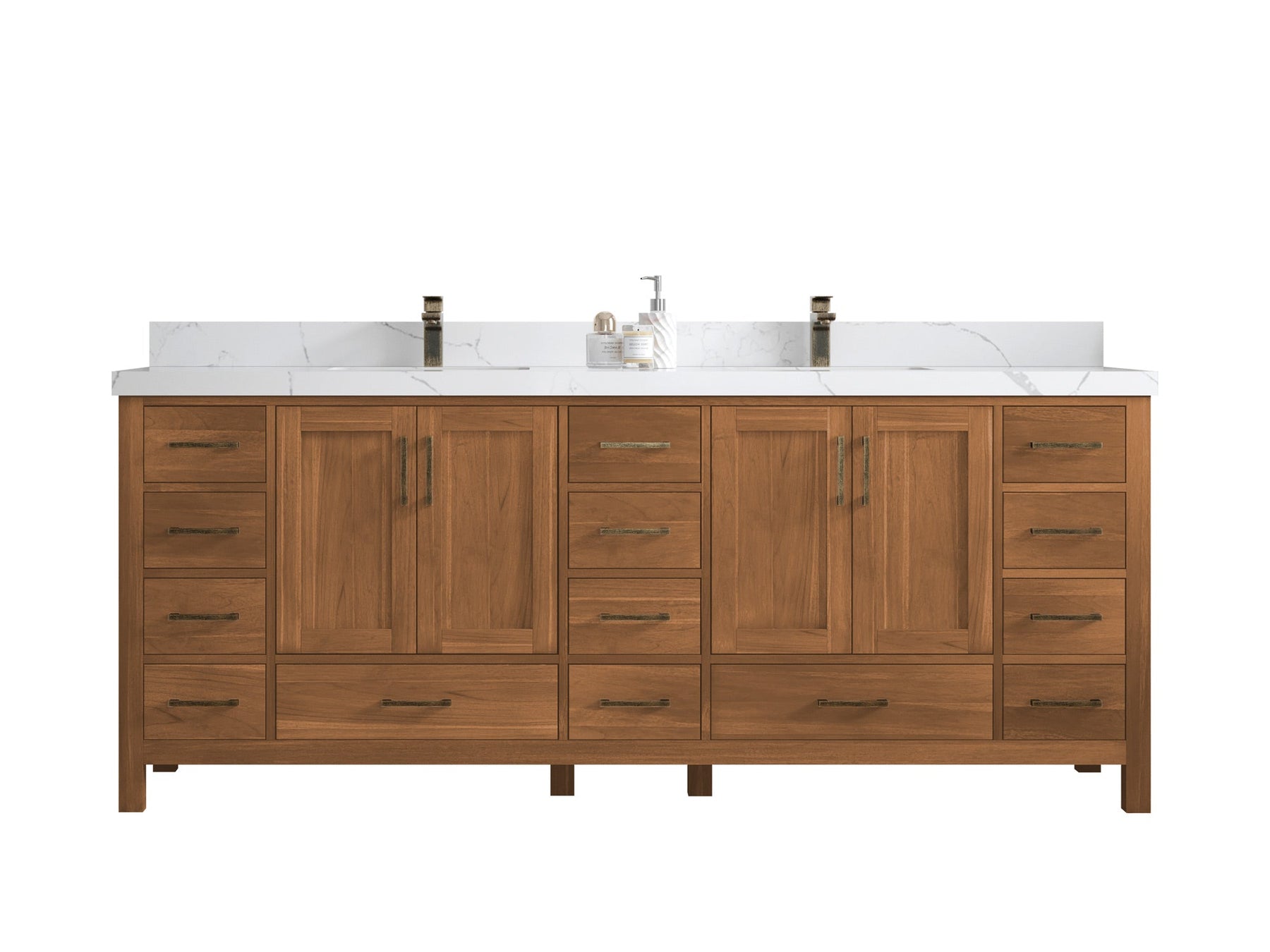 Malibu Teak Wood 84 in. W x 22 in. D Double Sink Bathroom Vanity - Willow Bath and Vanity