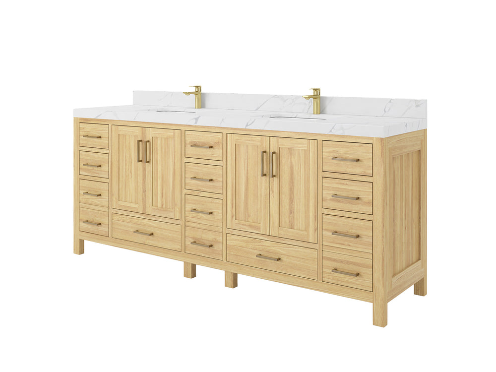 Malibu Teak Wood 84 in. W x 22 in. D Double Sink Bathroom Vanity | Light Natural Teak