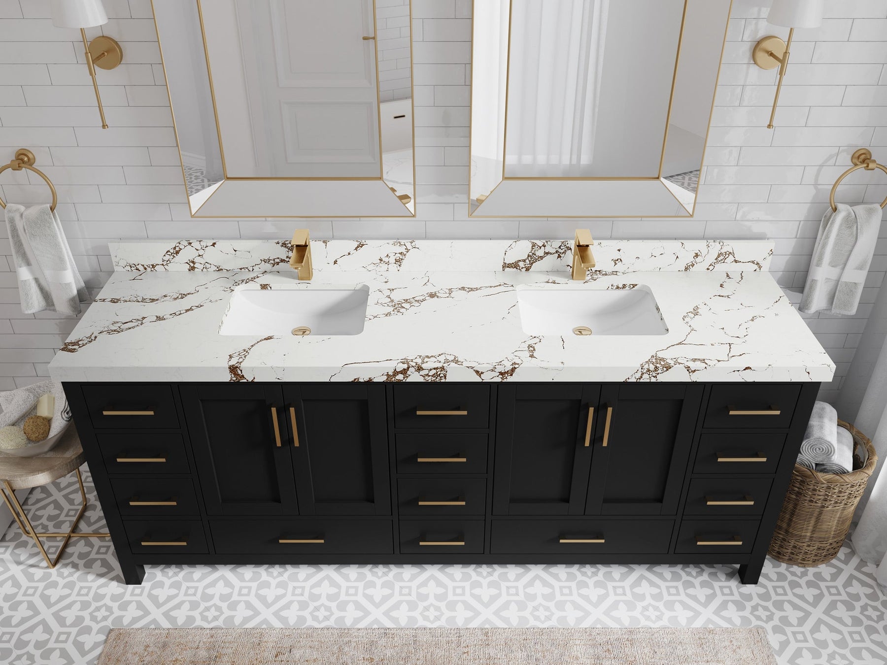 Vanity Countertops options: For Calacatta Laza Quartz, Empira White Quartz, Pure White Quartz, Palissandro Quartz we have 2 options Straight-Mitered Edge and Double Cove Edge; For Calacatta Nuvo Quartz, Carrara Marble, Carrara Quartz, Piatra Gray Quartz, Pearl Light Gray Quartz, Calacatta Black Quartz, Calacatta Gold Quartz, Calacatta Sienna Quartz, Calacatta Poanazzo Quartz, Venatino Quartz, Viola Brown Quartz, Viola Gold Quartz, Viola Night Quartz, Viola Biagio Quartz, Berkshire Brass Quartz, Frosty Carrara Quartz, Onyx Quartz we have Straight - Mitered Edge option.