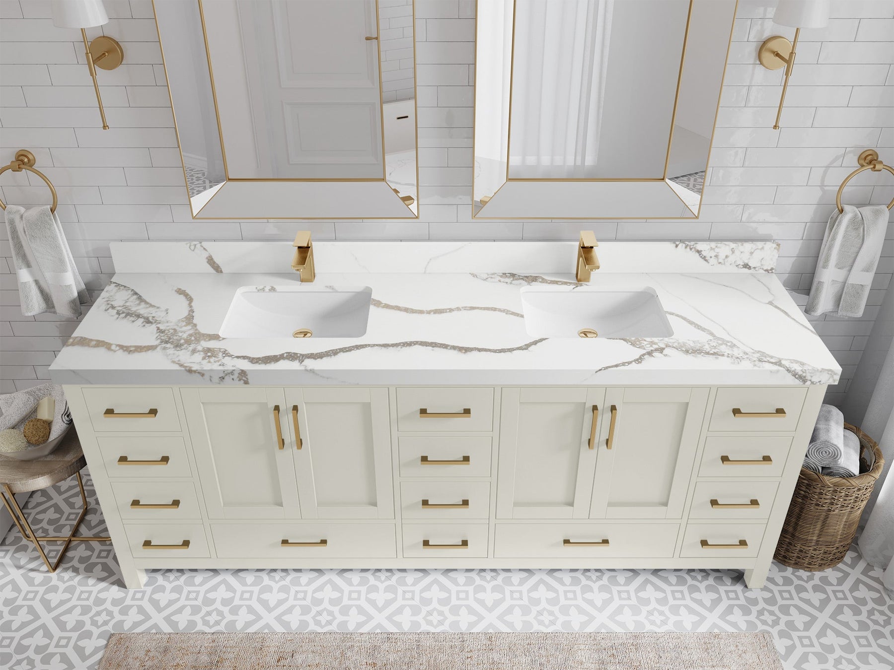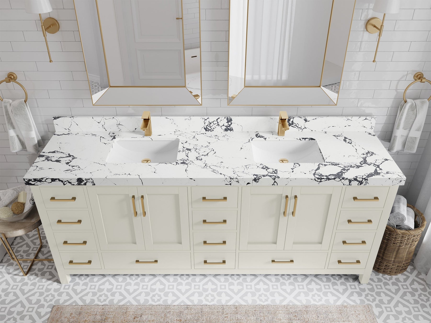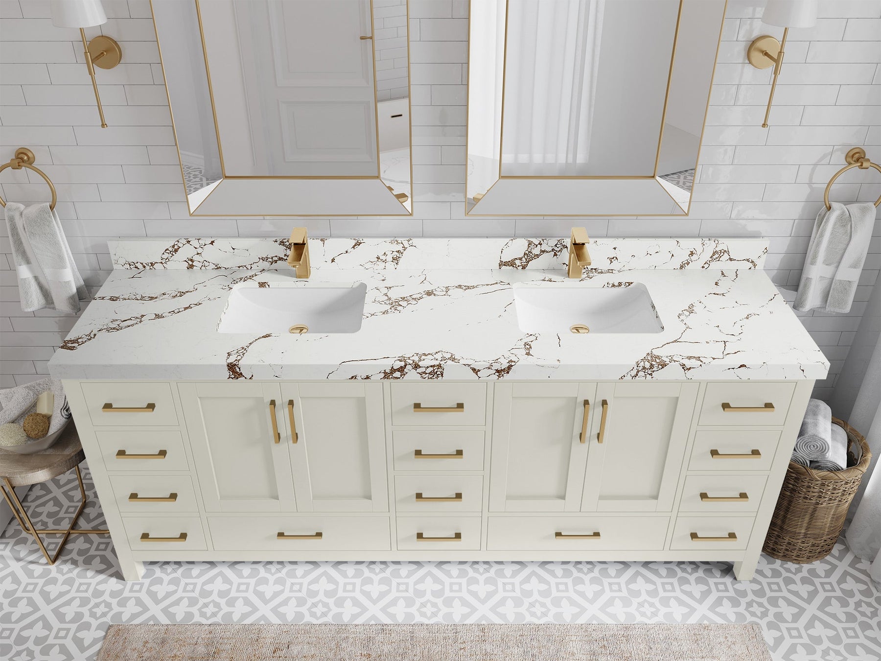 Vanity Countertops options: For Calacatta Laza Quartz, Empira White Quartz, Pure White Quartz, Palissandro Quartz we have 2 options Straight-Mitered Edge and Double Cove Edge; For Calacatta Nuvo Quartz, Carrara Marble, Carrara Quartz, Piatra Gray Quartz, Pearl Light Gray Quartz, Calacatta Black Quartz, Calacatta Gold Quartz, Calacatta Sienna Quartz, Calacatta Poanazzo Quartz, Venatino Quartz, Viola Brown Quartz, Viola Gold Quartz, Viola Night Quartz, Viola Biagio Quartz, Berkshire Brass Quartz, Frosty Carrara Quartz, Onyx Quartz we have Straight - Mitered Edge option.