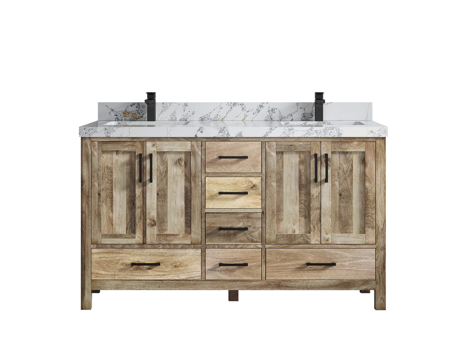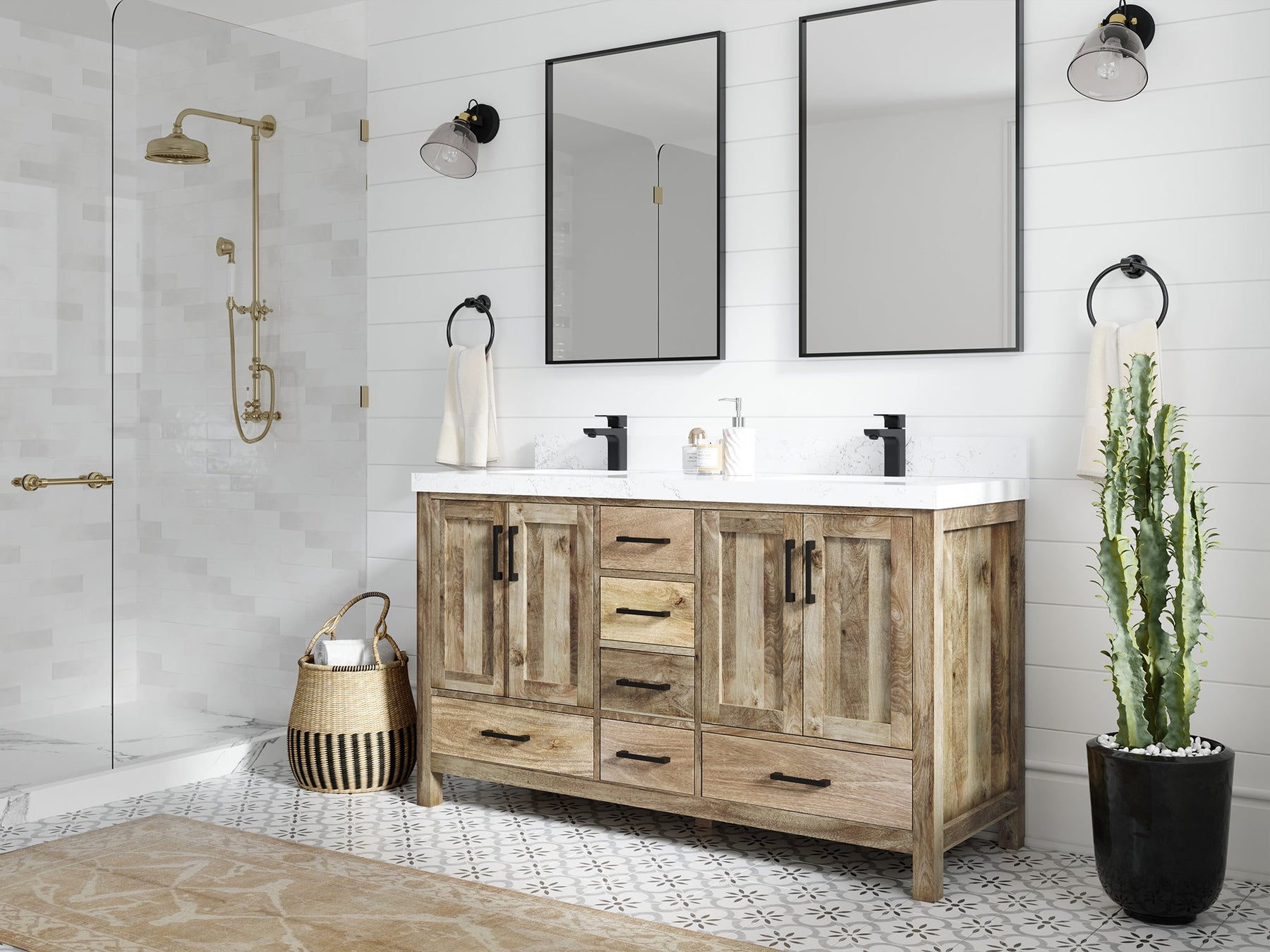 Malibu Mango Wood 60 in. W x 22 in. D Double Sink Bathroom Vanity - Willow Bath and Vanity