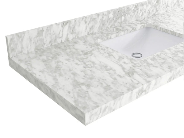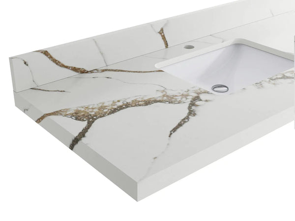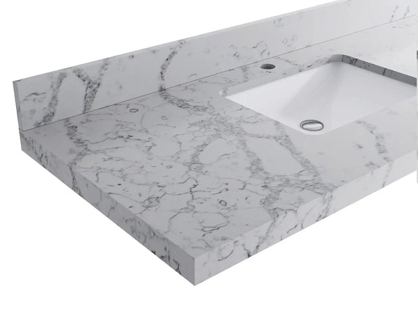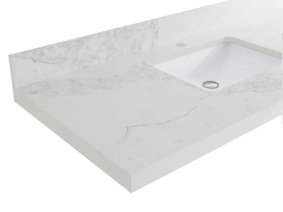 Faucet Hole(S): Comes with Single Faucet, 8 (in.) Widespread Faucet, Wall mount Faucets - Only Available for White Quartz and Carrara Quartz. (PLEASE ADD THIS CONFIGURATION UNDER COUNTERTOPS SECTION )