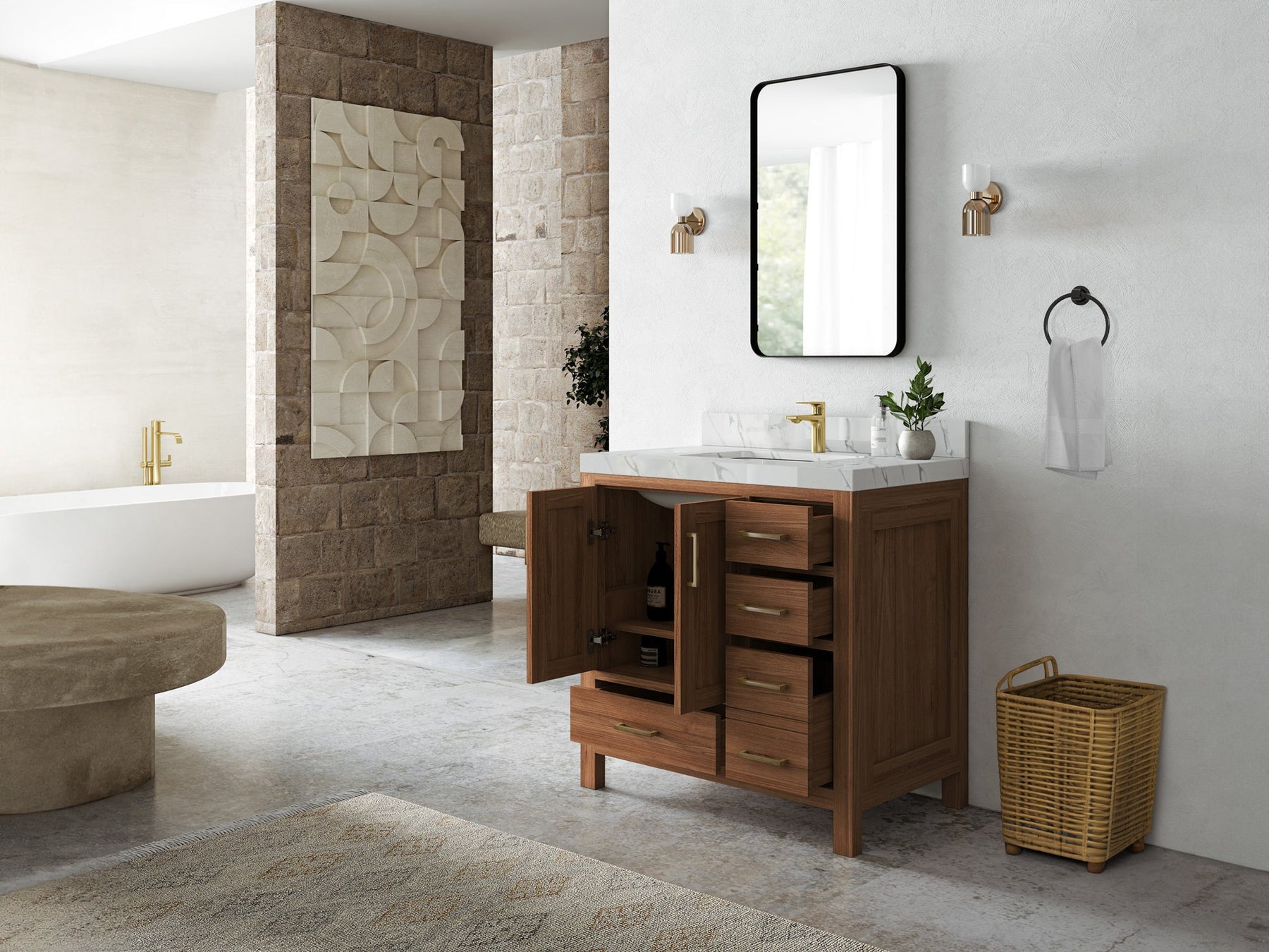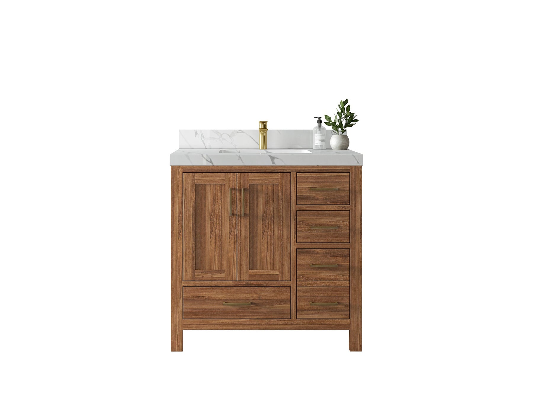 Malibu Teak Wood 36 in. W x 22 in. D Center Sink Bathroom Vanity - Willow Bath and Vanity