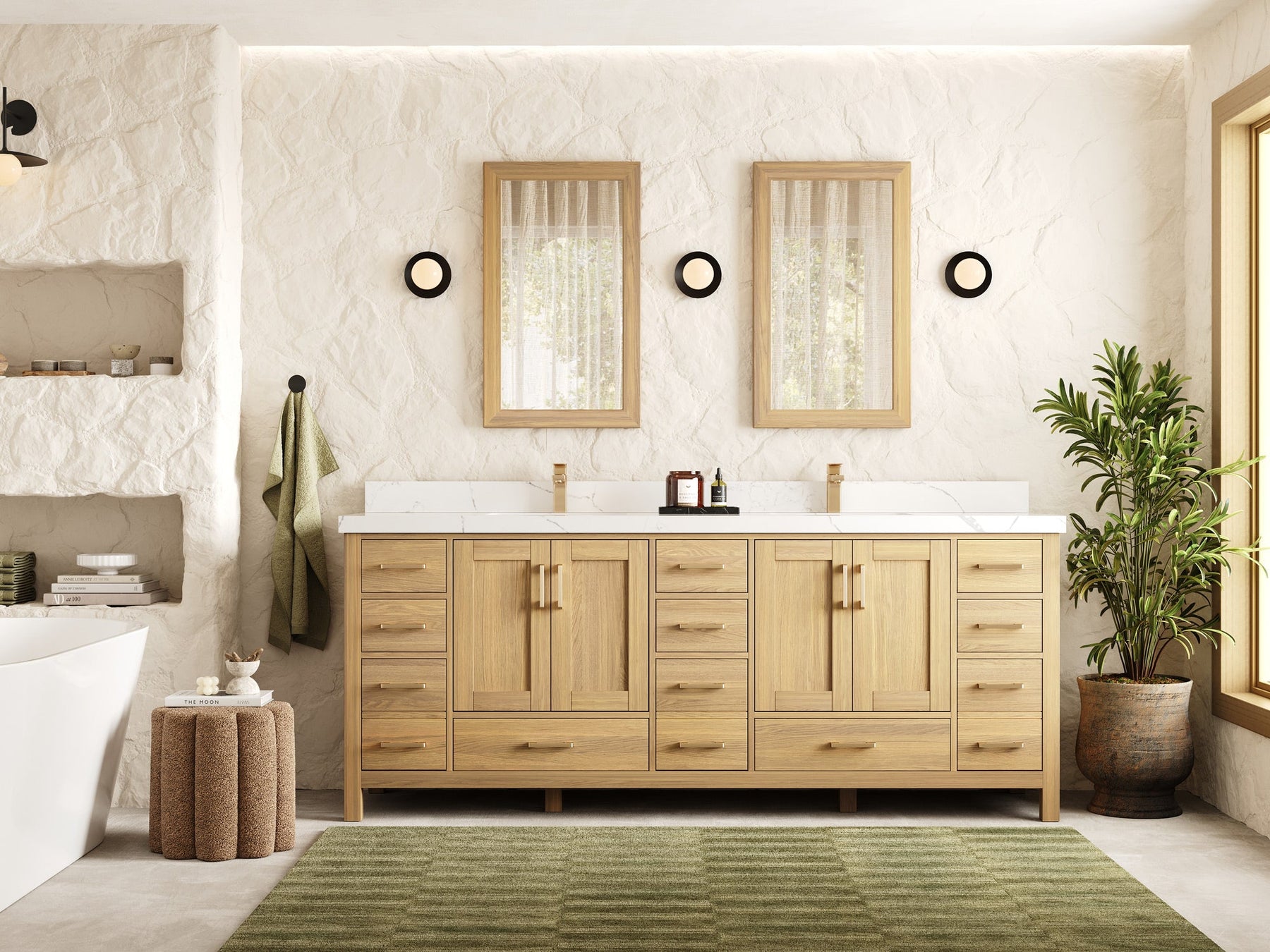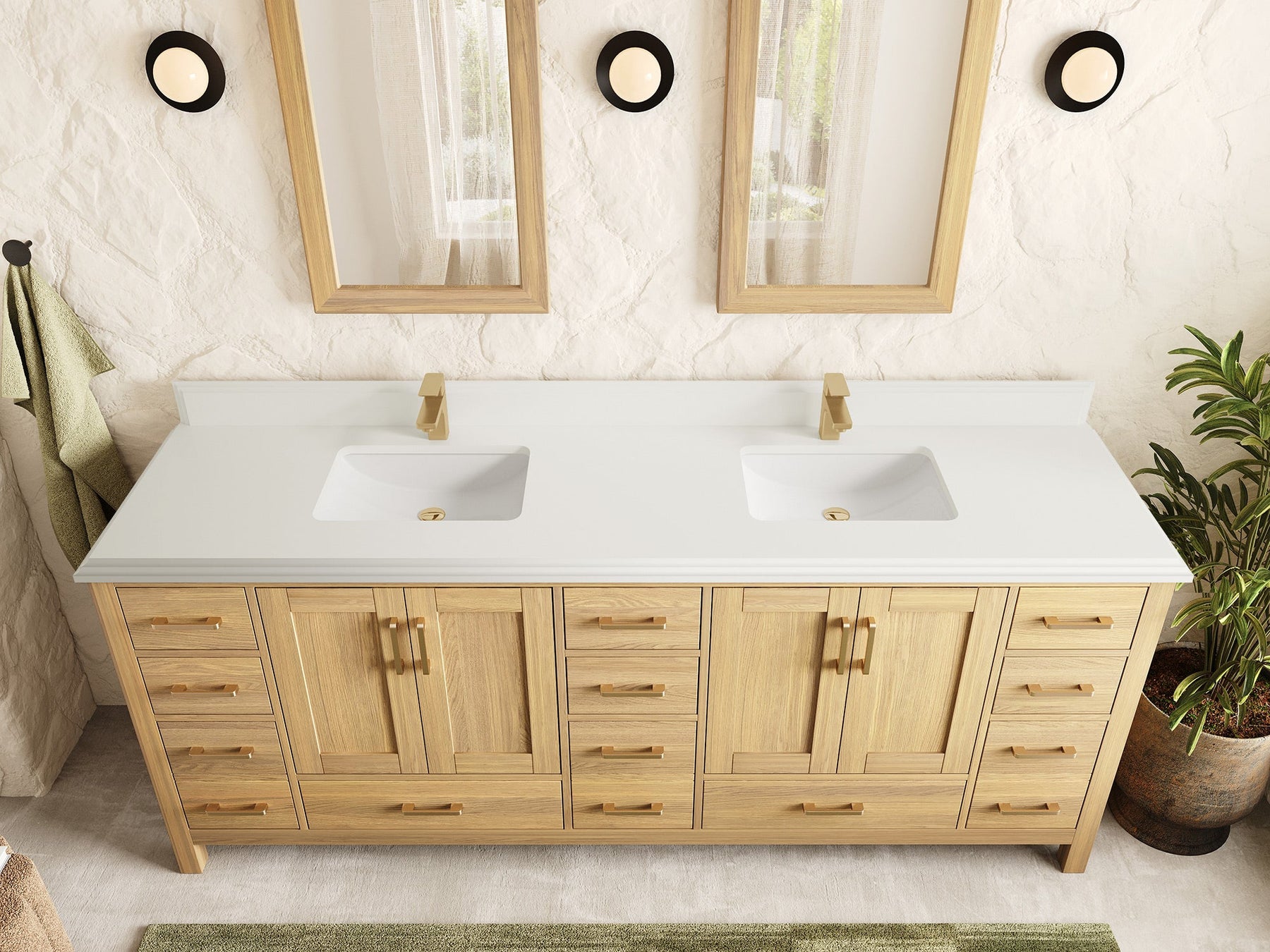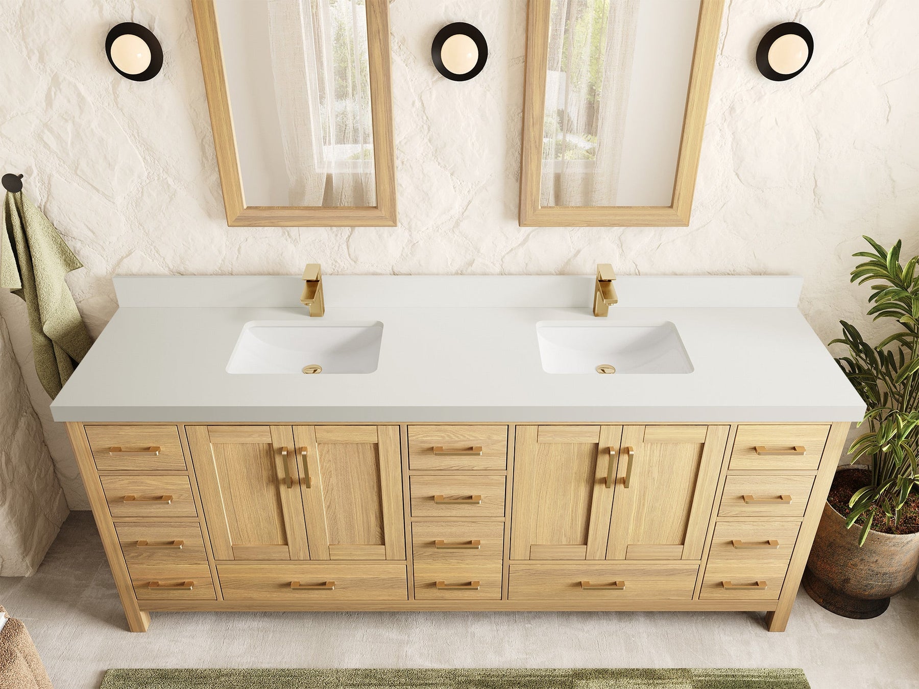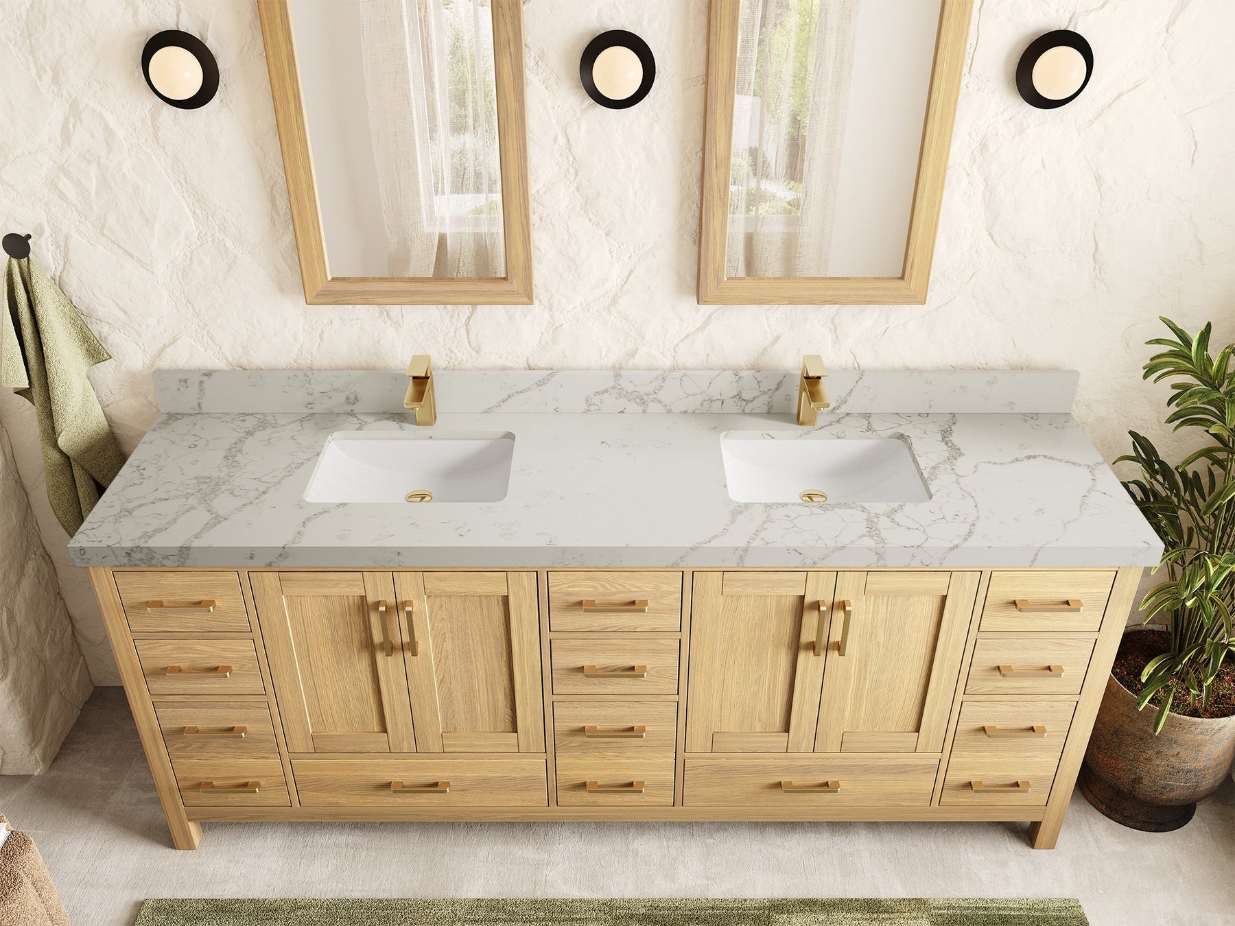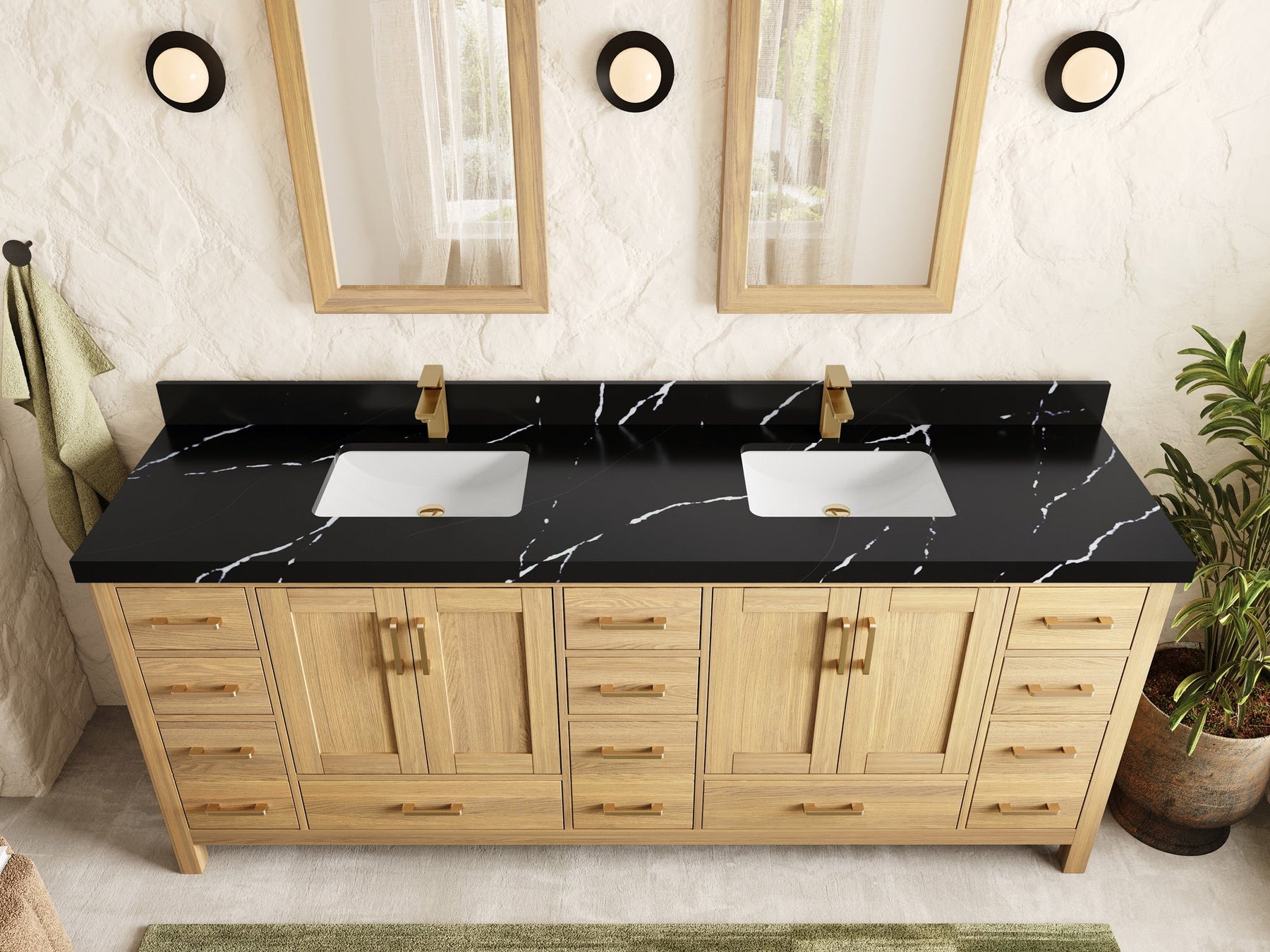 Vanity Countertops options: For Calacatta Laza Quartz, Empira White Quartz, Pure White Quartz we have 2 options Straight-Mitered Edge and Double Cove Edge; For Calacatta Nuvo Quartz, Carrara Marble, Carrara Quartz, Piatra Gray Quartz, Calacatta Black, Calacatta Gold, Venatino Quartz, Pearl Light Gray, Viola Brown, Viola Gold, Viola Night, Viola Biagio, Calacatta Sienna, Calacatta Poanazzo we only have Straight - Mitered Edge option.