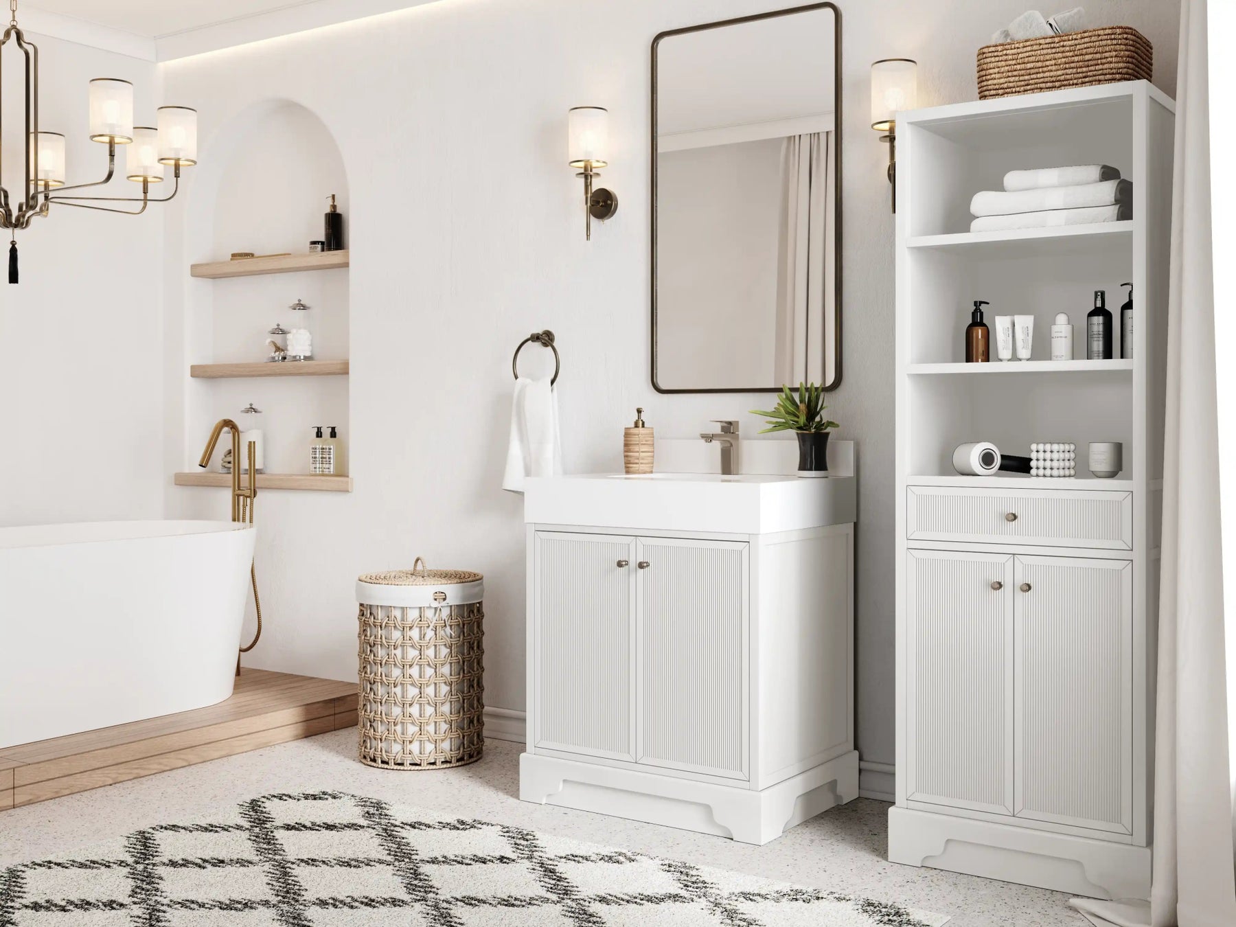 Vanity Countertops options: Straight edge (Calacatta Laza Quartz, Calacatta Nuvo Quartz, Arabescato Marble, Carrara Quartz, Empira White Quartz, Palissandro Quartz, White Quartz, Terrazzo Arctic Breeze, Terrazzo Golden Dusk)