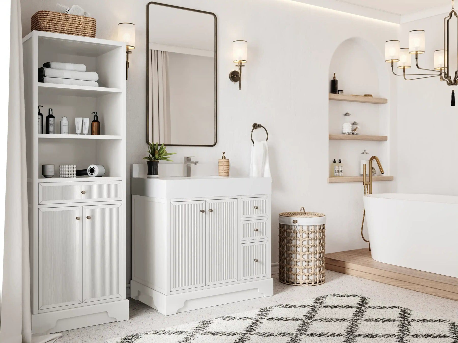 Vanity Countertops options: Straight edge (Calacatta Laza Quartz, Calacatta Nuvo Quartz, Arabescato Marble, Carrara Quartz, Empira White Quartz, Palissandro Quartz, White Quartz, Terrazzo Arctic Breeze, Terrazzo Golden Dusk)
