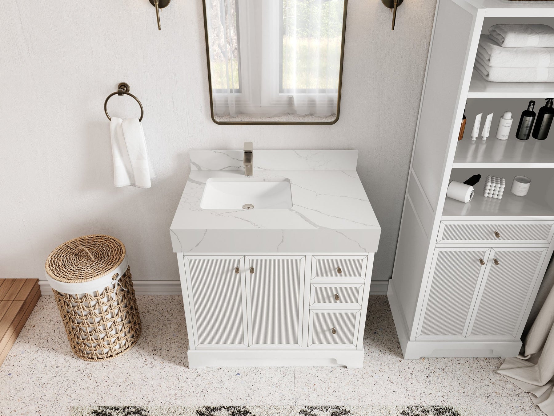 Vanity Countertops options: Straight edge (Pure White Quartz, Calacatta Laza Quartz, Empire White Quartz)