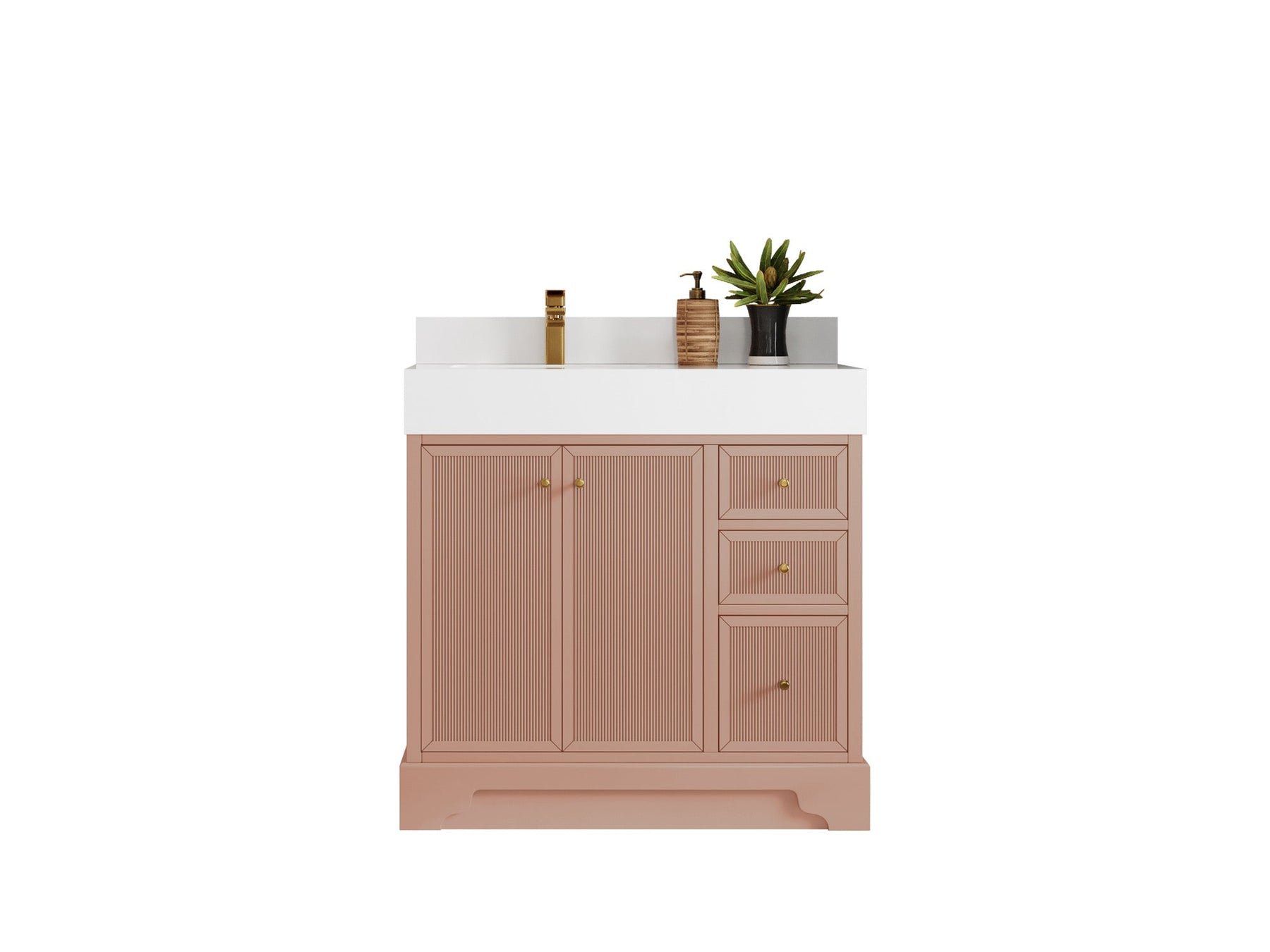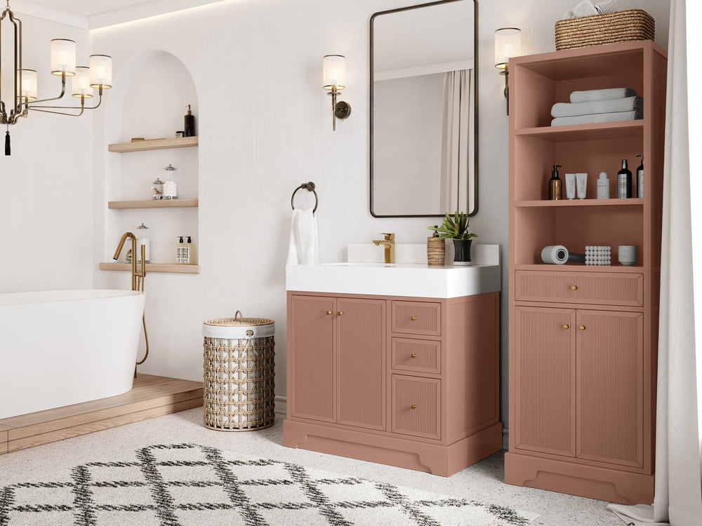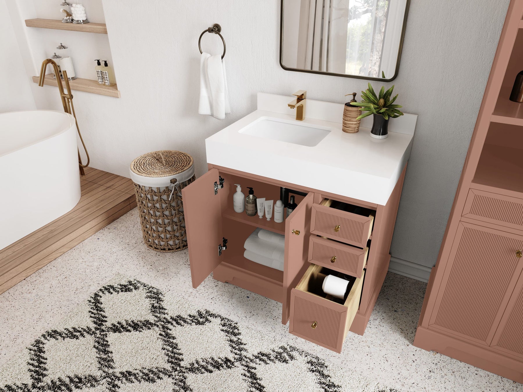 Manhattan 36 in. W x 22 in. D Left Offset Sink Bathroom Vanity | Warm Terracotta