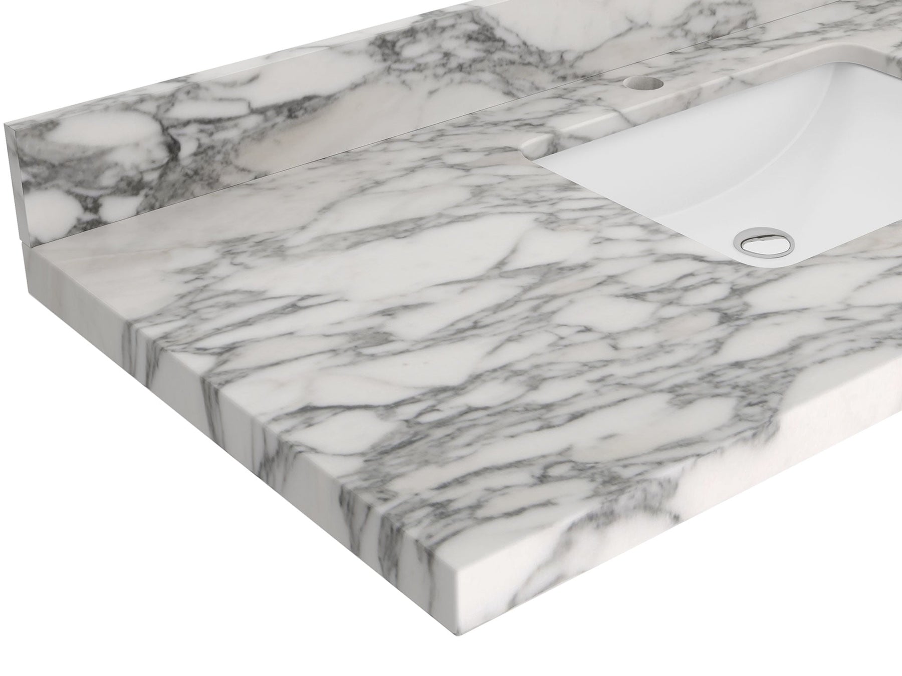 Vanity Countertops options: Straight edge (Calacatta Laza Quartz, Calacatta Nuvo Quartz, Arabescato Marble, Carrara Quartz, Empira White Quartz, Palissandro Quartz, White Quartz, Terrazzo Arctic Breeze, Terrazzo Golden Dusk)