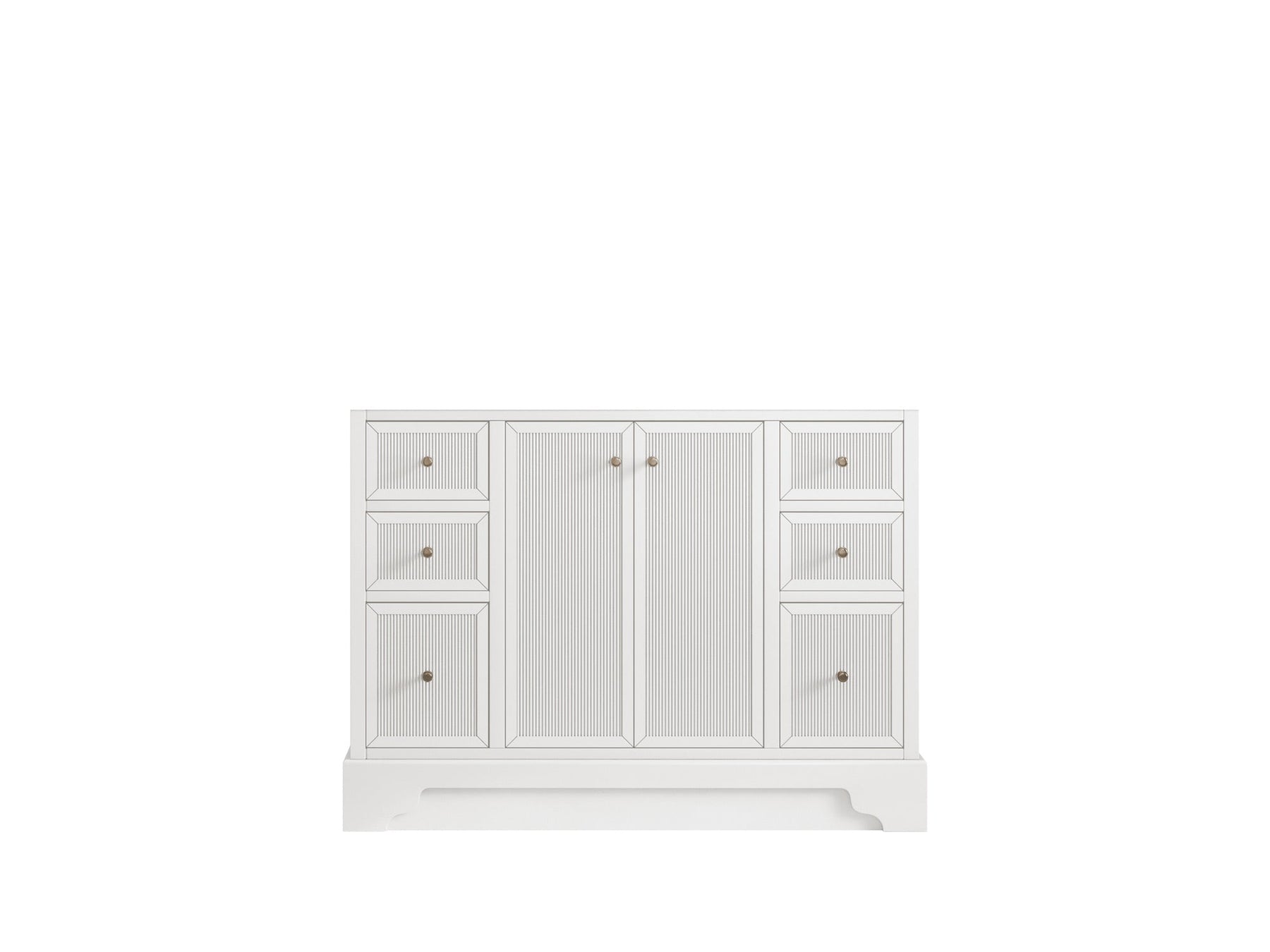 The Manhattan Cabinet Collection brings a refined and timeless look to any bathroom, featuring clean lines, minimalist design, and balanced proportions. Its smooth surfaces and classic form blend seamlessly into both modern and transitional styles. The cabinets are designed with symmetrical drawer and door configurations, providing a streamlined appearance, and are complemented by elegant mirrors and wall-mounted lighting fixtures that enhance the overall sophisticated aesthetic.