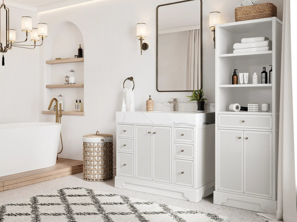 Vanity Countertops options: Straight edge (Pure White Quartz, Calacatta Laza Quartz, Empire White Quartz)
