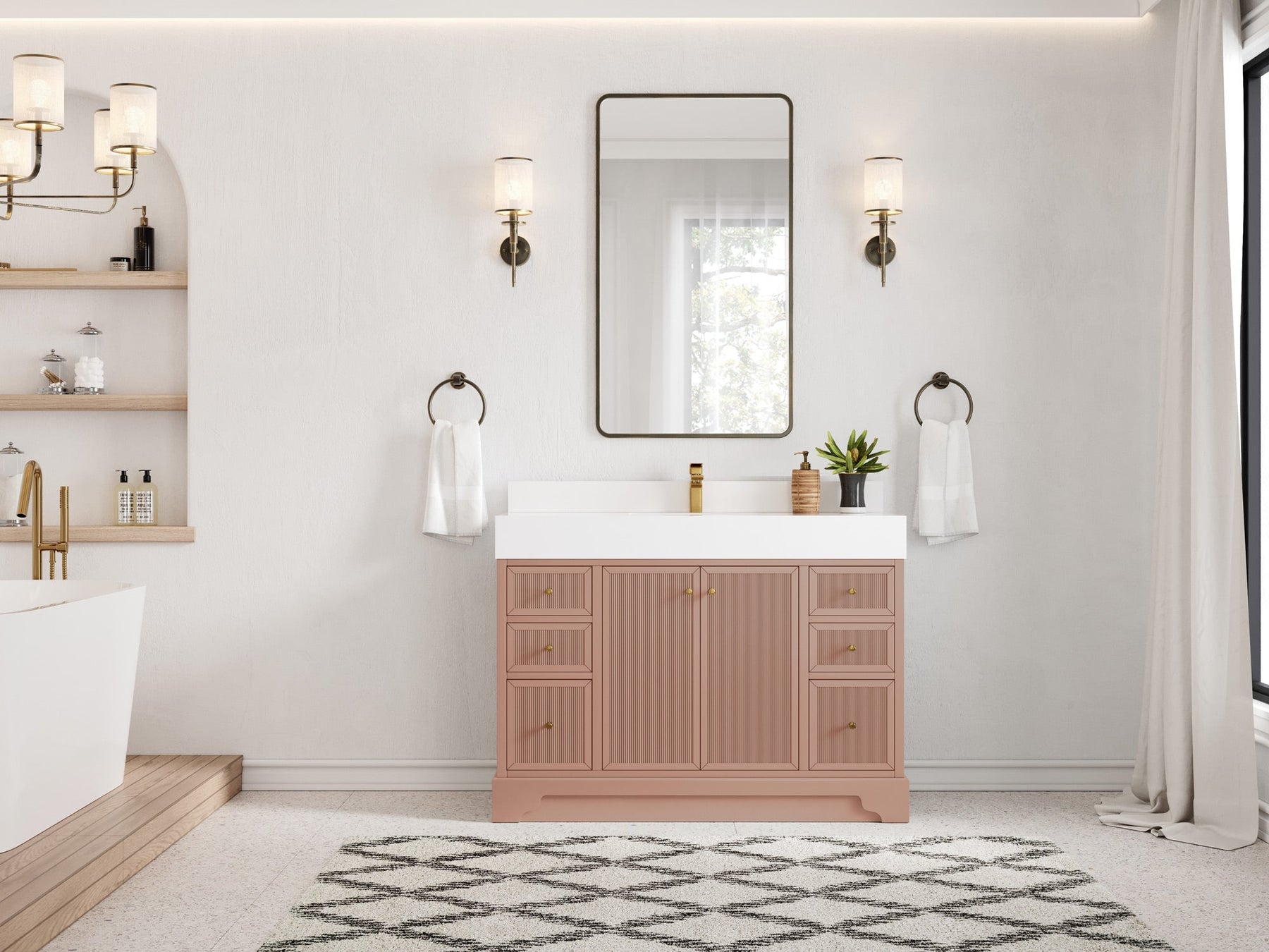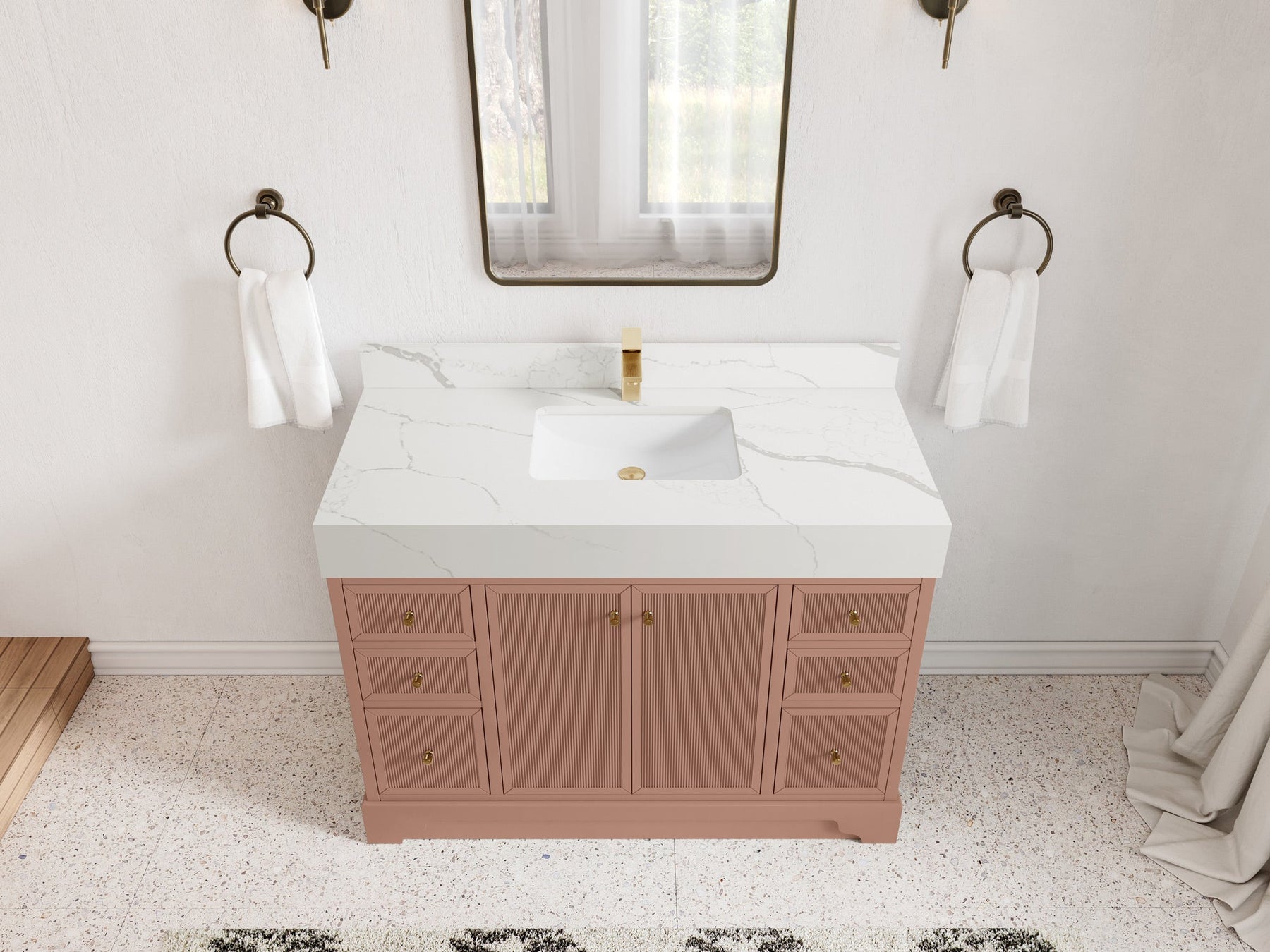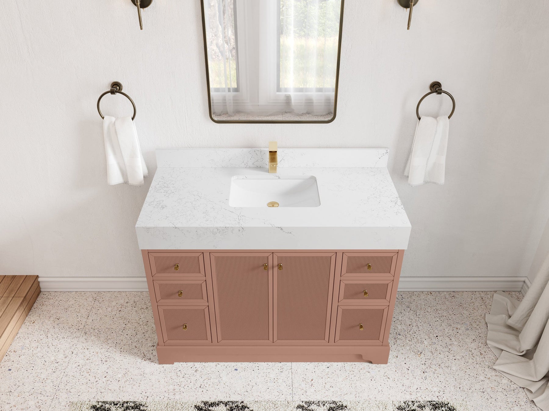 Vanity Countertops options: Straight edge (Calacatta Laza Quartz, Calacatta Nuvo Quartz, Arabescato Marble, Carrara Quartz, Empira White Quartz, Palissandro Quartz, White Quartz, Terrazzo Arctic Breeze, Terrazzo Golden Dusk)
