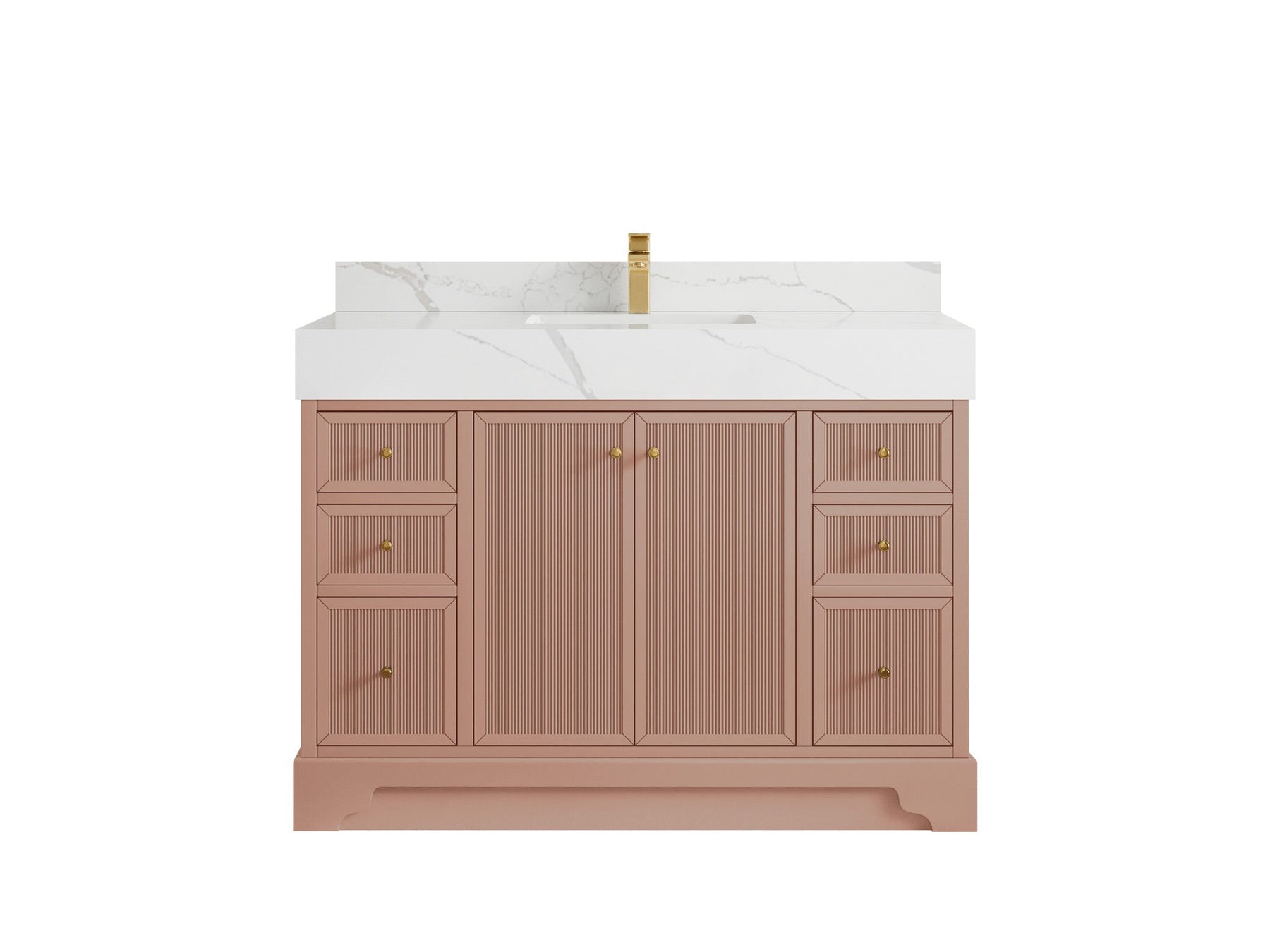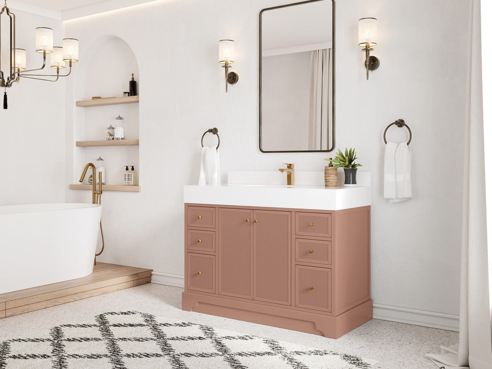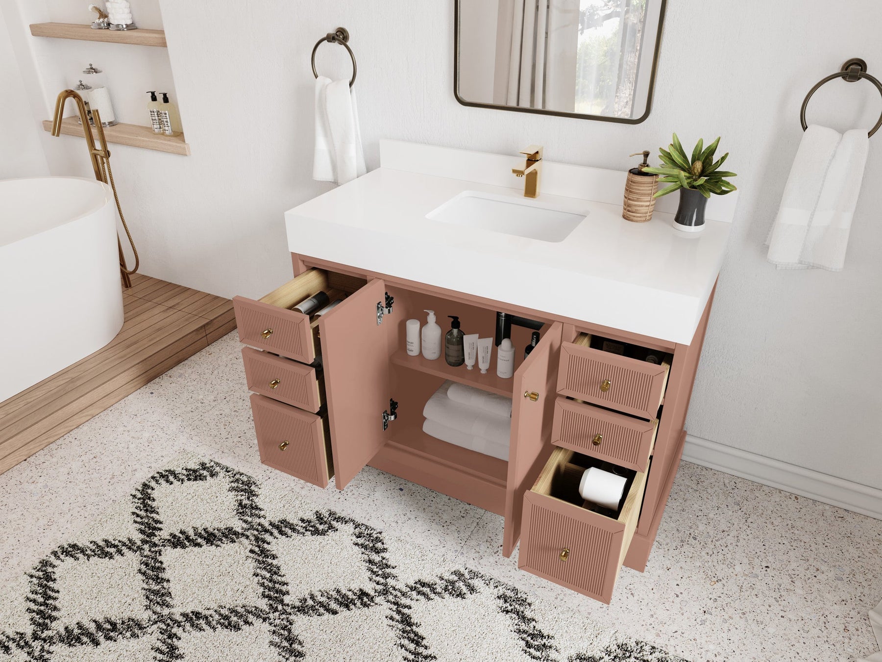 Vanity Countertops options: Straight edge (Calacatta Laza Quartz, Calacatta Nuvo Quartz, Arabescato Marble, Carrara Quartz, Empira White Quartz, Palissandro Quartz, White Quartz, Terrazzo Arctic Breeze, Terrazzo Golden Dusk)