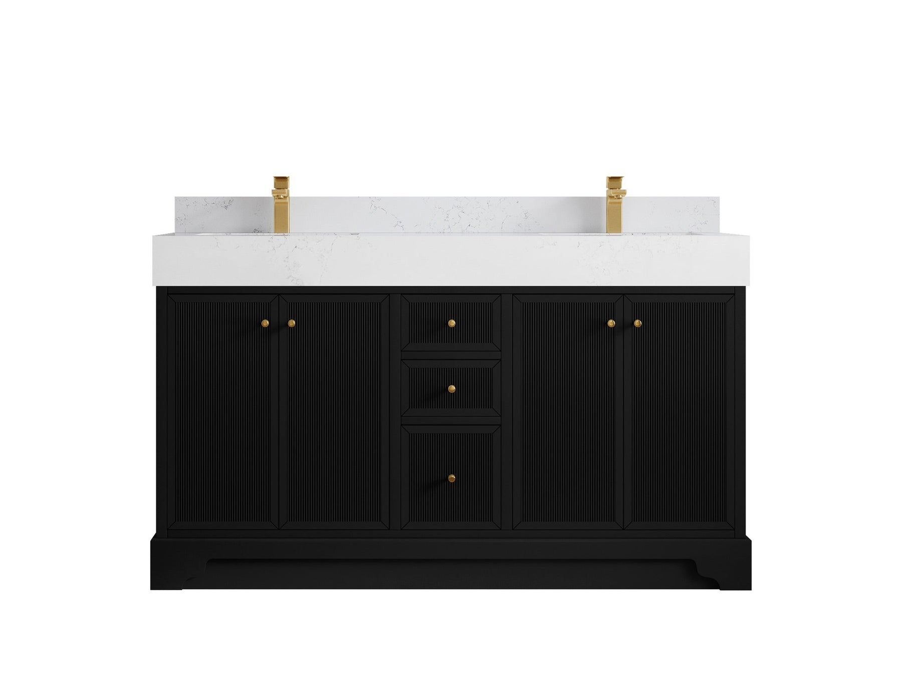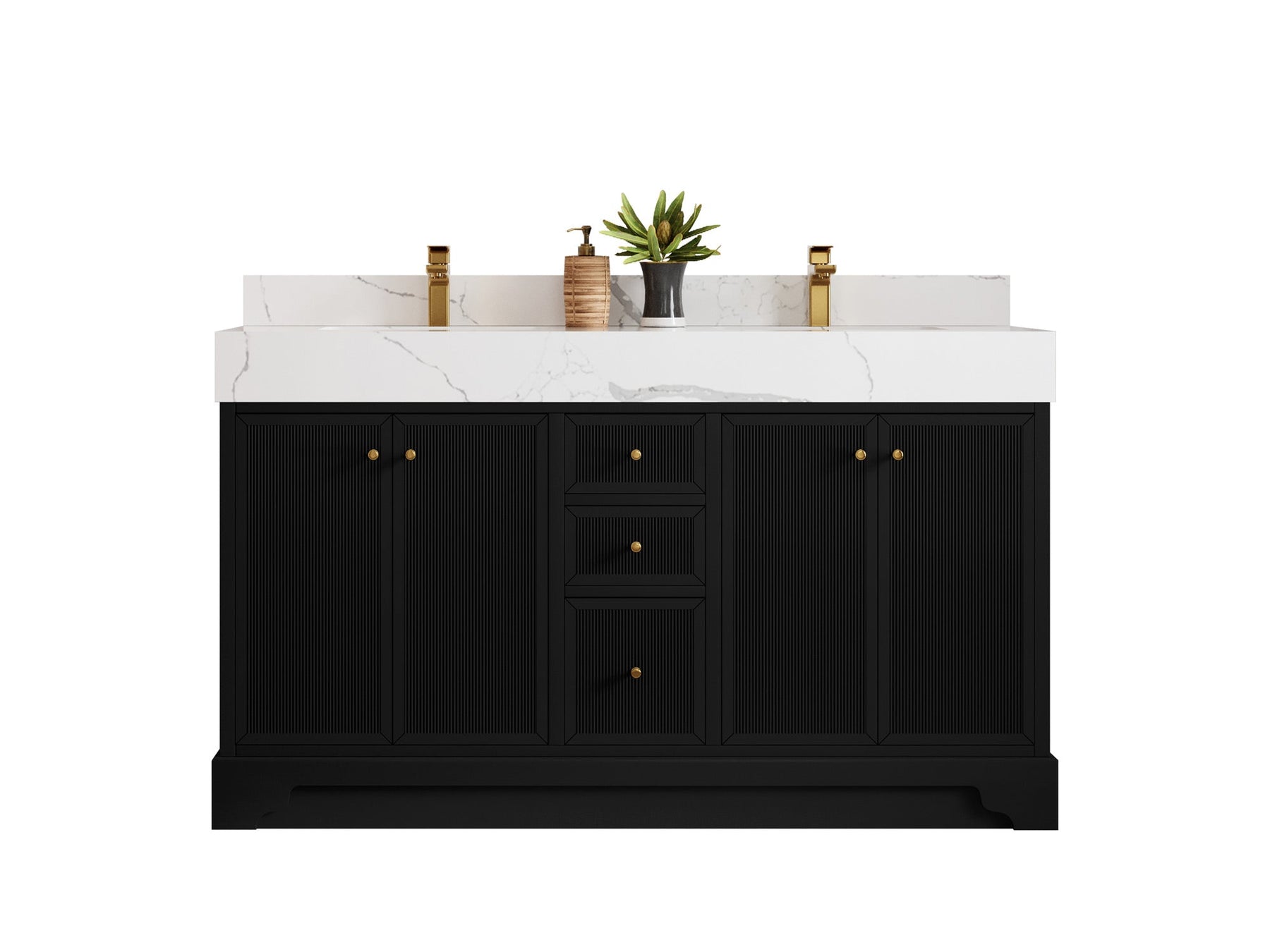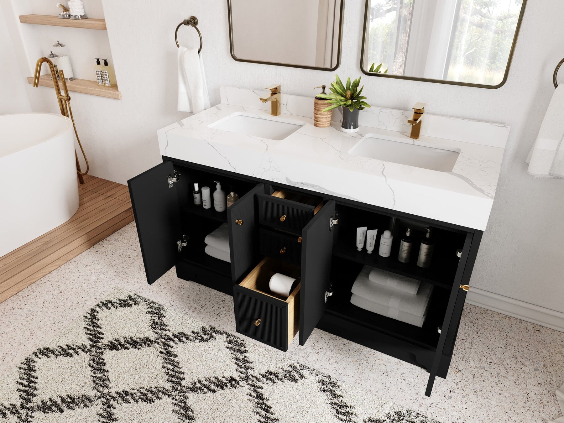Vanity Countertops options: Straight edge (Calacatta Laza Quartz, Calacatta Nuvo Quartz, Arabescato Marble, Carrara Quartz, Empira White Quartz, Palissandro Quartz, White Quartz, Terrazzo Arctic Breeze, Terrazzo Golden Dusk)