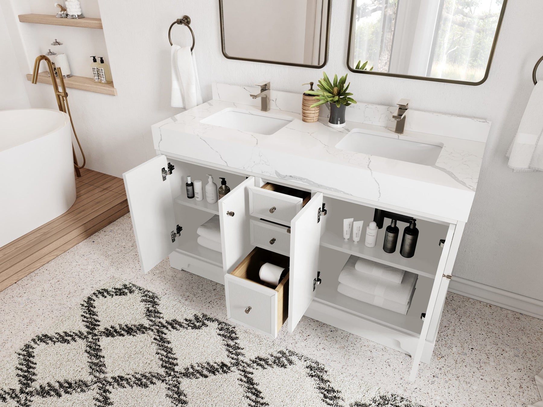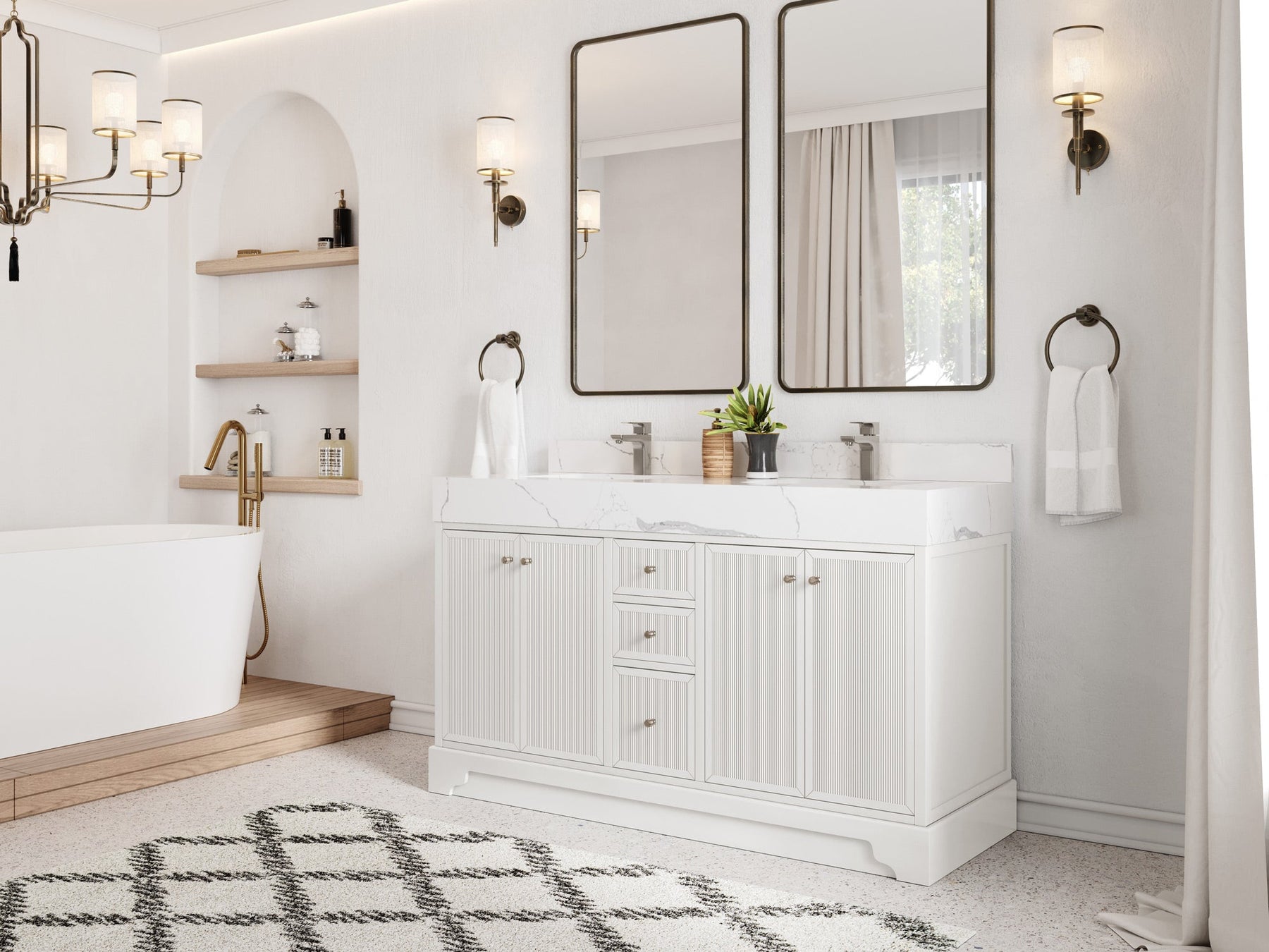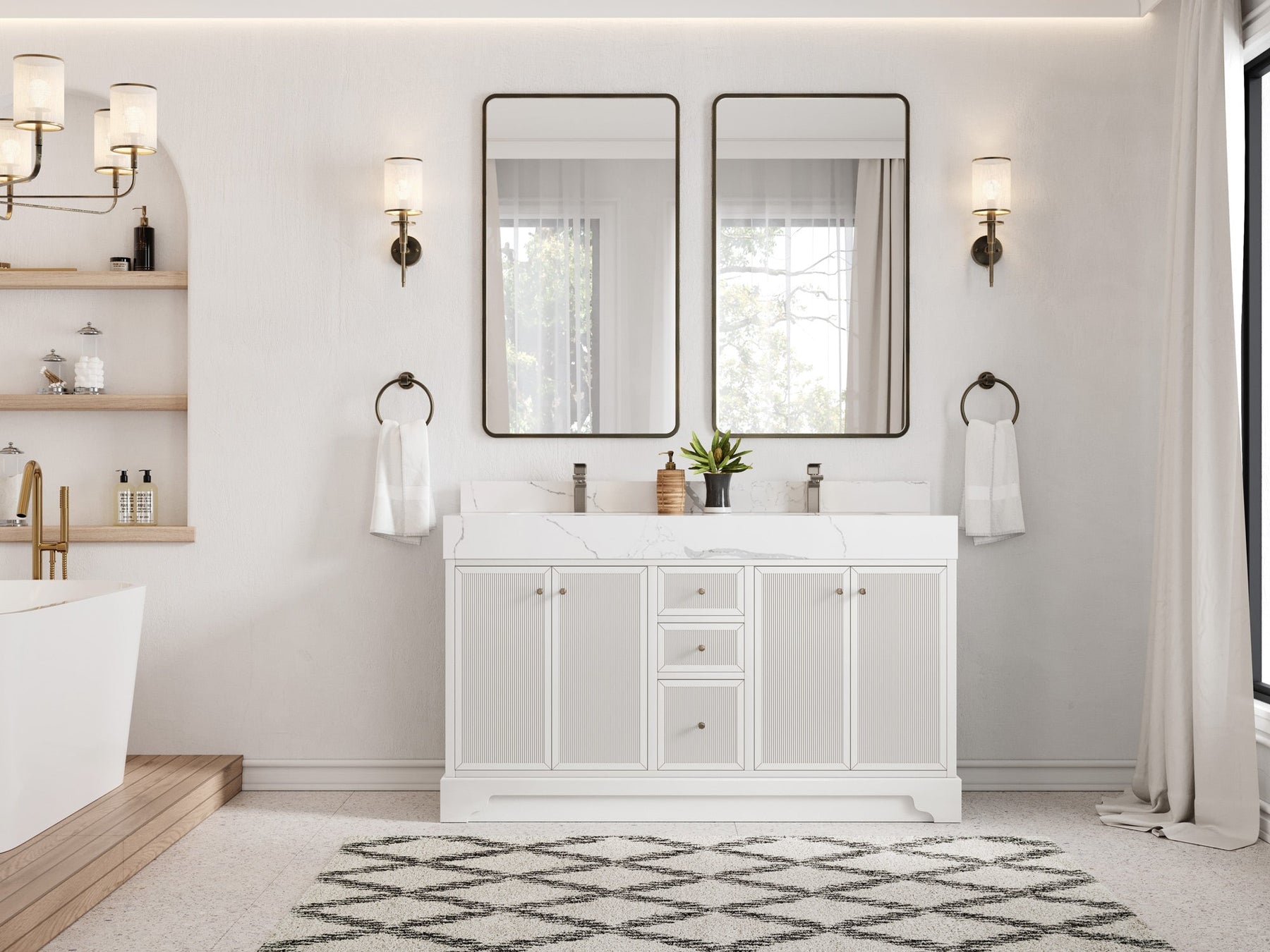 Vanity Countertops options: Straight edge (Pure White Quartz, Calacatta Laza Quartz, Empire White Quartz)