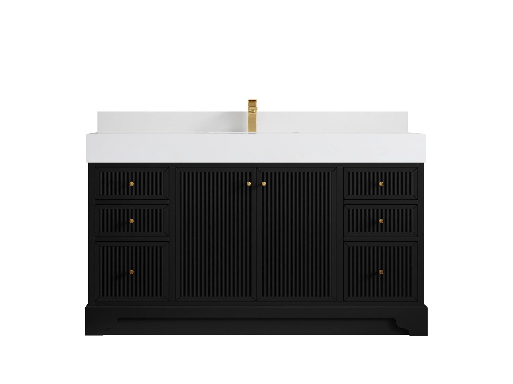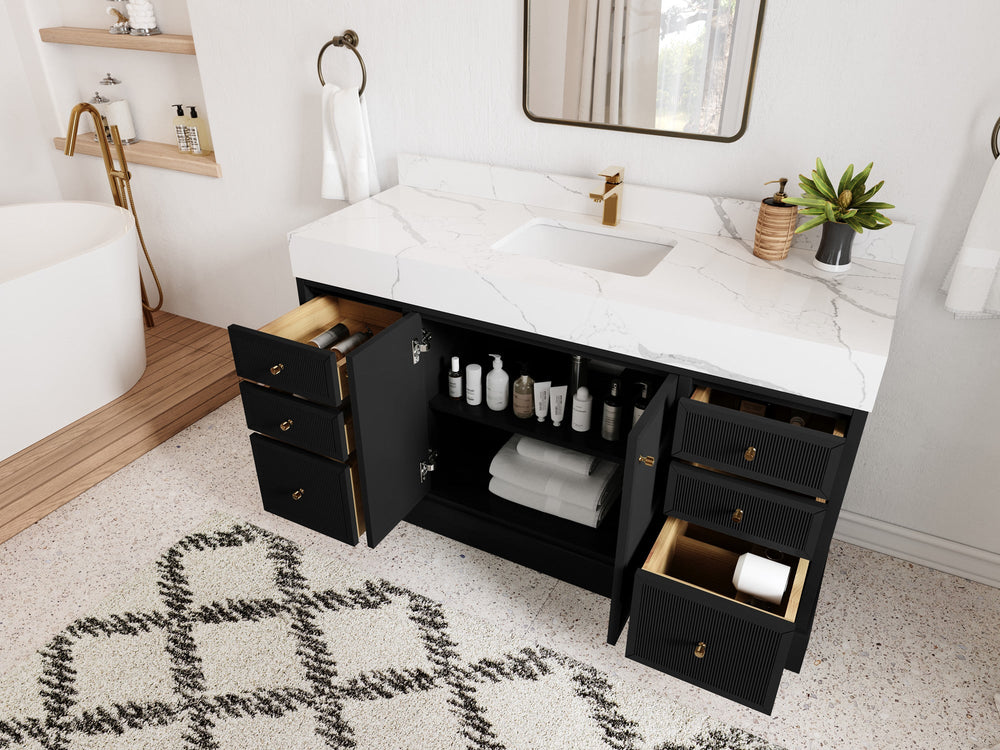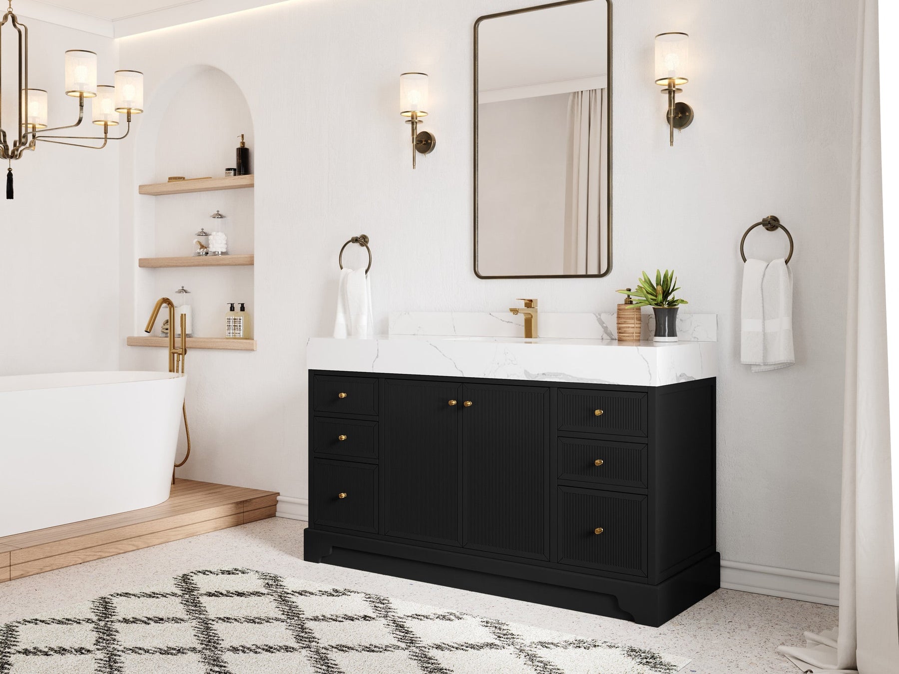 Vanity Countertops options: Straight edge (Calacatta Laza Quartz, Calacatta Nuvo Quartz, Arabescato Marble, Carrara Quartz, Empira White Quartz, Palissandro Quartz, White Quartz, Terrazzo Arctic Breeze, Terrazzo Golden Dusk)