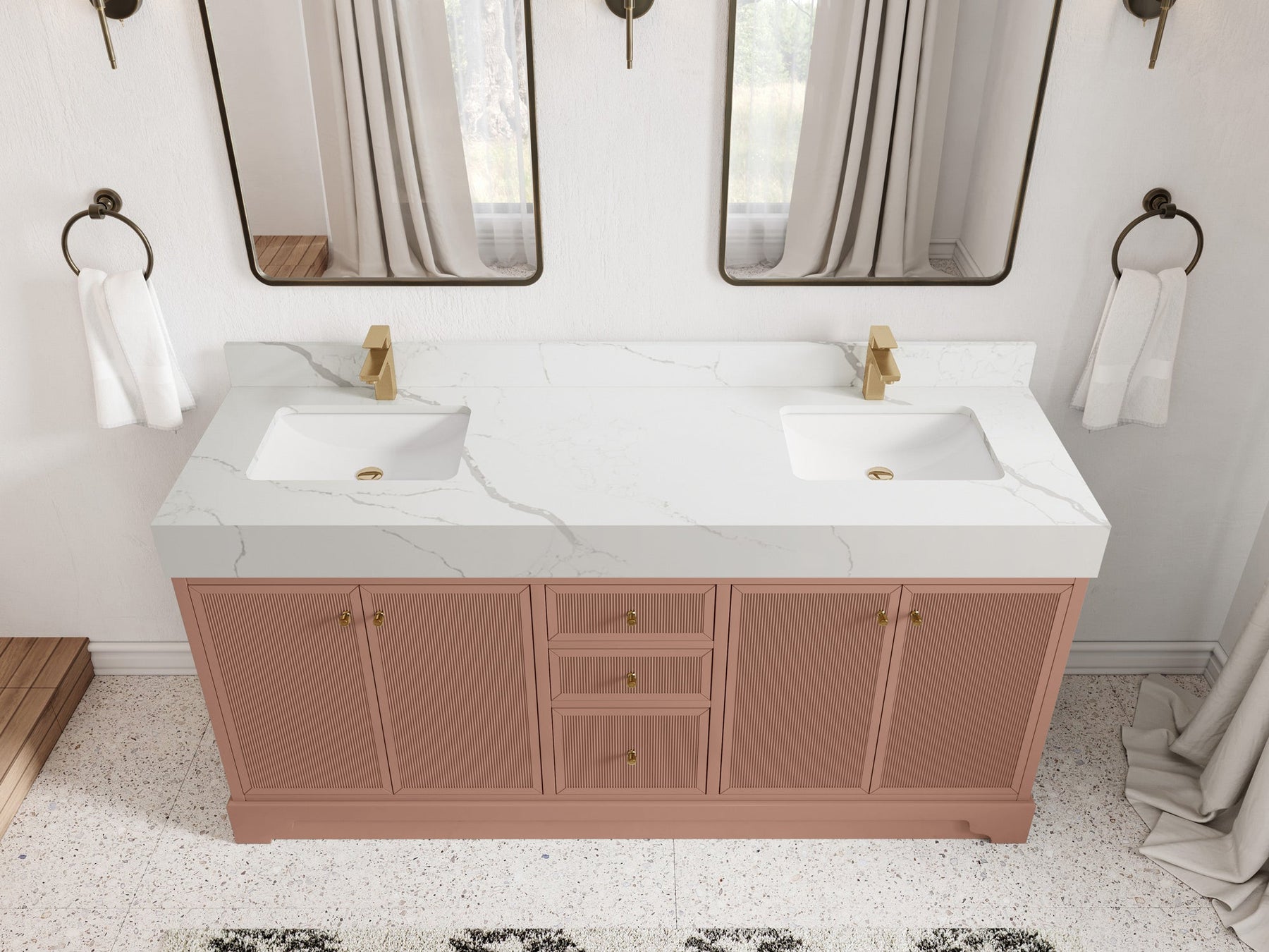 Vanity Countertops options: Straight edge (Calacatta Laza Quartz, Calacatta Nuvo Quartz, Arabescato Marble, Carrara Quartz, Empira White Quartz, Palissandro Quartz, White Quartz, Terrazzo Arctic Breeze, Terrazzo Golden Dusk)