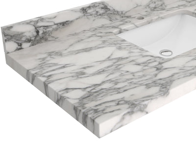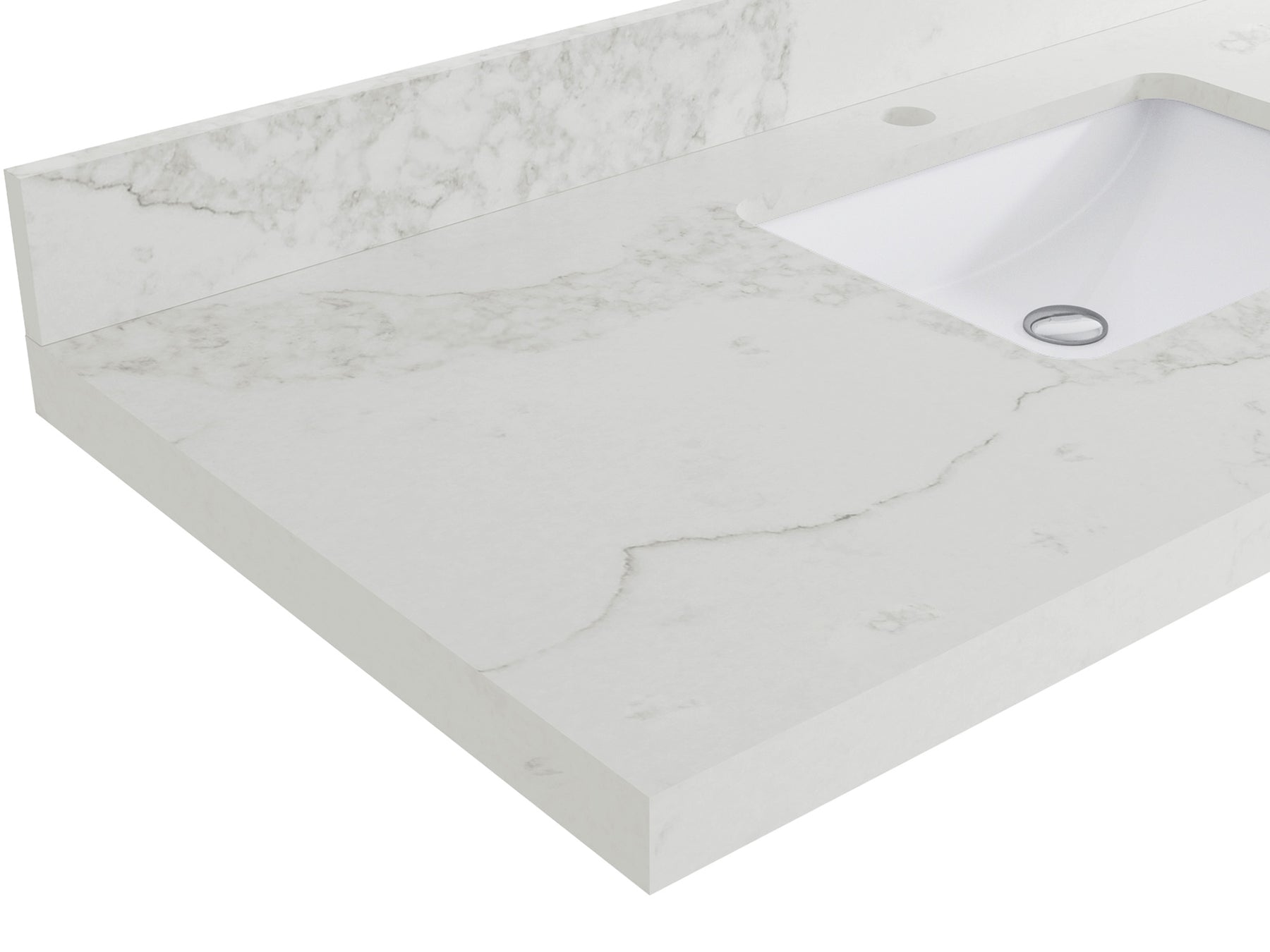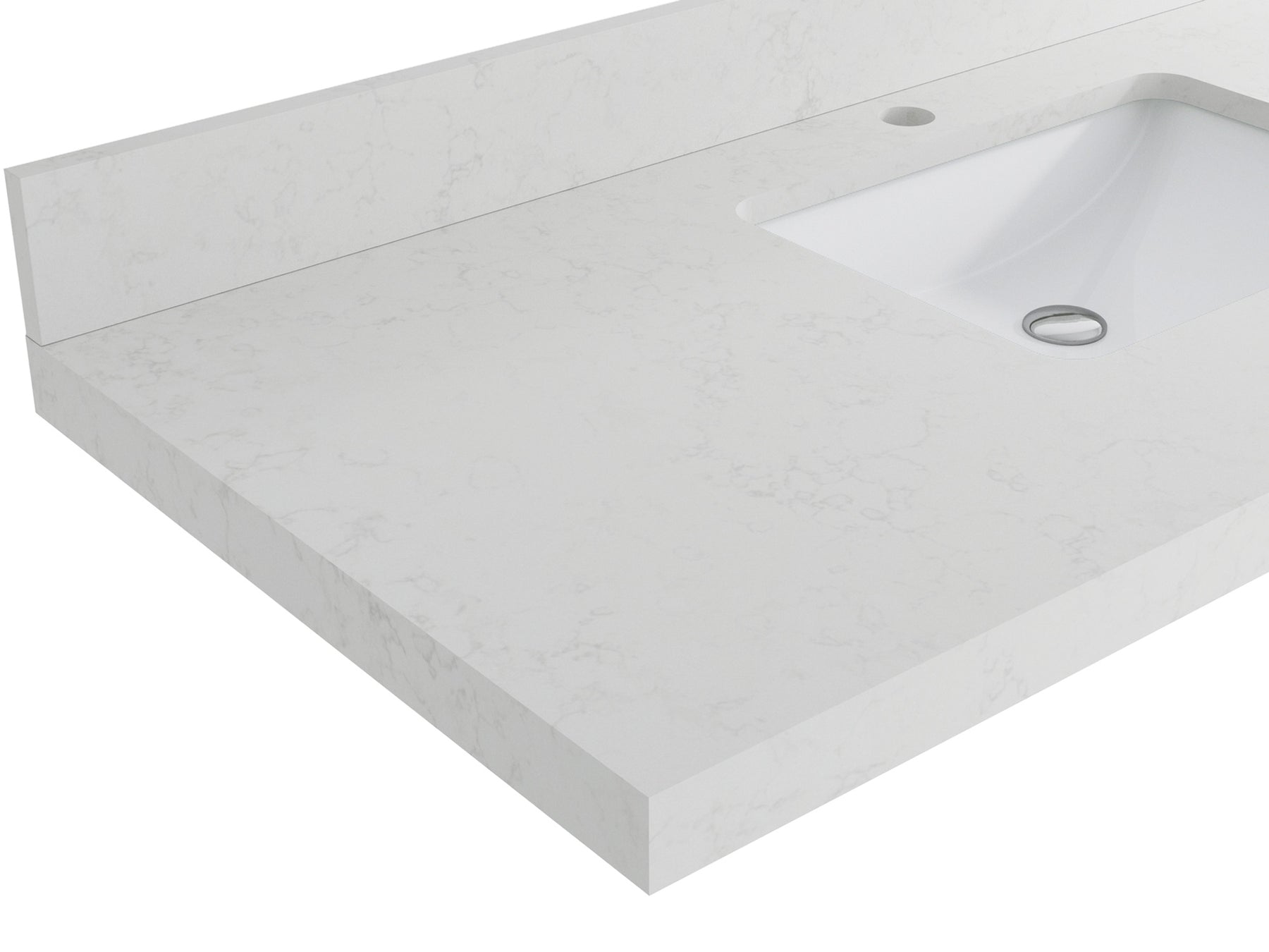 Vanity Countertops options: Straight edge (Calacatta Laza Quartz, Calacatta Nuvo Quartz, Arabescato Marble, Carrara Quartz, Empira White Quartz, Palissandro Quartz, White Quartz, Terrazzo Arctic Breeze, Terrazzo Golden Dusk)