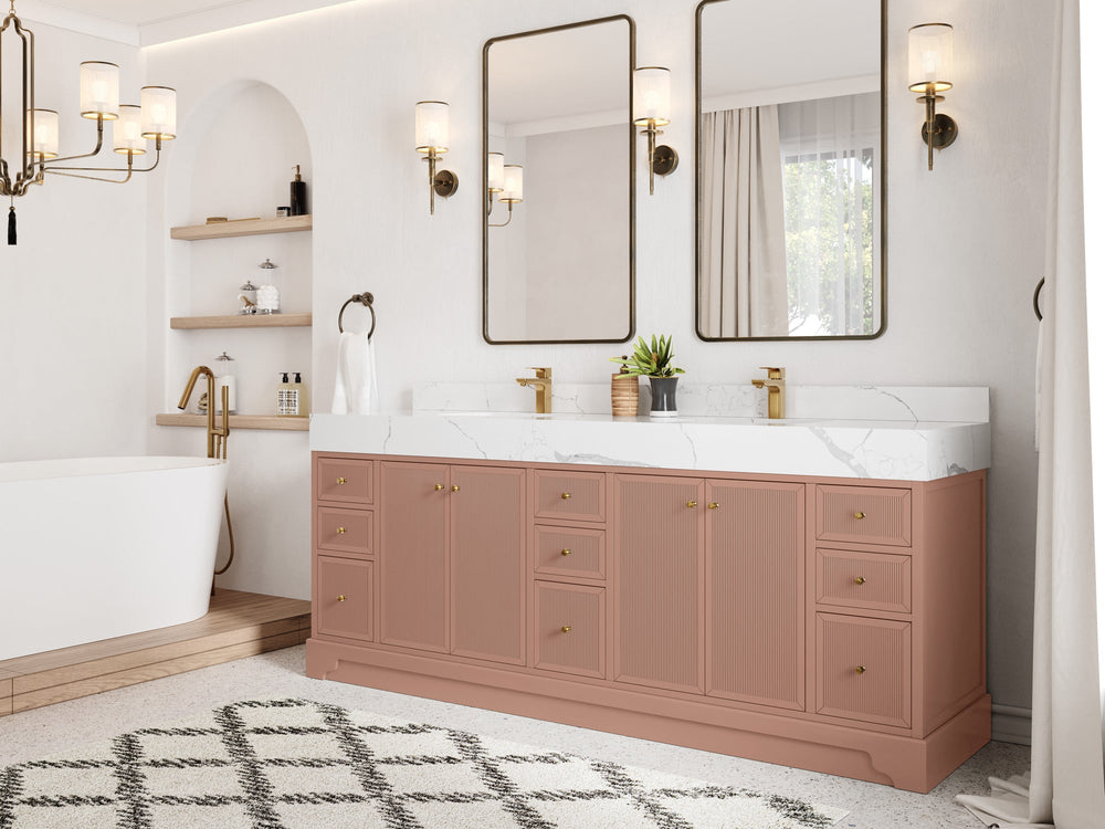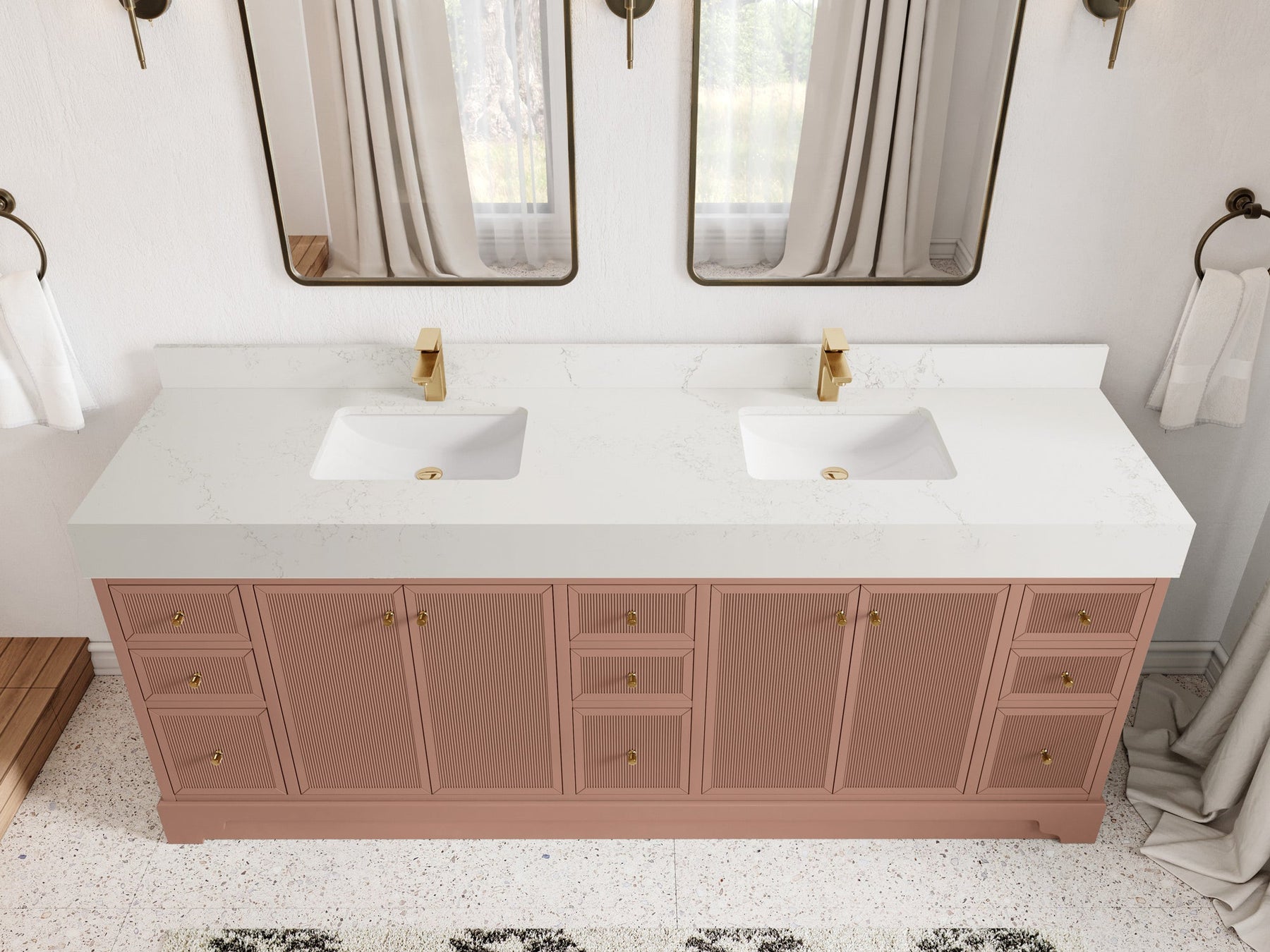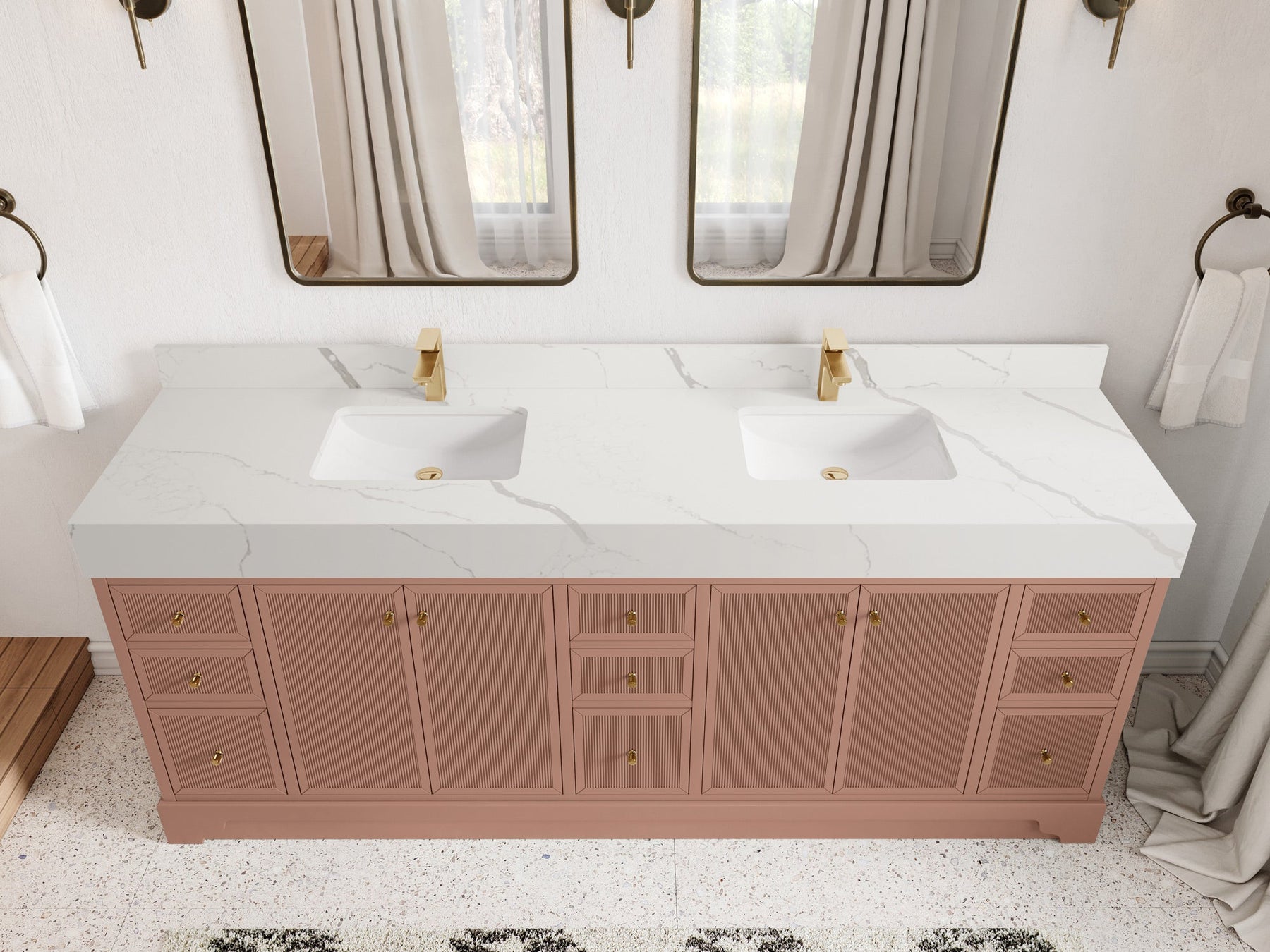 Vanity Countertops options: Straight edge (Calacatta Laza Quartz, Calacatta Nuvo Quartz, Arabescato Marble, Carrara Quartz, Empira White Quartz, Palissandro Quartz, White Quartz, Terrazzo Arctic Breeze, Terrazzo Golden Dusk)
