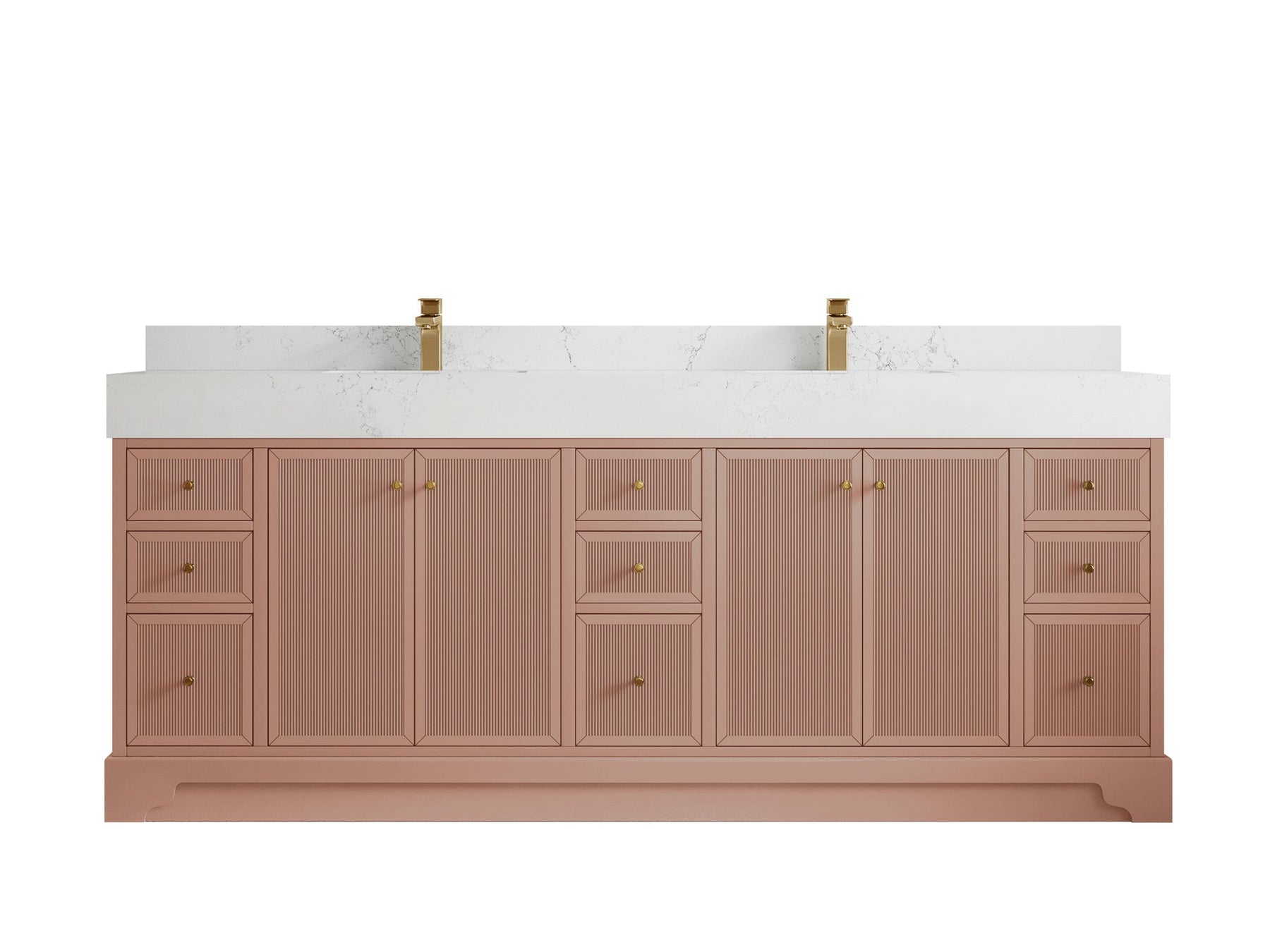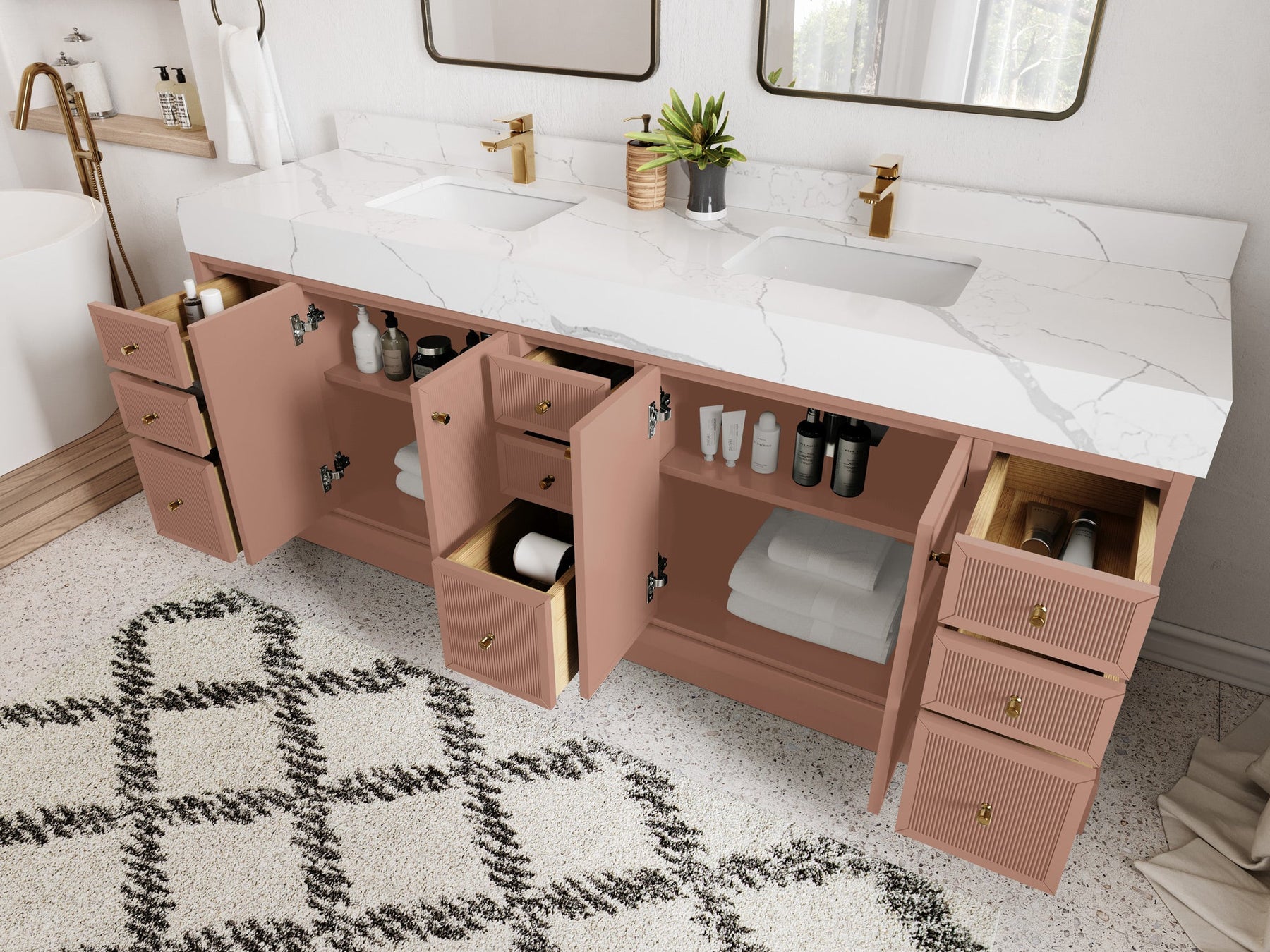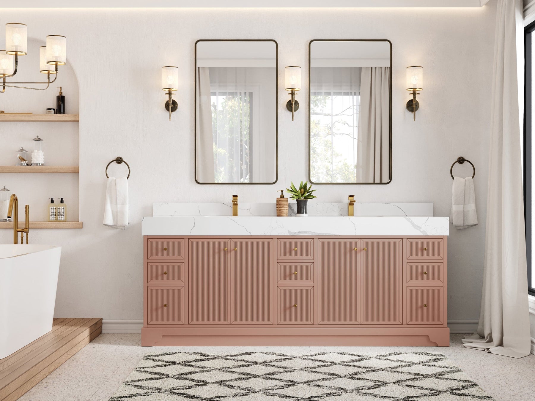 Vanity Countertops options: Straight edge (Calacatta Laza Quartz, Calacatta Nuvo Quartz, Arabescato Marble, Carrara Quartz, Empira White Quartz, Palissandro Quartz, White Quartz, Terrazzo Arctic Breeze, Terrazzo Golden Dusk)