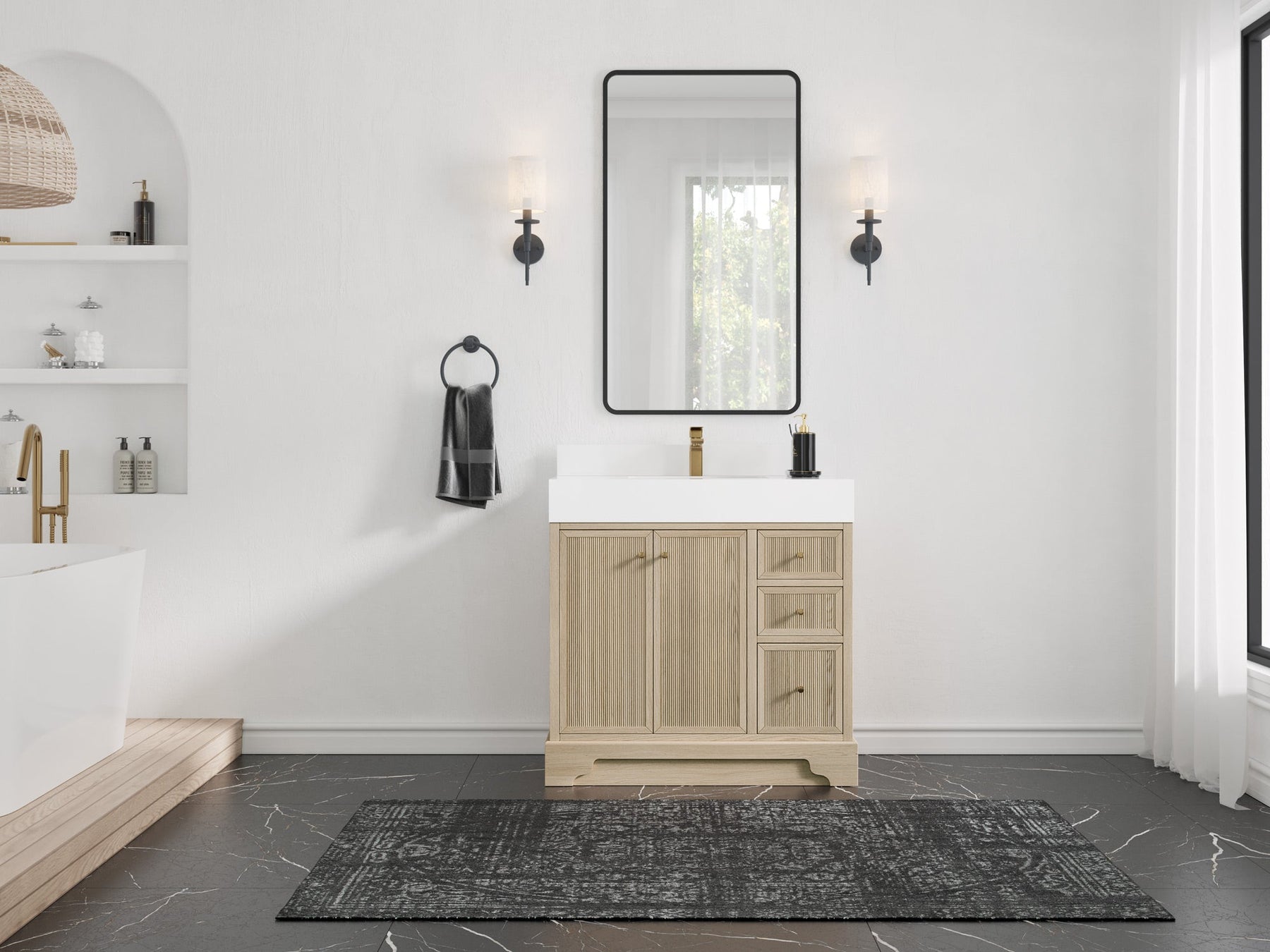 Vanity Countertops options: Straight edge (Calacatta Laza Quartz, Calacatta Nuvo Quartz, Arabescato Marble, Carrara Quartz, Empira White Quartz, Palissandro Quartz, White Quartz, Terrazzo Arctic Breeze, Terrazzo Golden Dusk)
