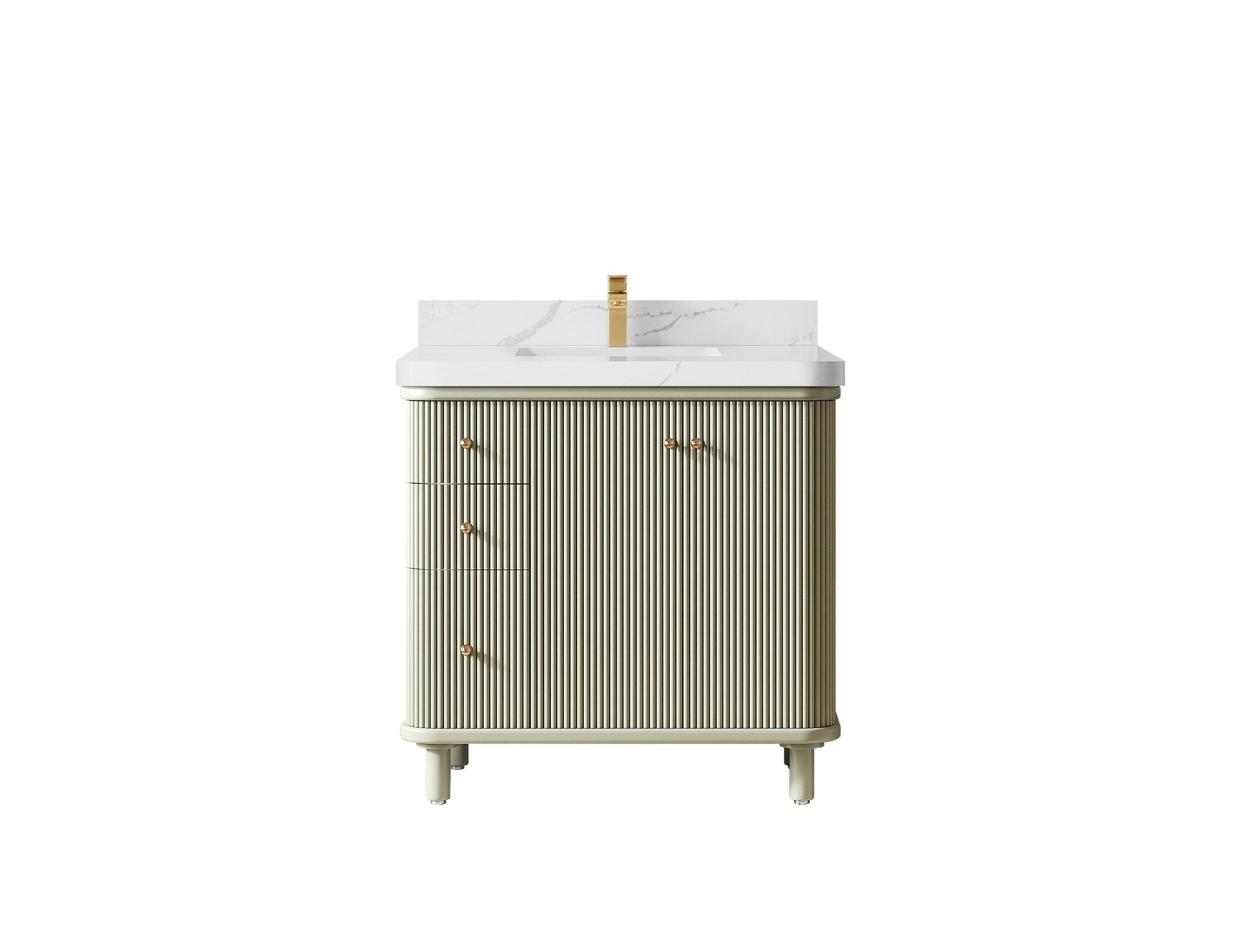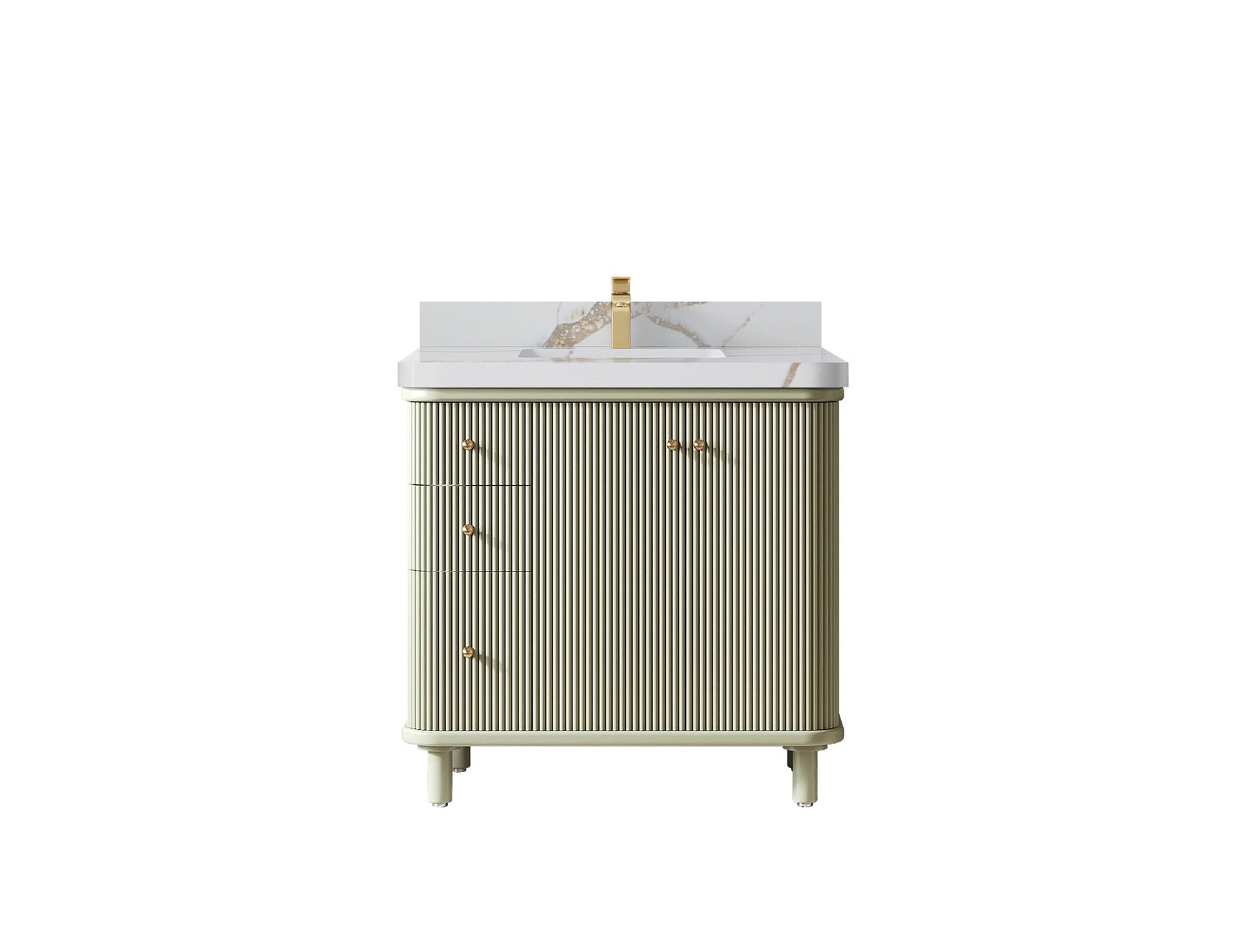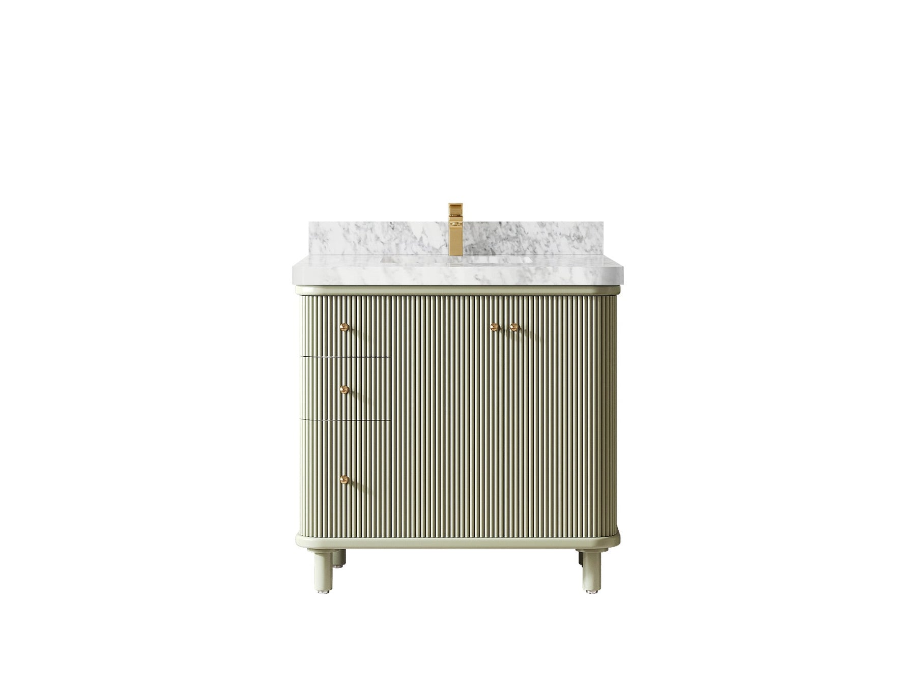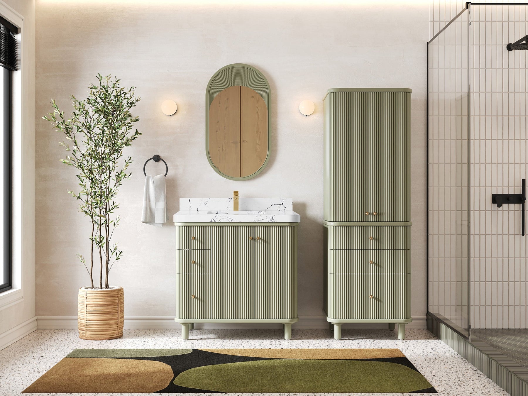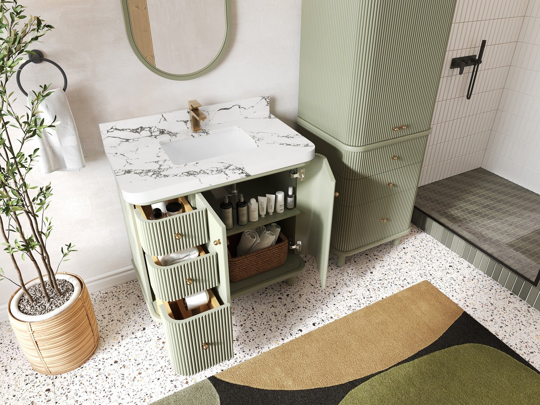 The Miami Vanity is an elegant centerpiece inspired by Miami’s iconic blend of contemporary flair and classic Art Deco charm. Featuring striking fluted detailing, softly rounded edges, and sleek, modern legs, this vanity delivers a luxurious yet approachable style. Its thoughtfully designed interior includes practical organizers and an integrated power station, making everyday routines effortlessly organized. Available in various sizes, beautiful color choices, and countertop materials like quartz, marble, quartzite, or terrazzo, the Miami Vanity easily adapts to your personal aesthetic. Complete with spacious soft-close drawers and premium hardware, this vanity brings functionality, refined design, and exceptional quality to your bathroom space.