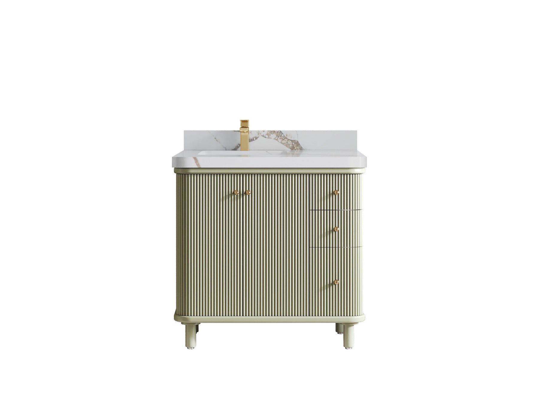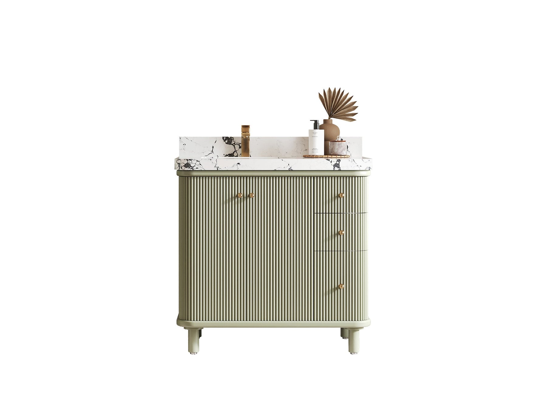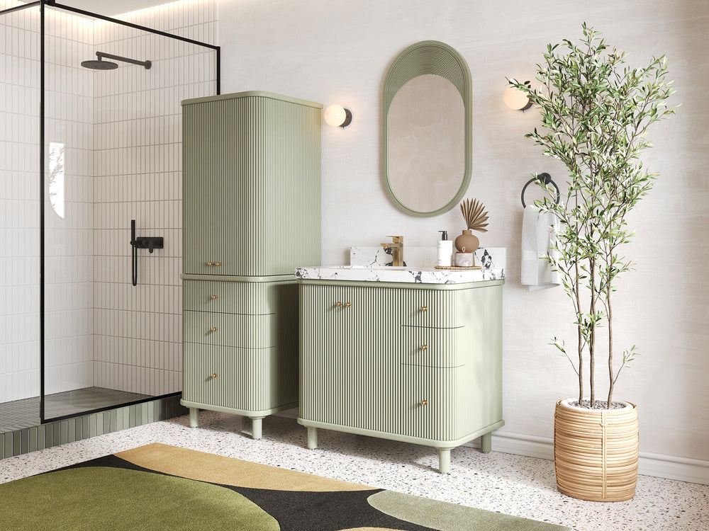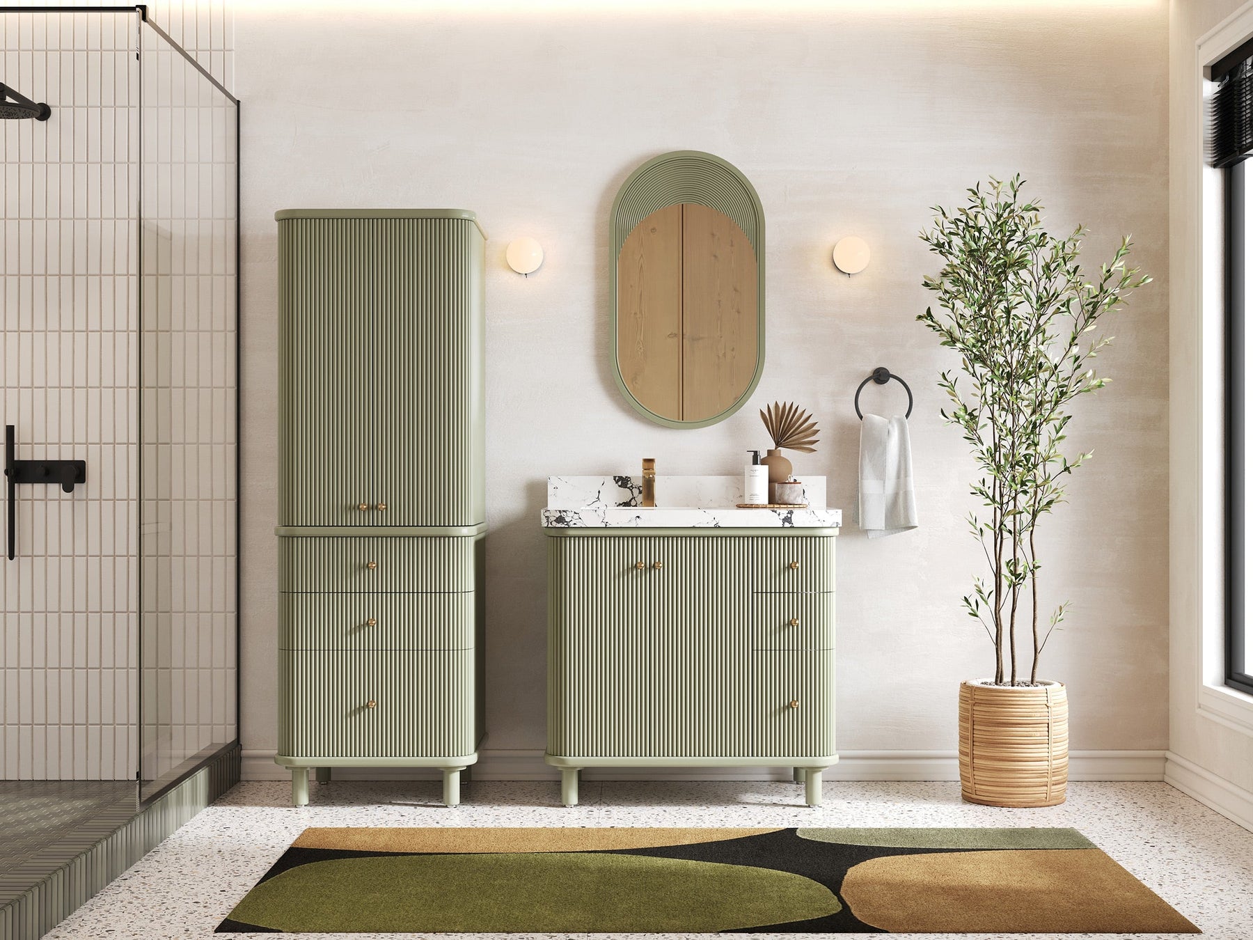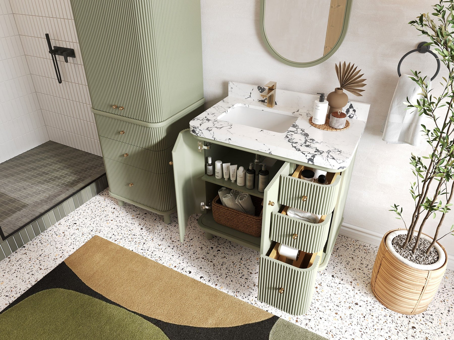 The Miami Vanity is an elegant centerpiece inspired by Miami’s iconic blend of contemporary flair and classic Art Deco charm. Featuring striking fluted detailing, softly rounded edges, and sleek, modern legs, this vanity delivers a luxurious yet approachable style. Its thoughtfully designed interior includes practical organizers and an integrated power station, making everyday routines effortlessly organized. Available in various sizes, beautiful color choices, and countertop materials like quartz, marble, quartzite, or terrazzo, the Miami Vanity easily adapts to your personal aesthetic. Complete with spacious soft-close drawers and premium hardware, this vanity brings functionality, refined design, and exceptional quality to your bathroom space.
