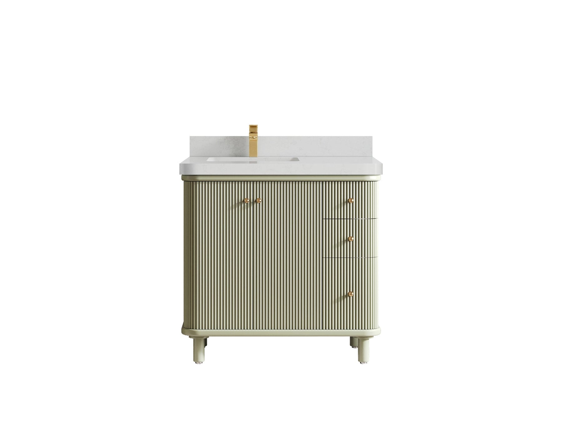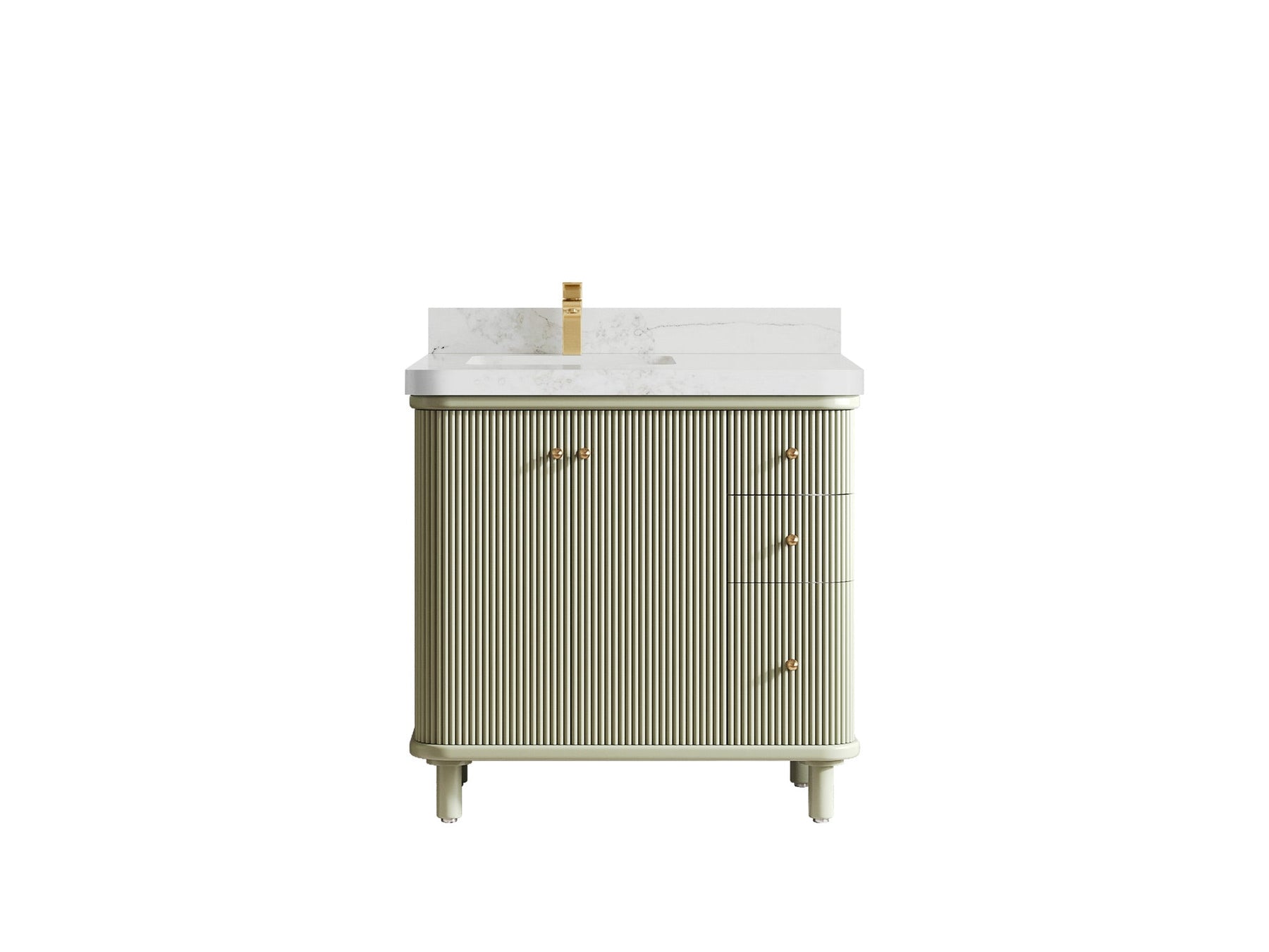 Miami 36 in. W x 22 in. D  Left Offset Sink Bathroom Vanity in Evergreen with Calacatta Sienna Quartz Countertop - Top View
