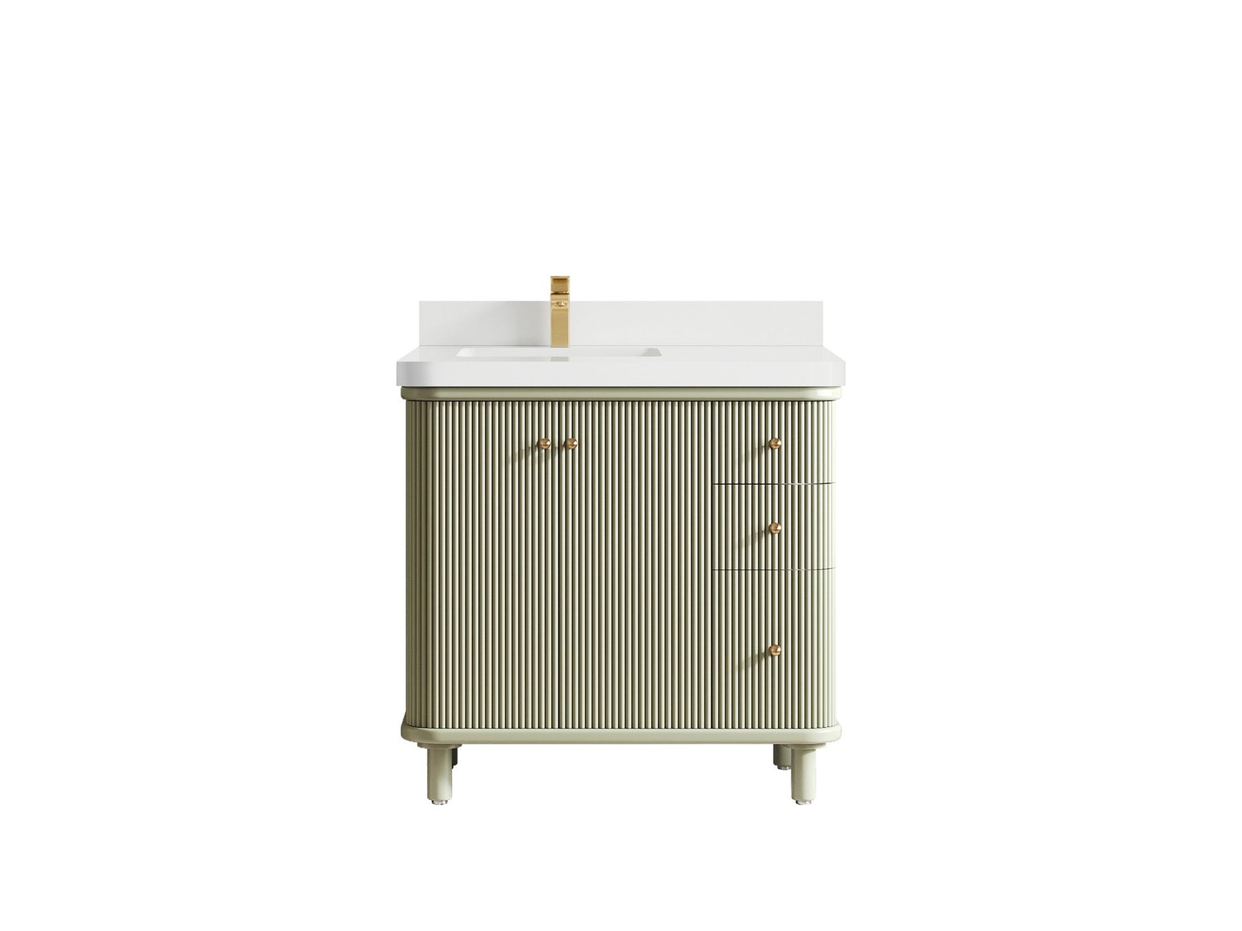 Miami 36 in. W x 22 in. D  Left Offset Sink Bathroom Vanity in Evergreen with Empira White Quartz Countertop - Top View