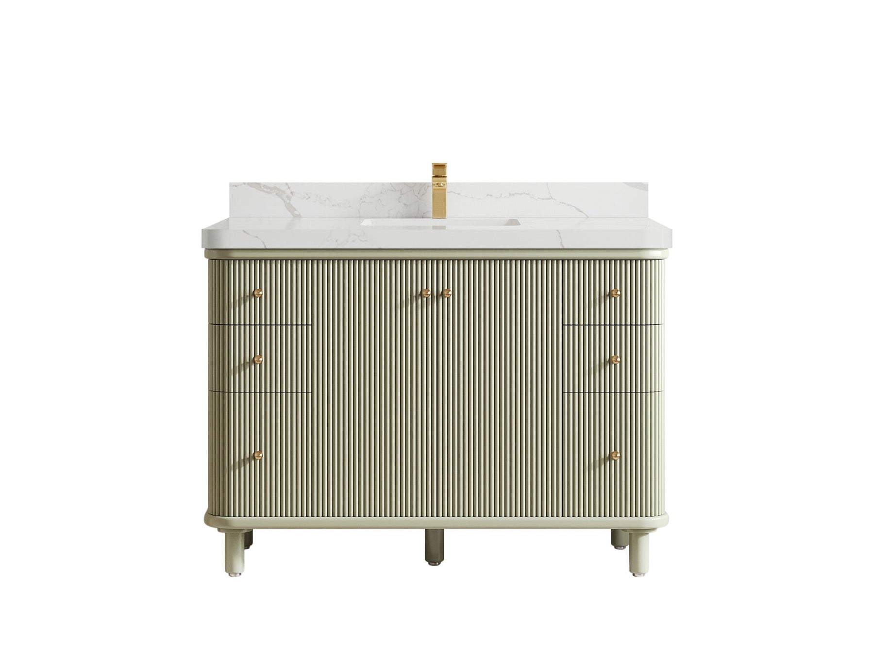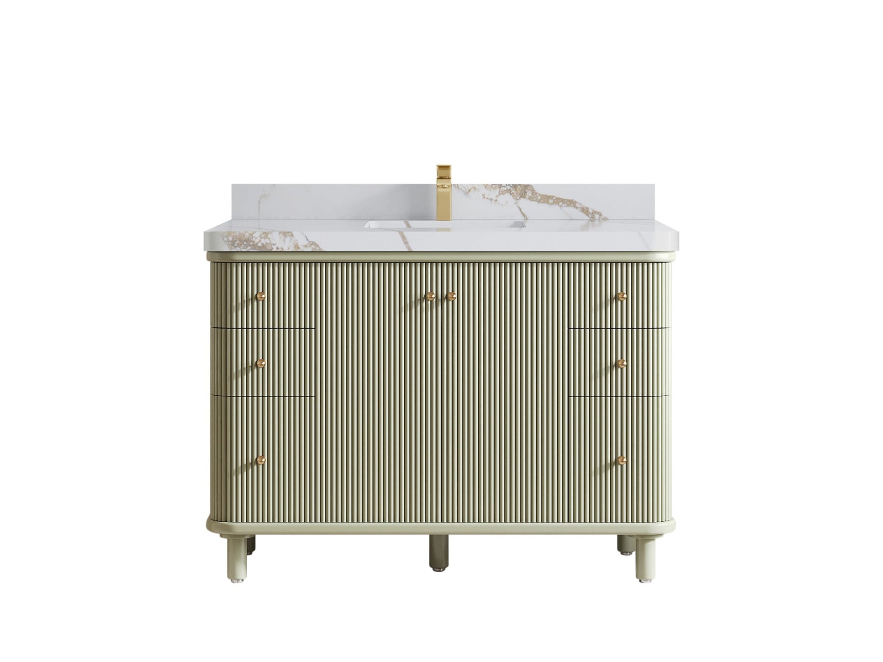 Miami 48 in. W x 22 in. D Single Sink Bathroom Vanity in Evergreen with 2 in Calacatta Sienna Quartz Countertop - Top View