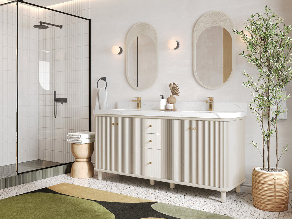 Vanity Countertops options: For Calacatta Laza Quartz, Empira White Quartz, Pure White Quartz, Palissandro Quartz, Calacatta Nuvo Quartz, Carrara Quartz, Carrara Marble, Calacatta Gold Quartz, Calacatta Sienna Quartz we have Straight - Mitered Edge option.