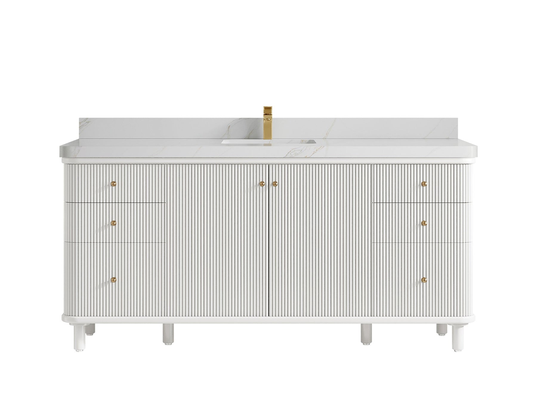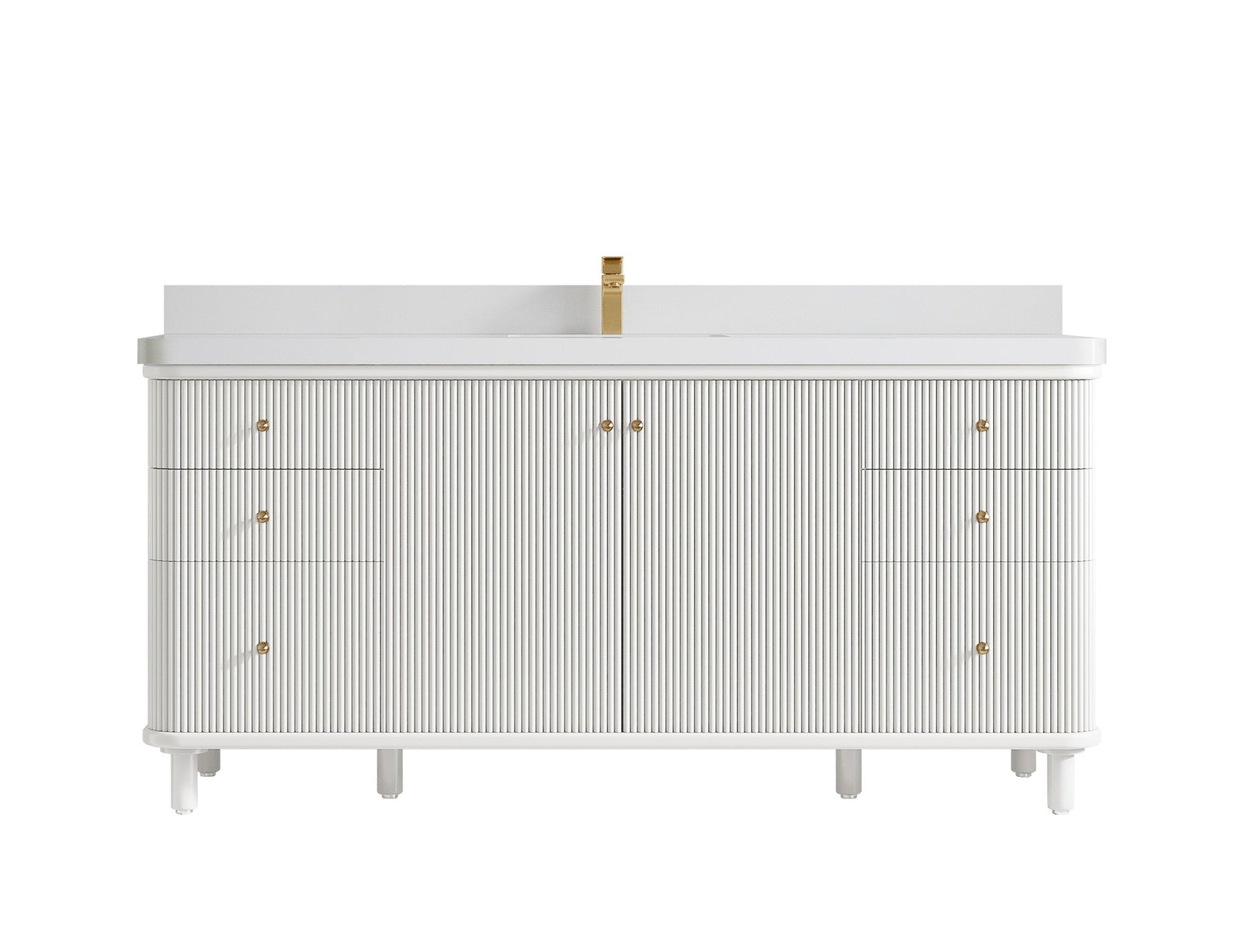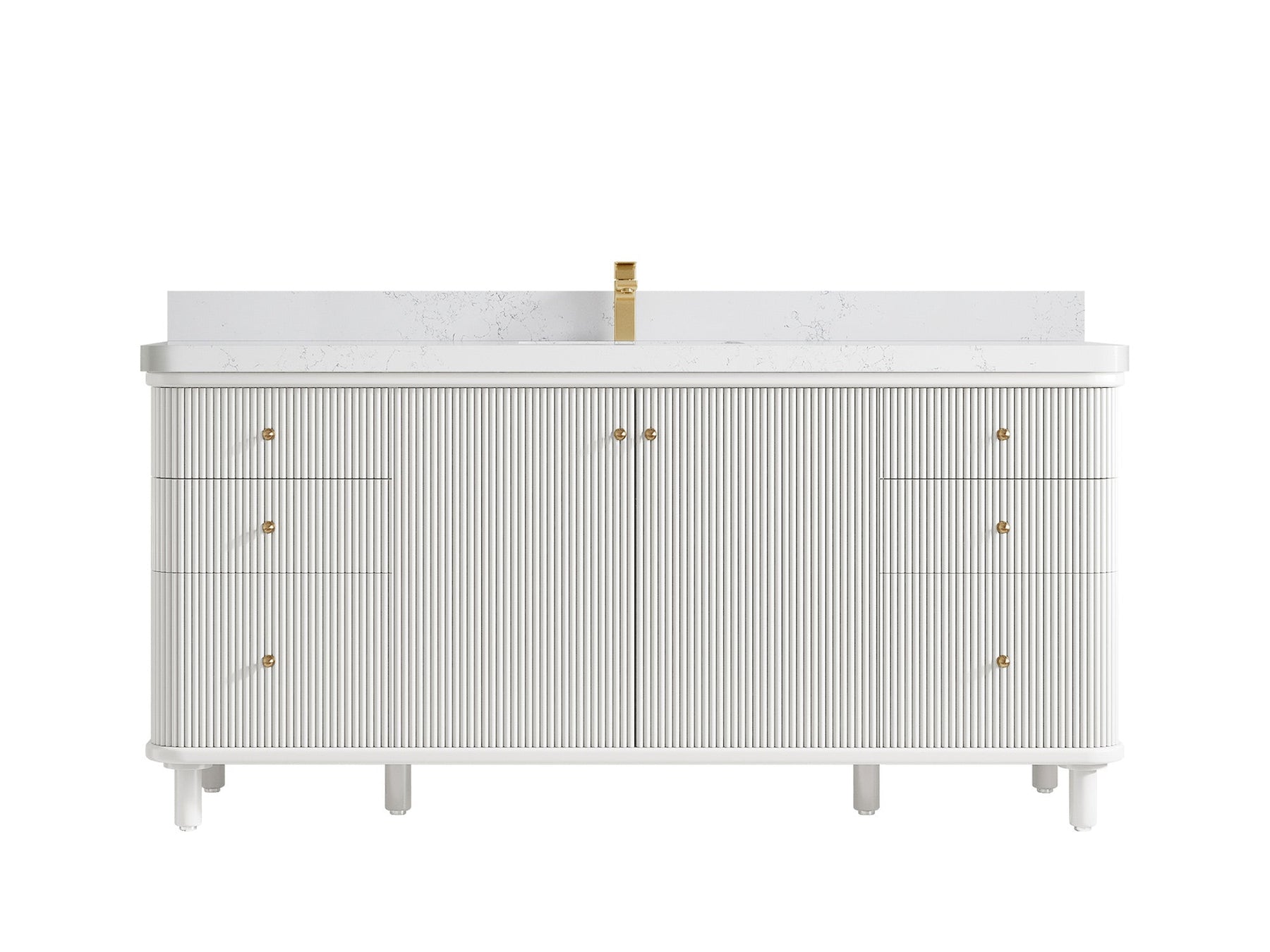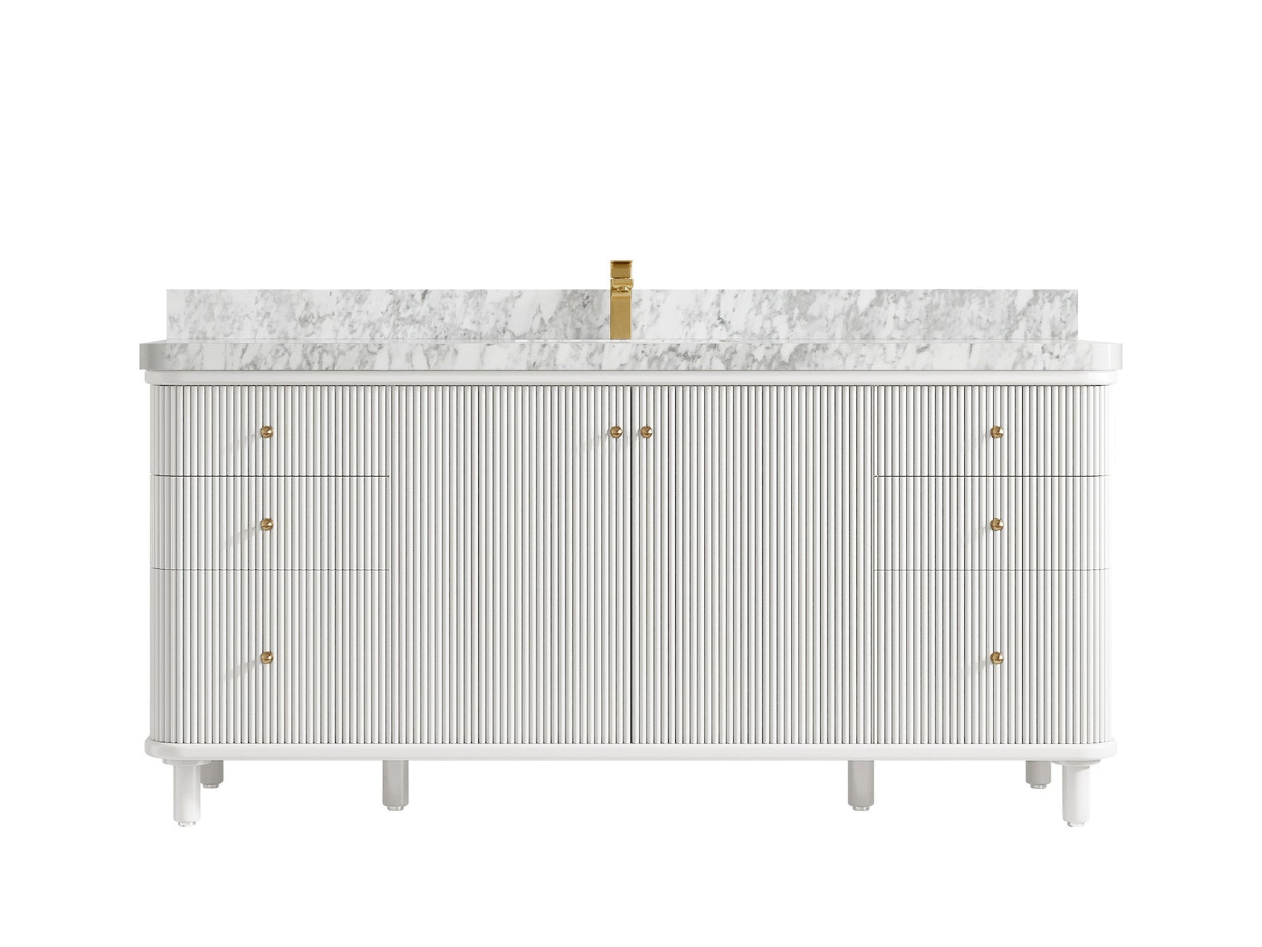 The Miami Vanity is an elegant centerpiece inspired by Miami’s iconic blend of contemporary flair and classic Art Deco charm. Featuring striking fluted detailing, softly rounded edges, and sleek, modern legs, this vanity delivers a luxurious yet approachable style. Its thoughtfully designed interior includes practical organizers and an integrated power station, making everyday routines effortlessly organized. Available in various sizes, beautiful color choices, and countertop materials like quartz, marble, quartzite, or terrazzo, the Miami Vanity easily adapts to your personal aesthetic. Complete with spacious soft-close drawers and premium hardware, this vanity brings functionality, refined design, and exceptional quality to your bathroom space.