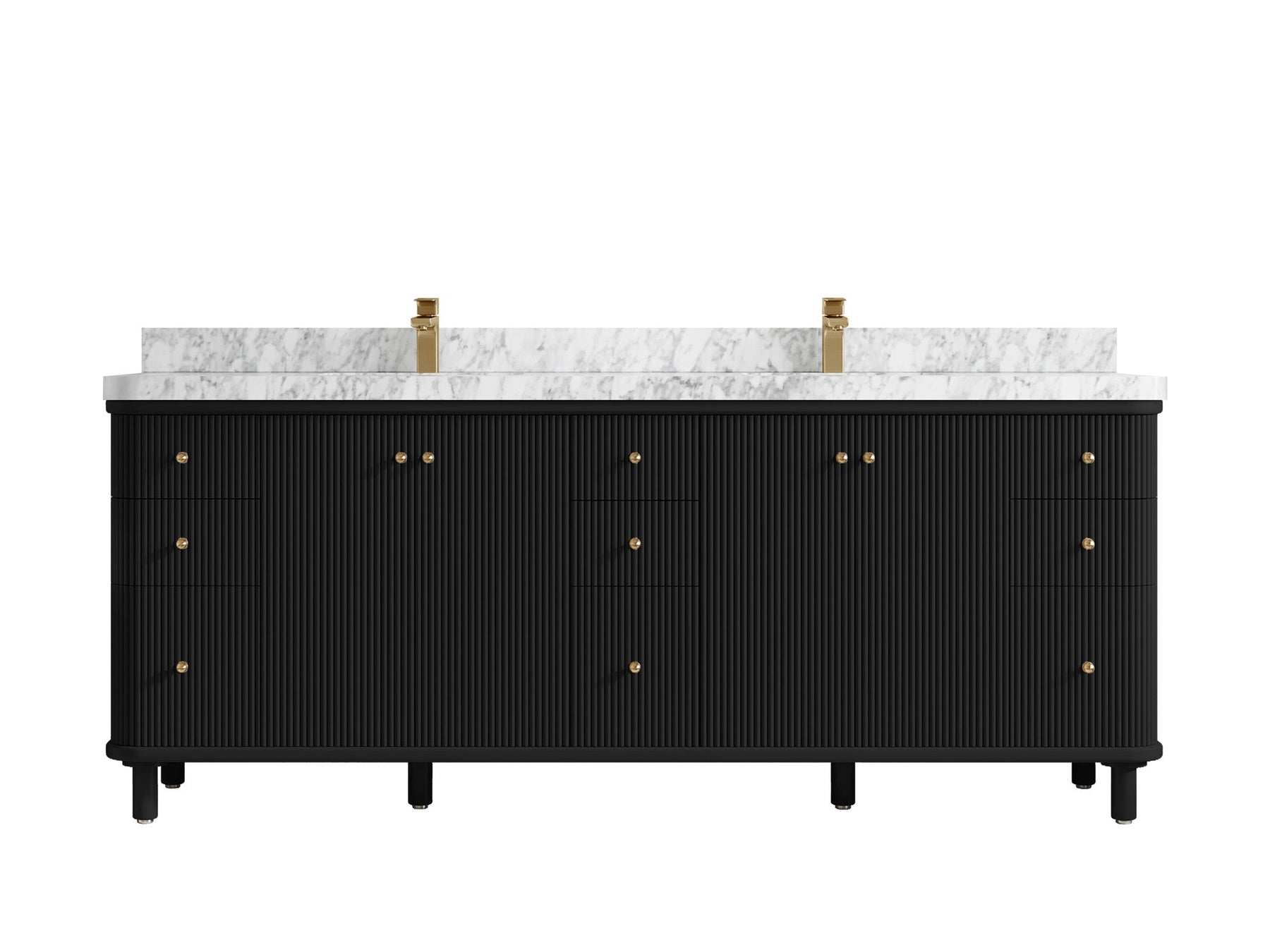 Miami 84 in. W x 22 in. D Double Sink Bathroom Vanity in Black with 2 in Carrara Marble Countertop - Top View