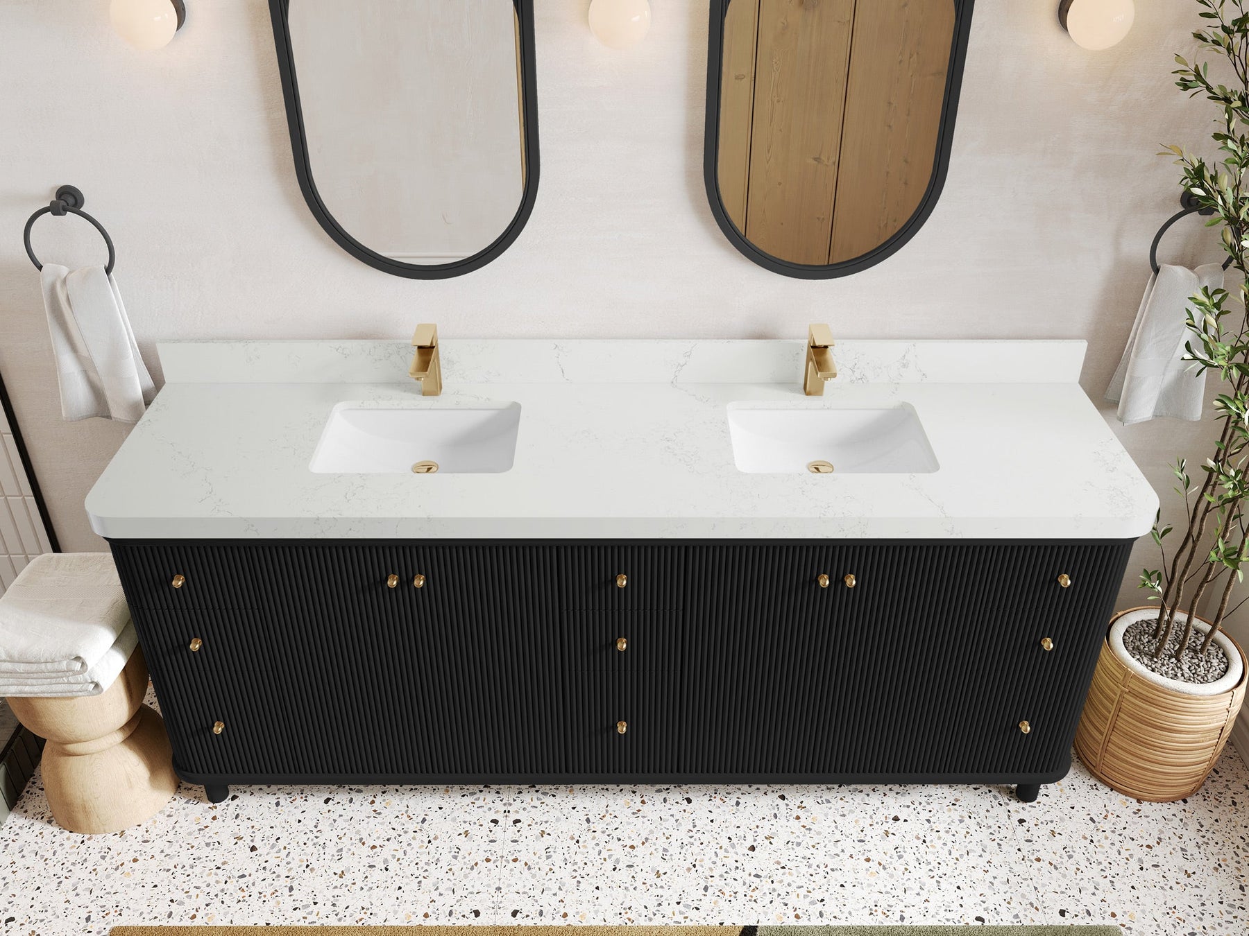 Miami 84 in. W x 22 in. D Double Sink Bathroom Vanity in Black with 2 in White Quartz Countertop - Top View