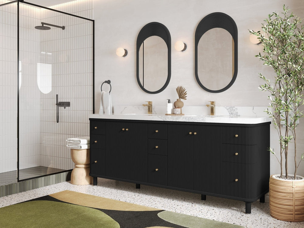 The Miami Vanity is an elegant centerpiece inspired by Miami’s iconic blend of contemporary flair and classic Art Deco charm. Featuring striking fluted detailing, softly rounded edges, and sleek, modern legs, this vanity delivers a luxurious yet approachable style. Its thoughtfully designed interior includes practical organizers and an integrated power station, making everyday routines effortlessly organized. Available in various sizes, beautiful color choices, and countertop materials like quartz, marble, quartzite, or terrazzo, the Miami Vanity easily adapts to your personal aesthetic. Complete with spacious soft-close drawers and premium hardware, this vanity brings functionality, refined design, and exceptional quality to your bathroom space.