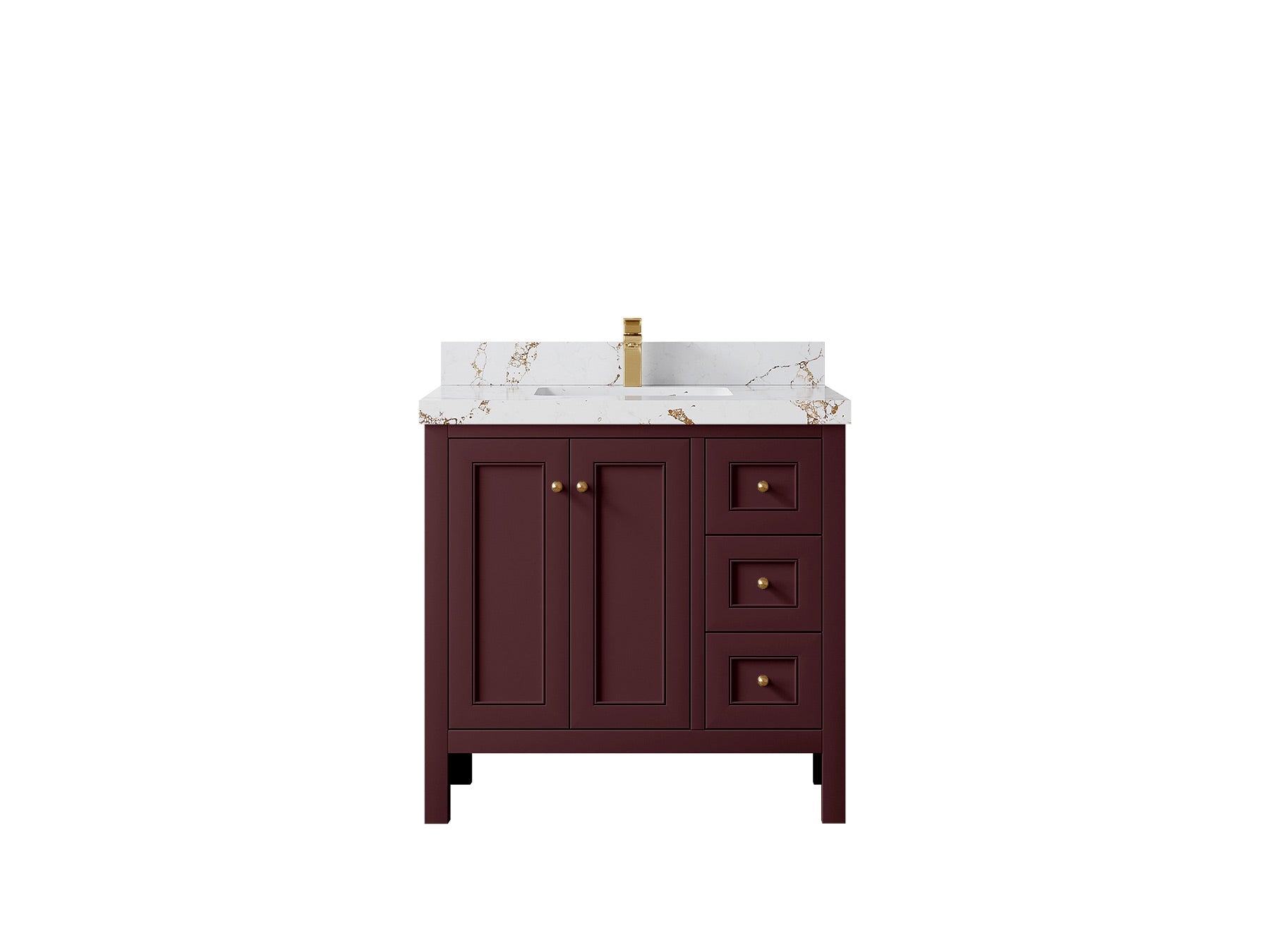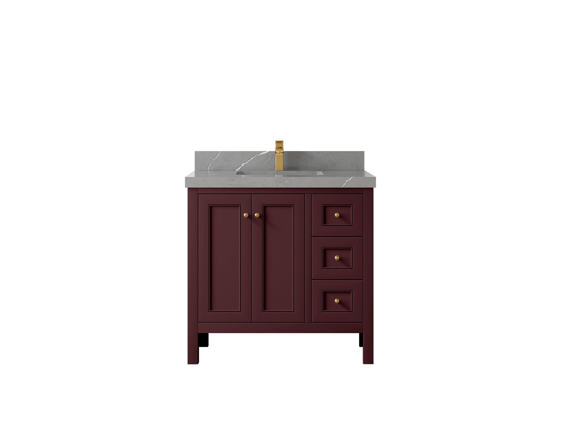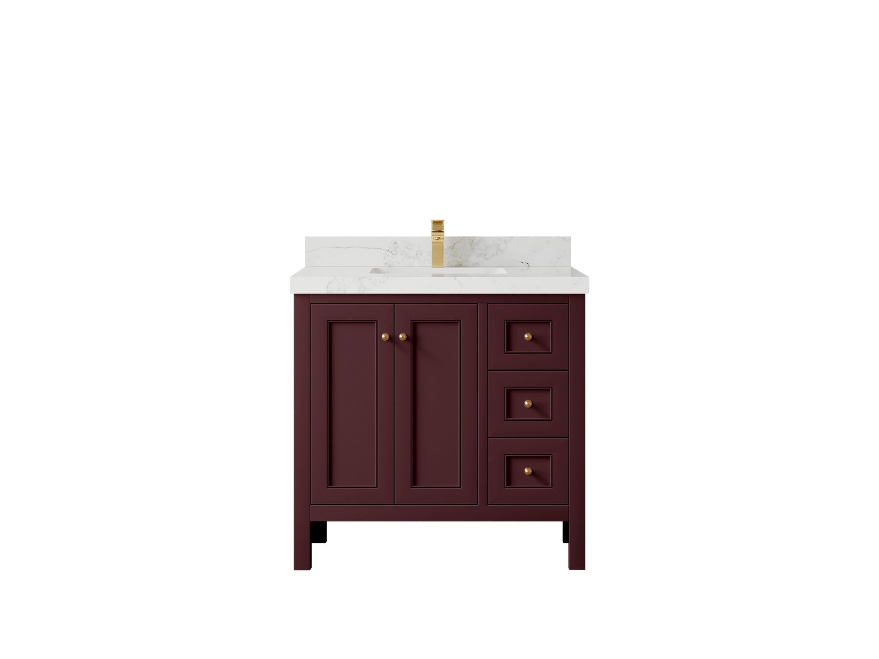 Nashville 36 in. W x 22 in. D Center Sink Bathroom Vanity | Burgundy
