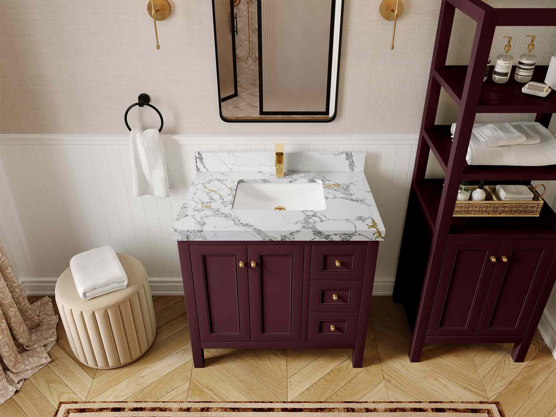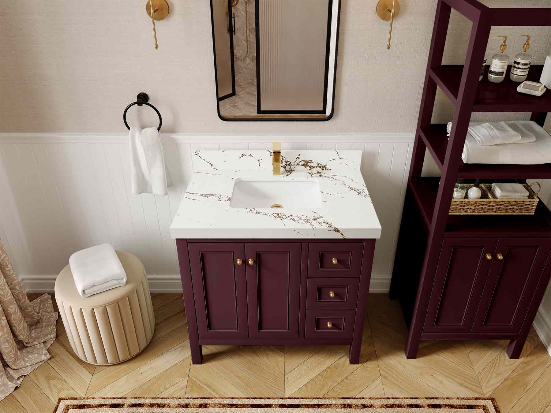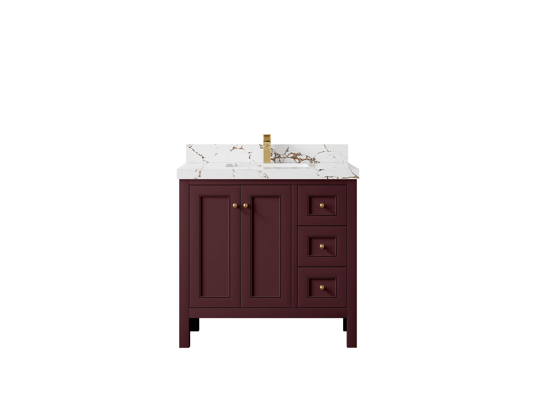 Nashville 36 in. W x 22 in. D Center Sink Bathroom Vanity | Burgundy