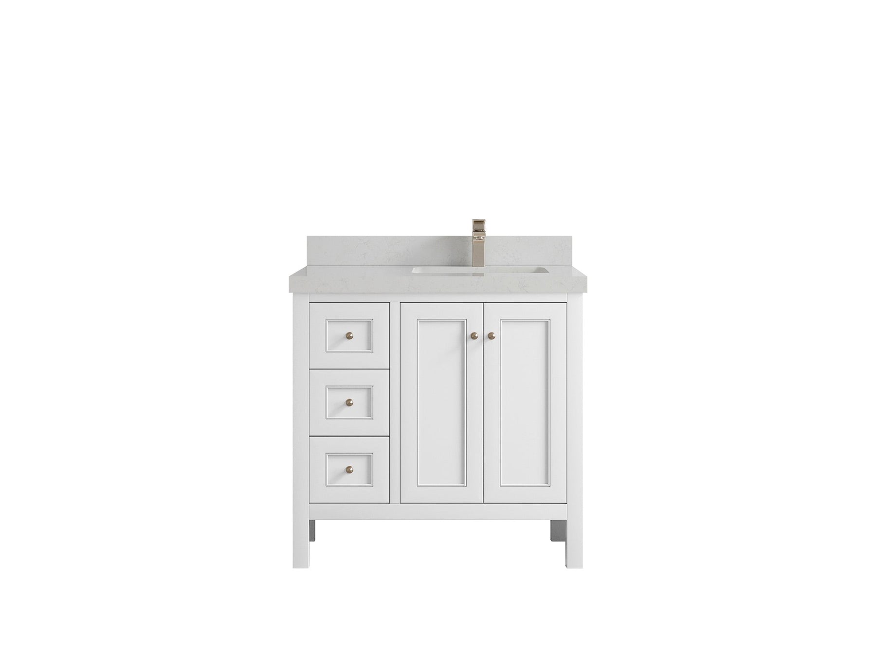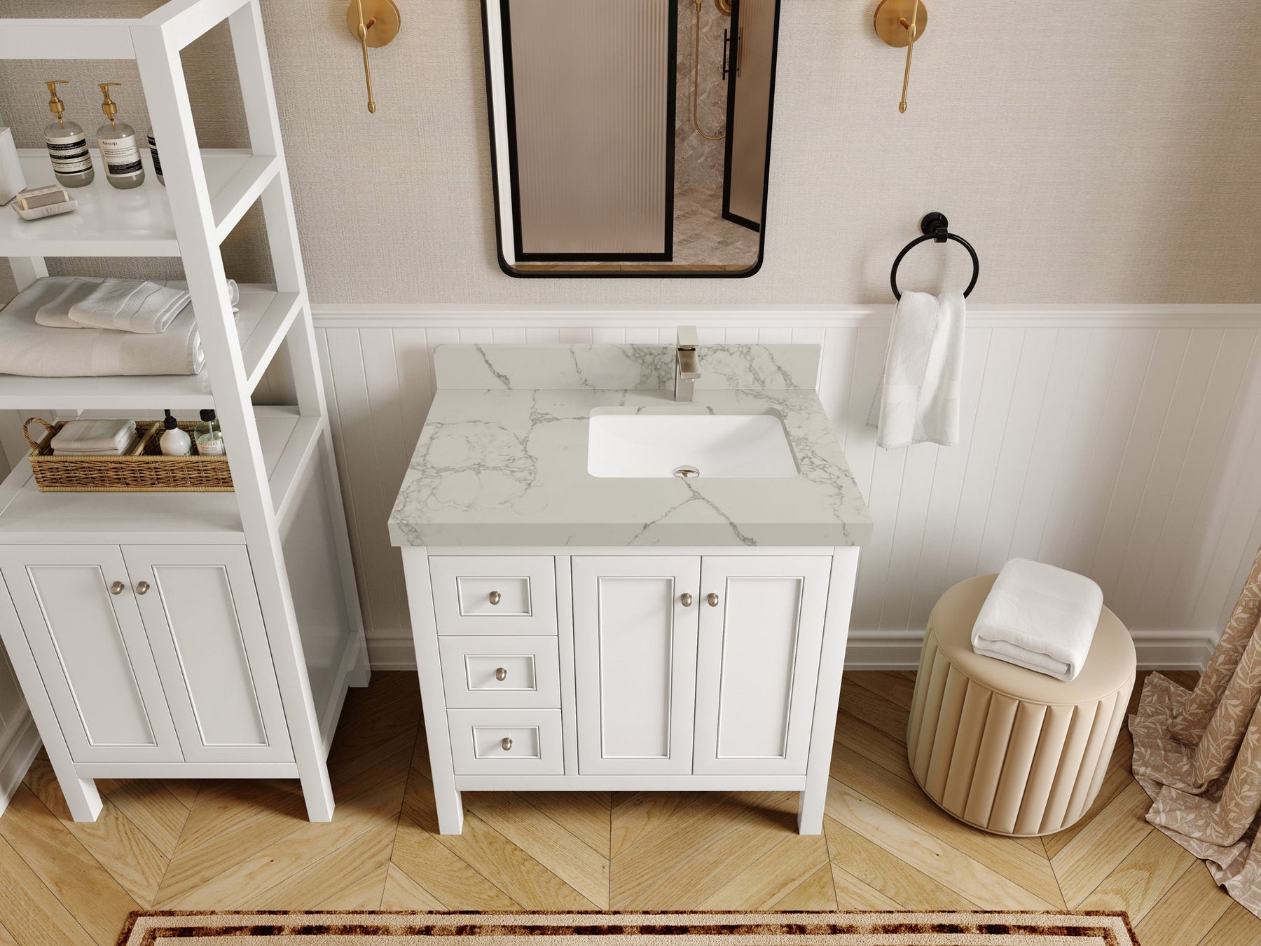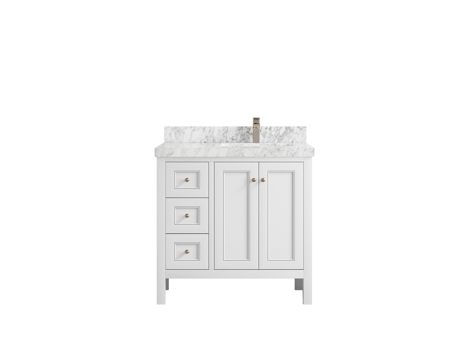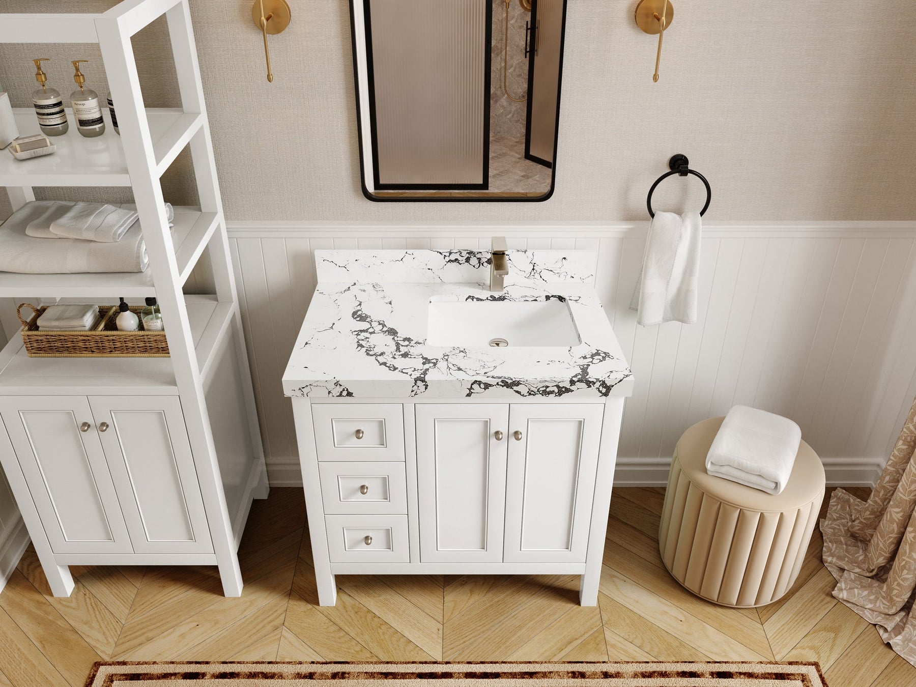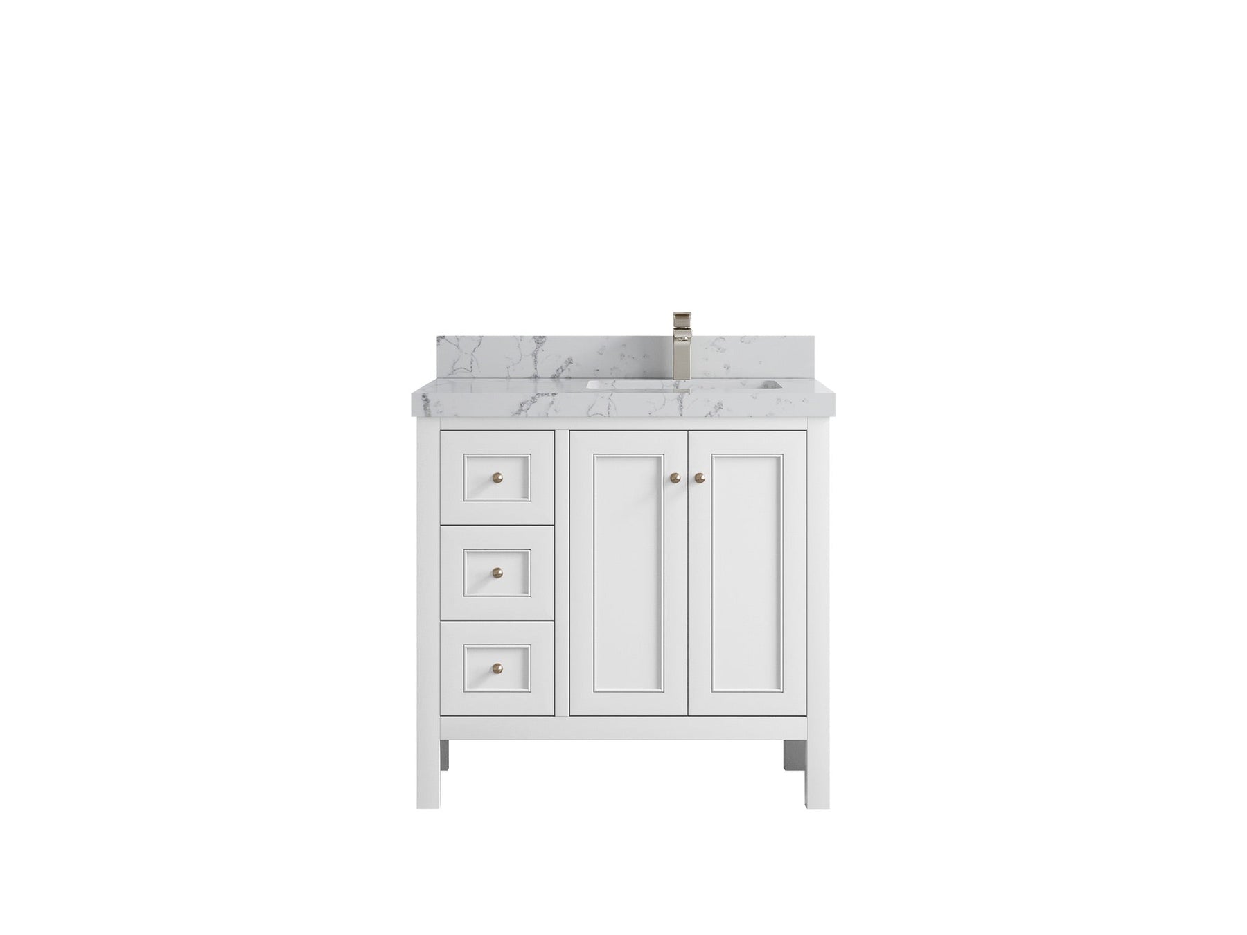 Faucet Hole(S): Comes with Single Faucet, 8 (in.) Widespread Faucet, Wall mount Faucets - Only Available for White Quartz and Carrara Quartz. (PLEASE ADD THIS CONFIGURATION UNDER COUNTERTOPS SECTION )