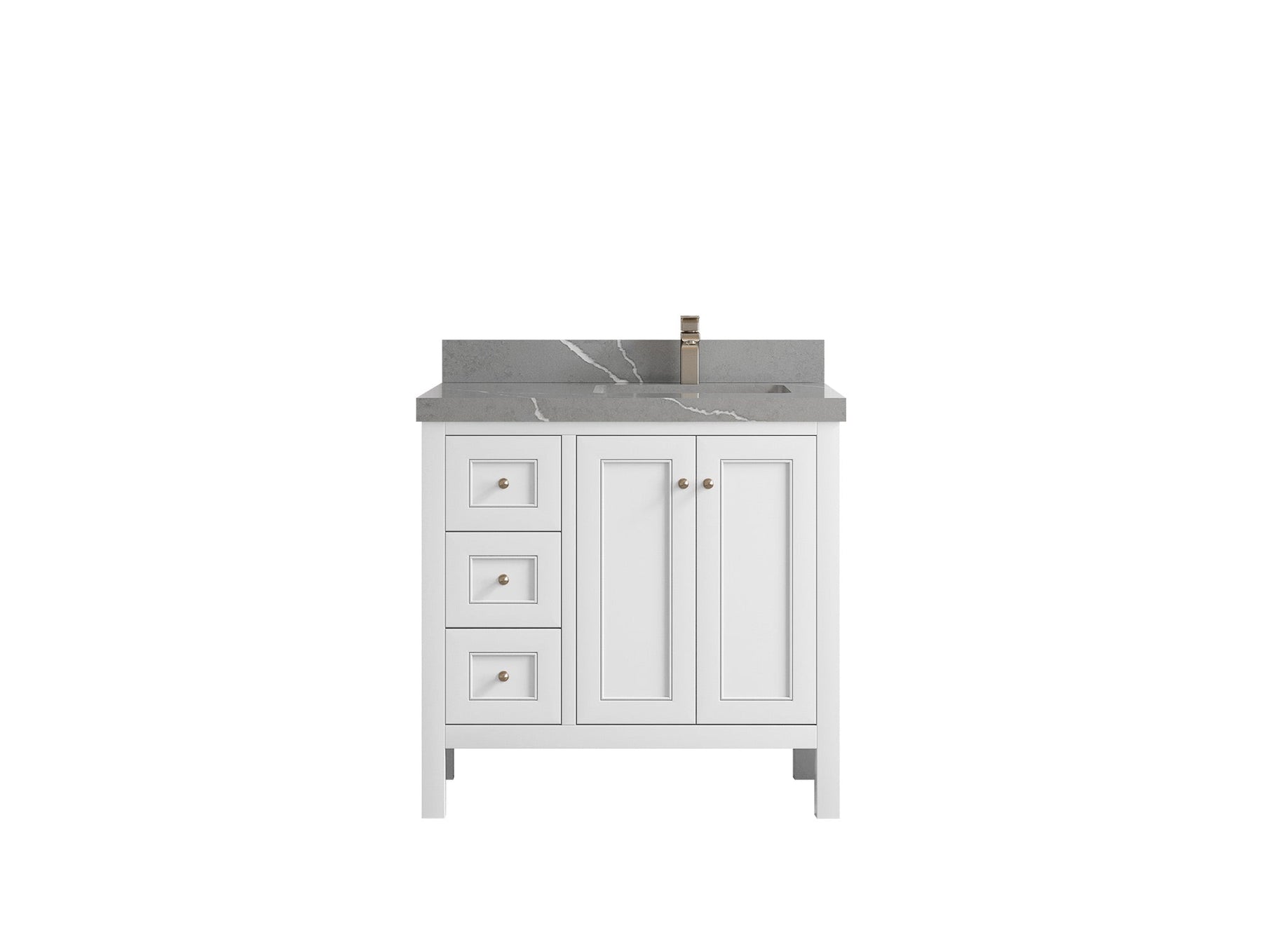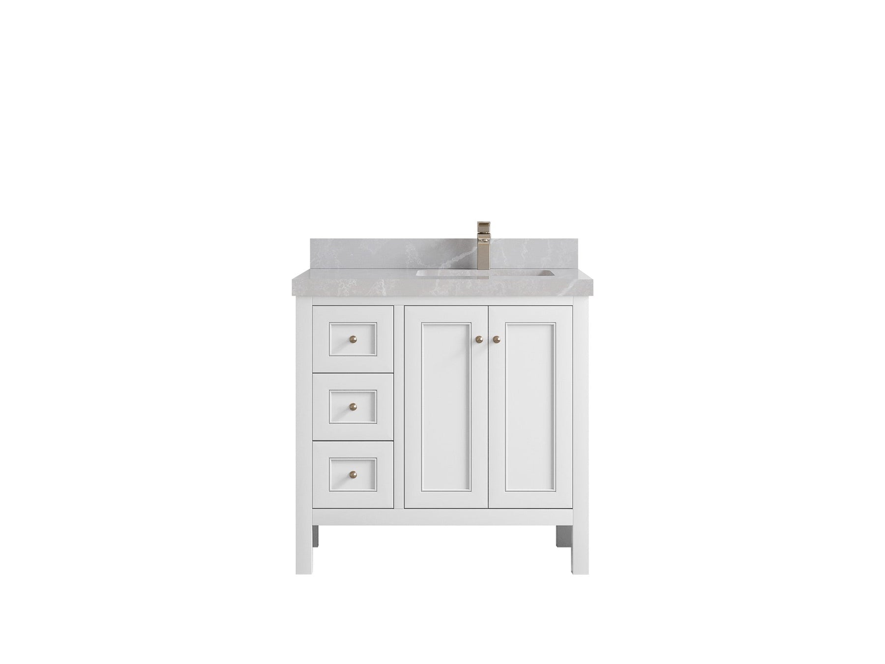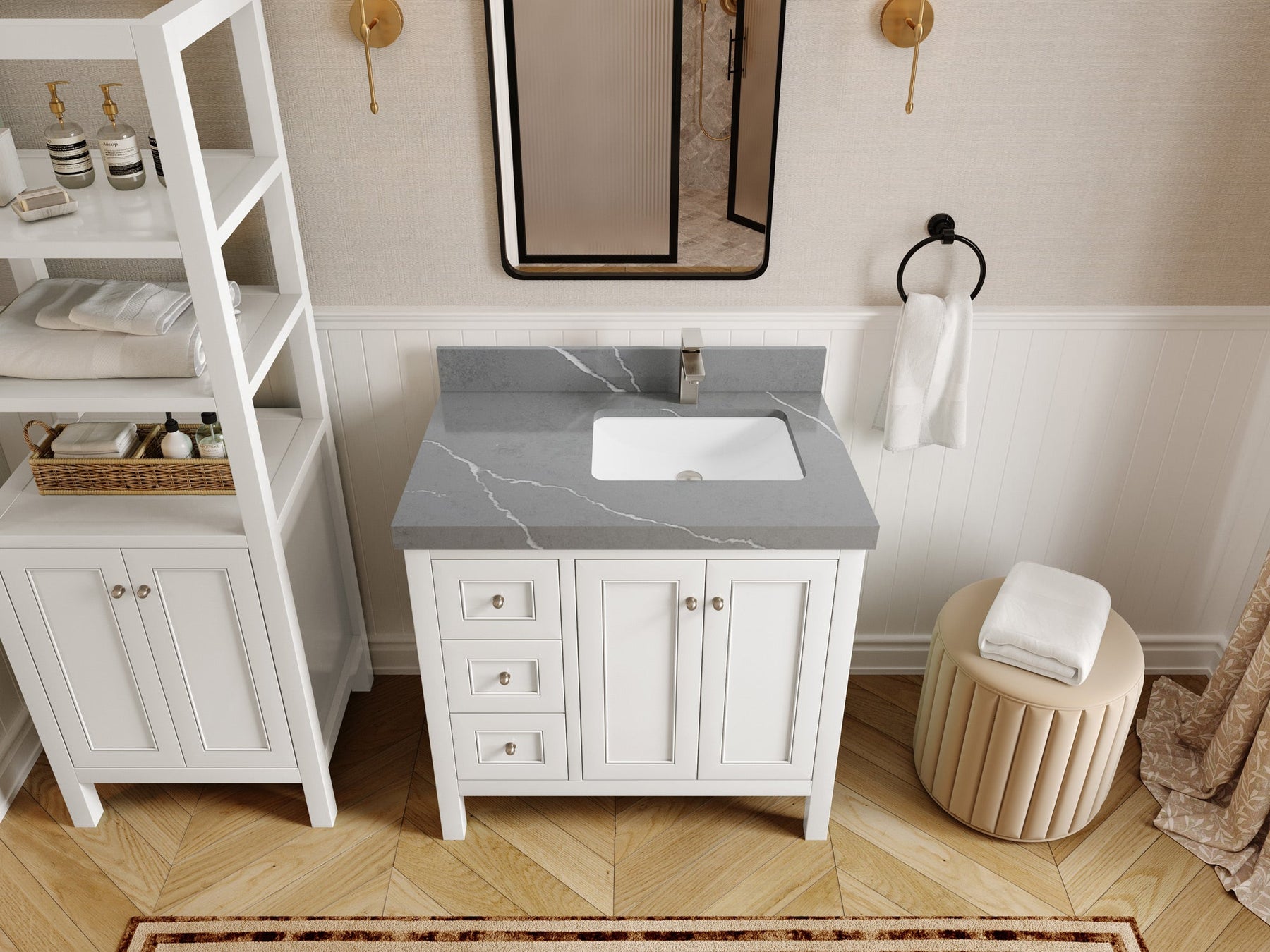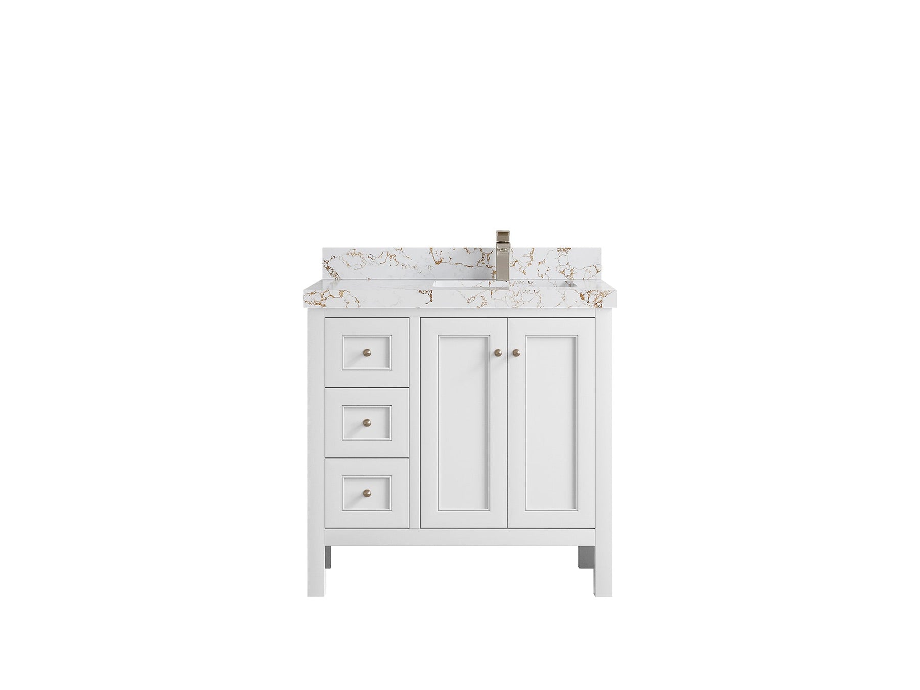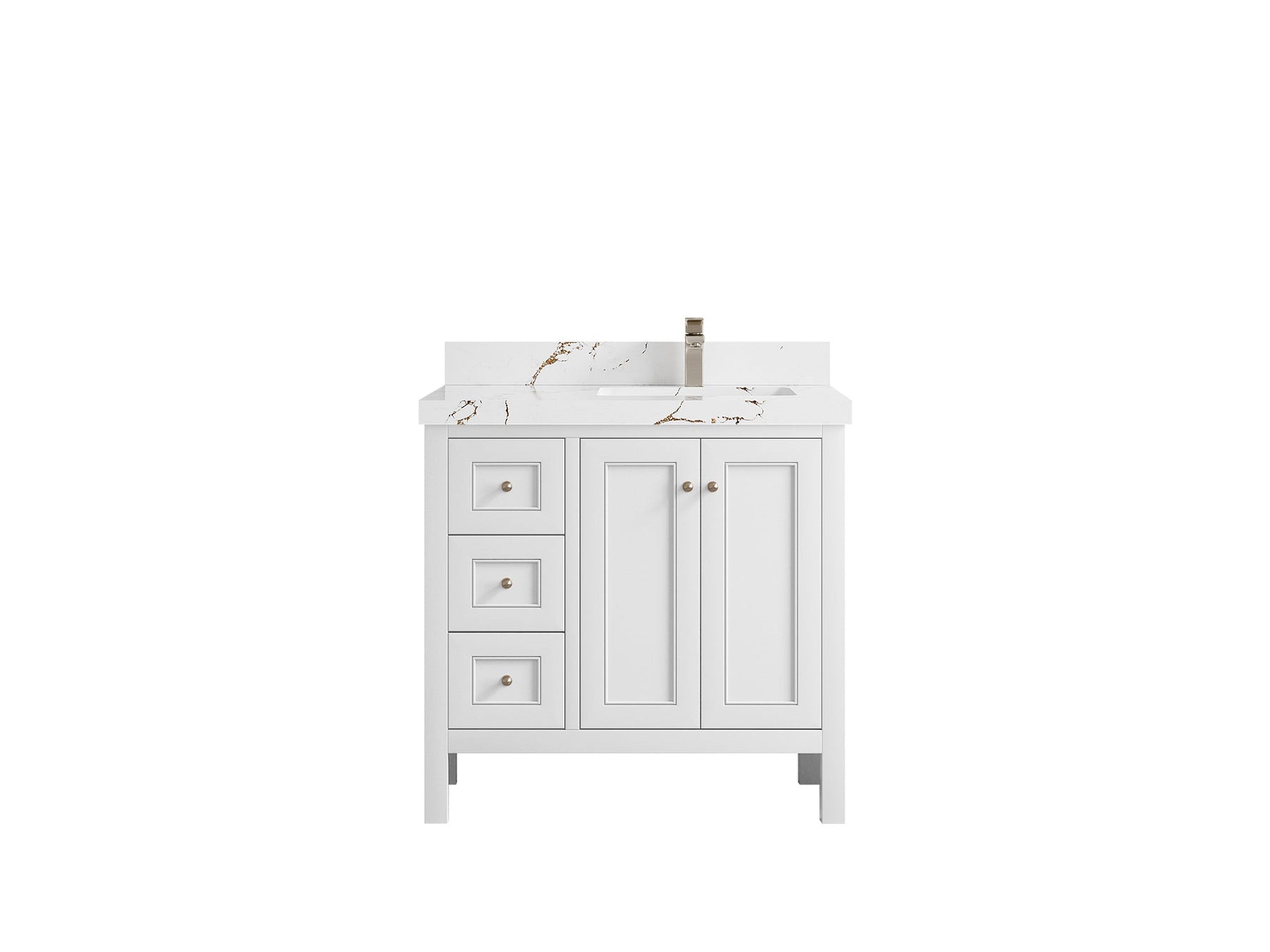 Faucet Hole(S): Comes with Single Faucet, 8 (in.) Widespread Faucet, Wall mount Faucets - Only Available for White Quartz and Carrara Quartz. (PLEASE ADD THIS CONFIGURATION UNDER COUNTERTOPS SECTION )