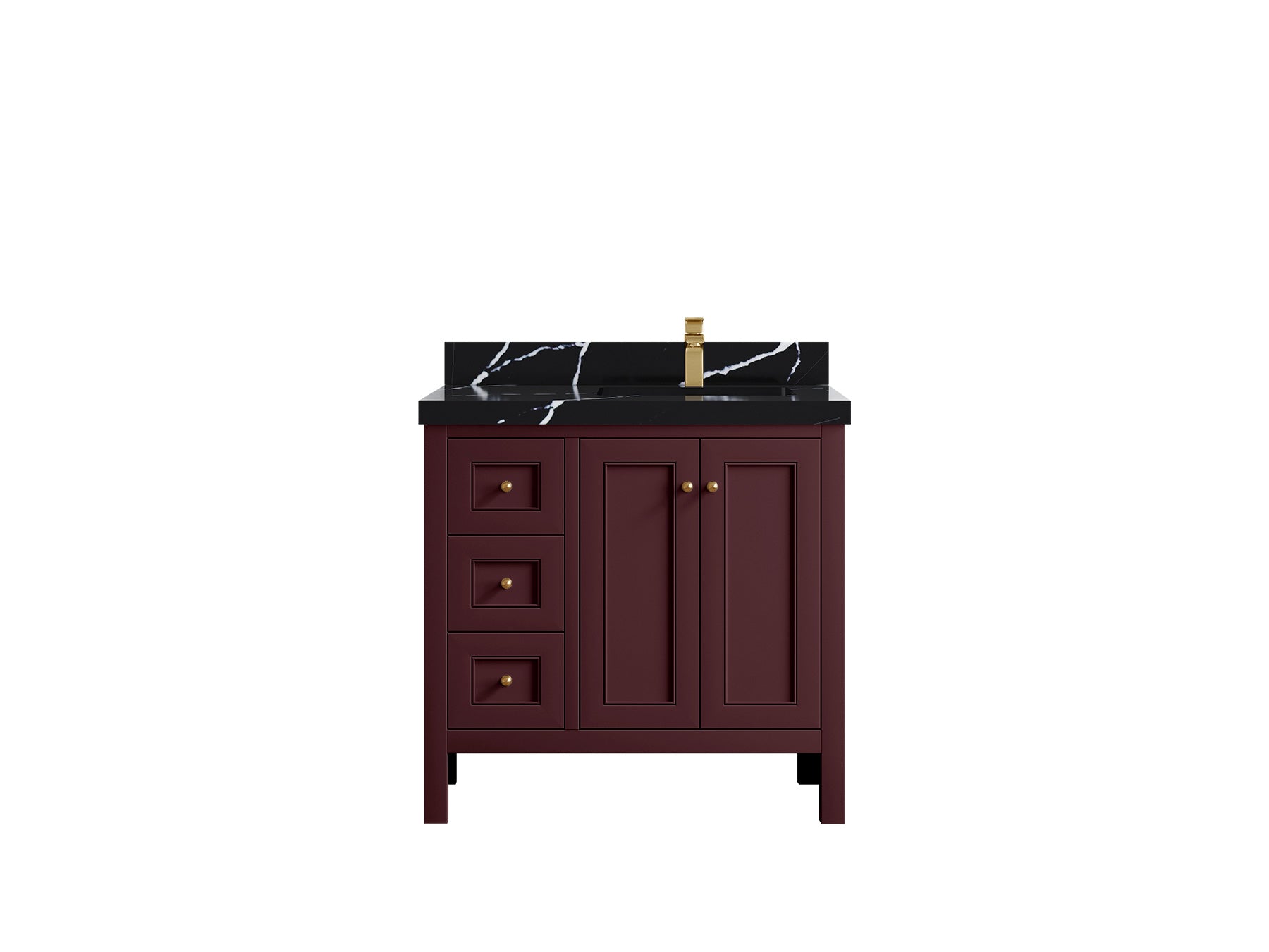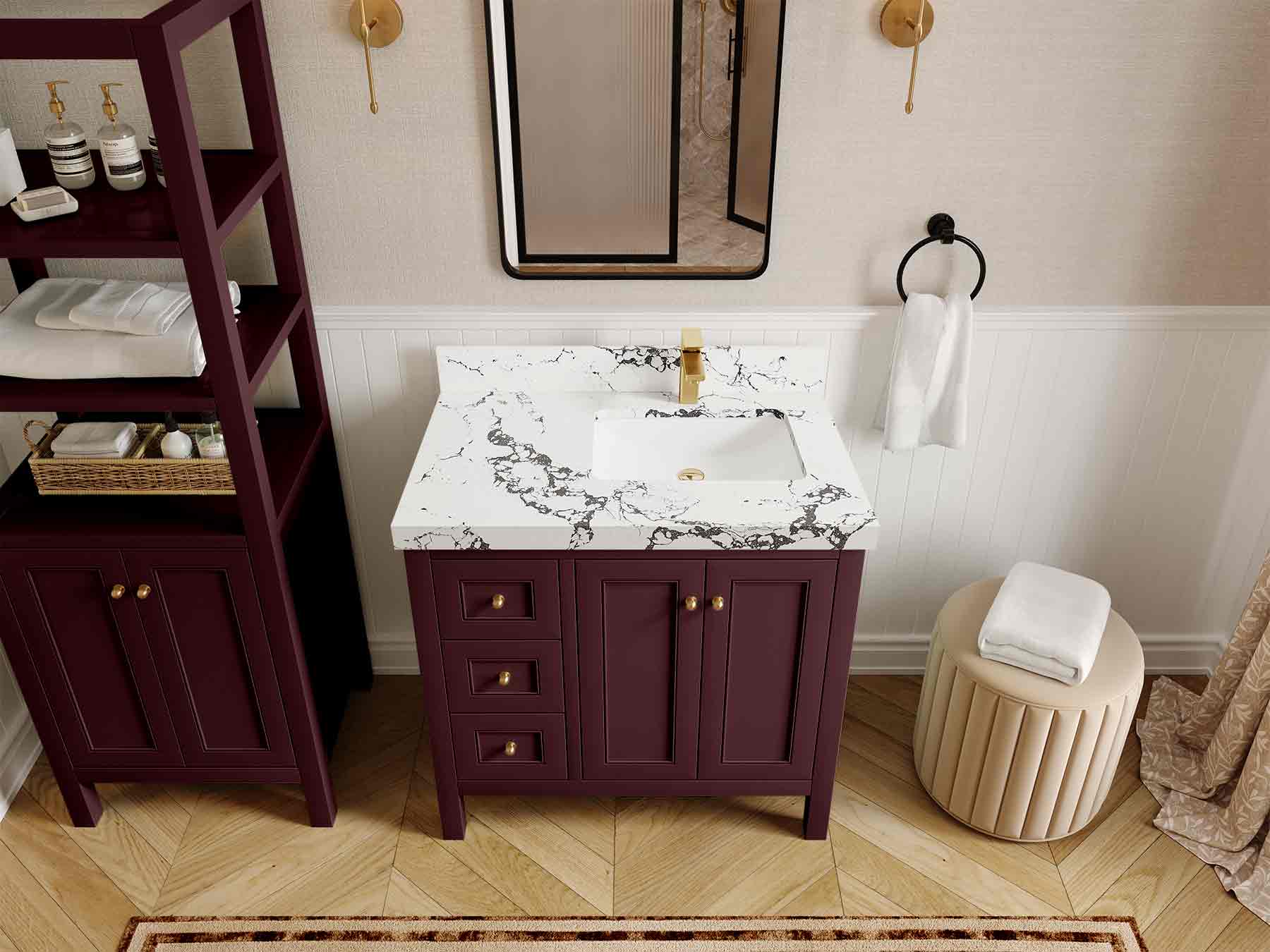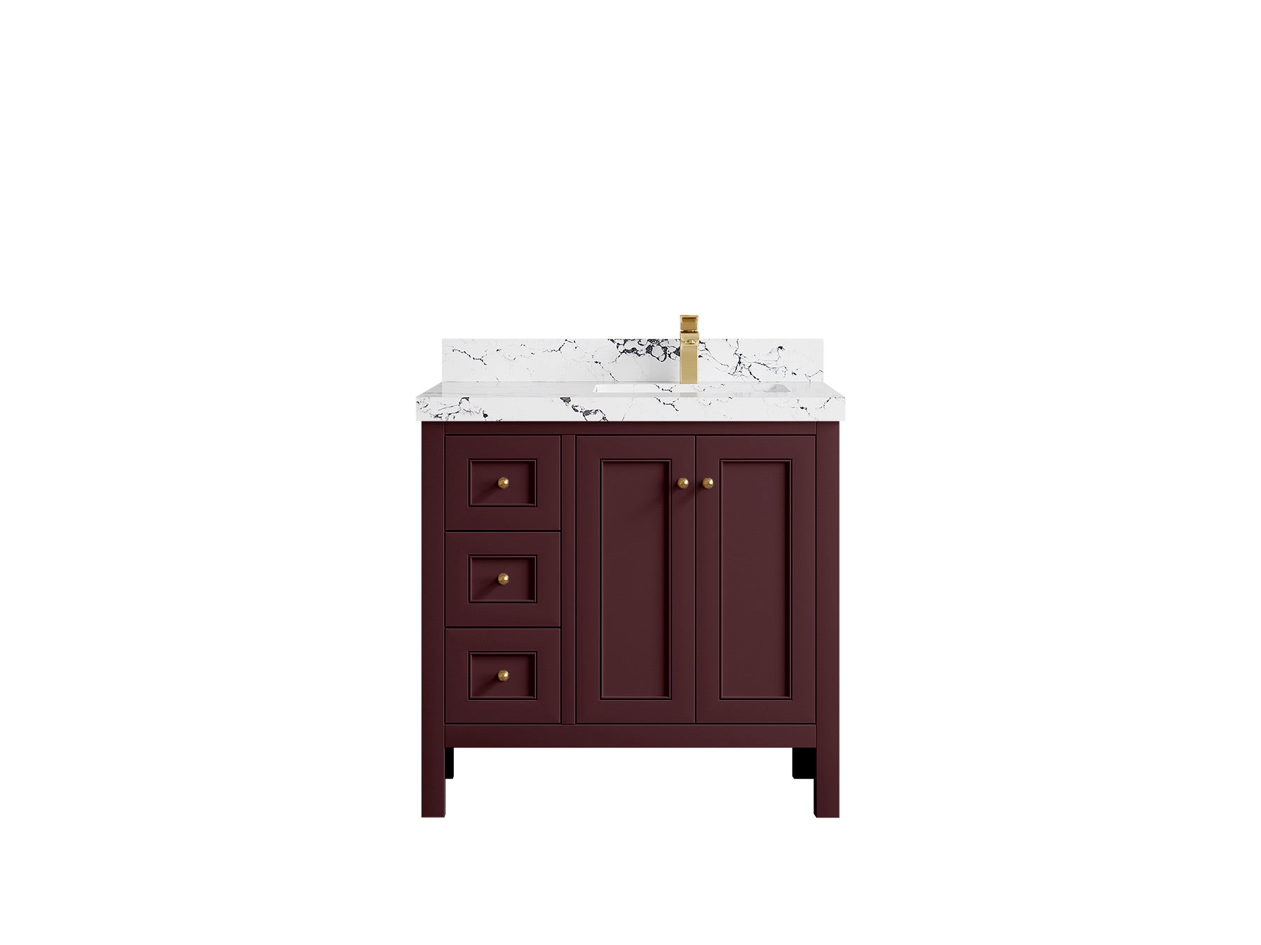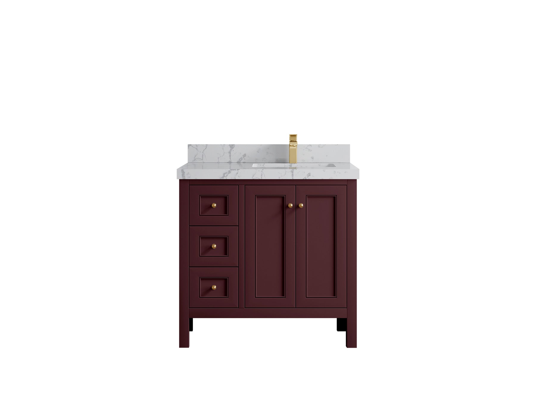 Nashville 36 in. W x 22 in D Right Offset Sink Bathroom Vanity | Burgundy