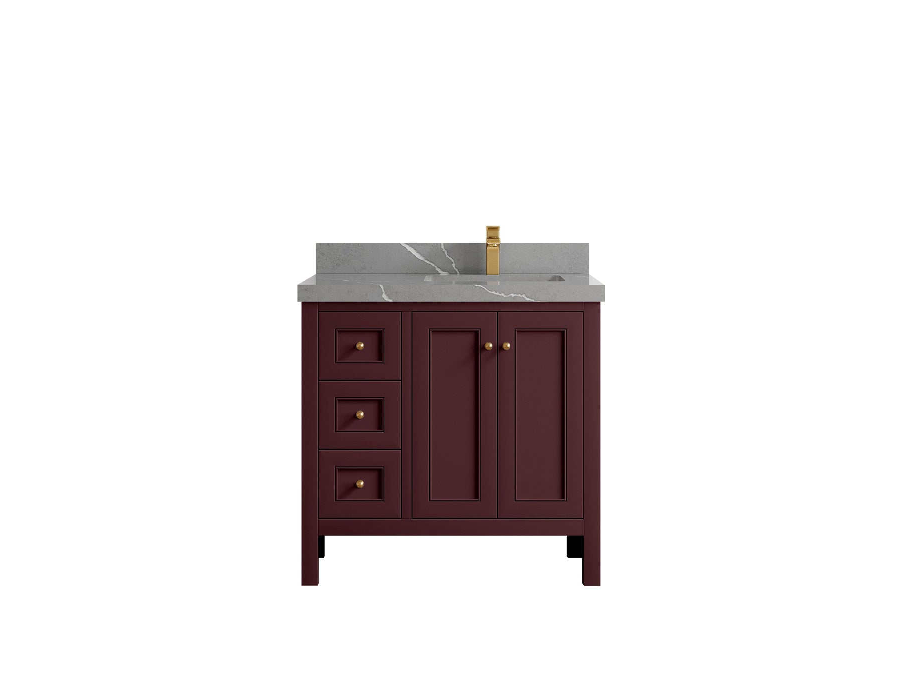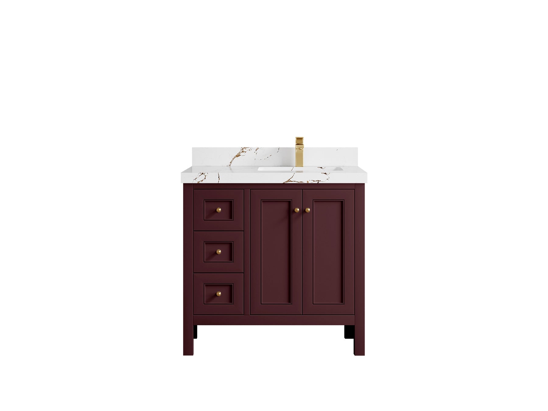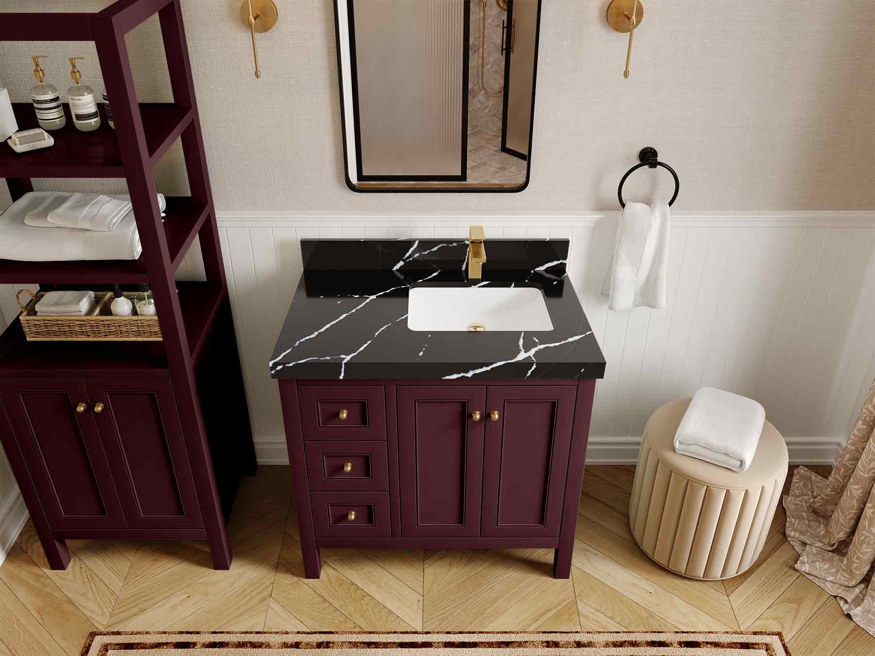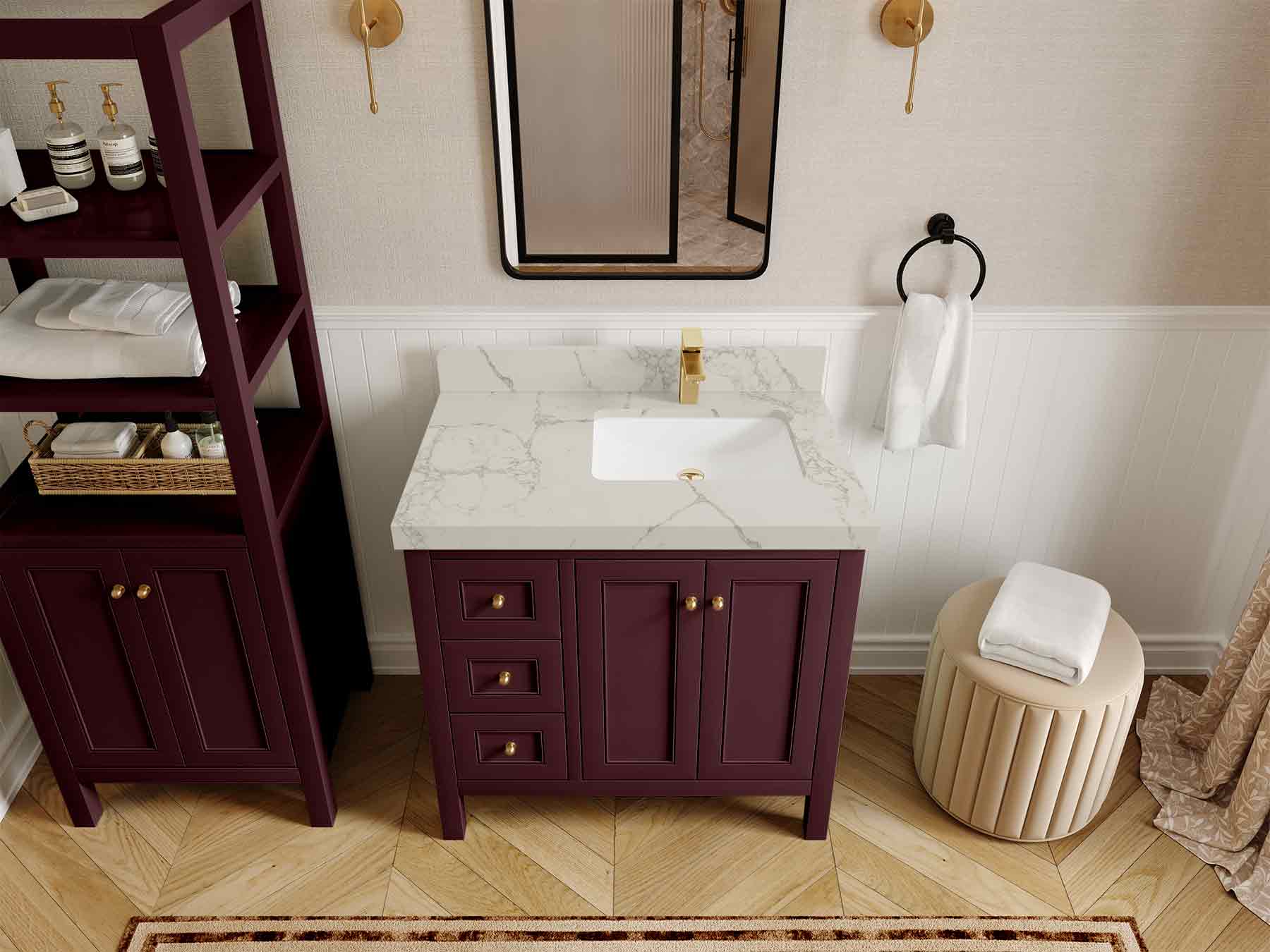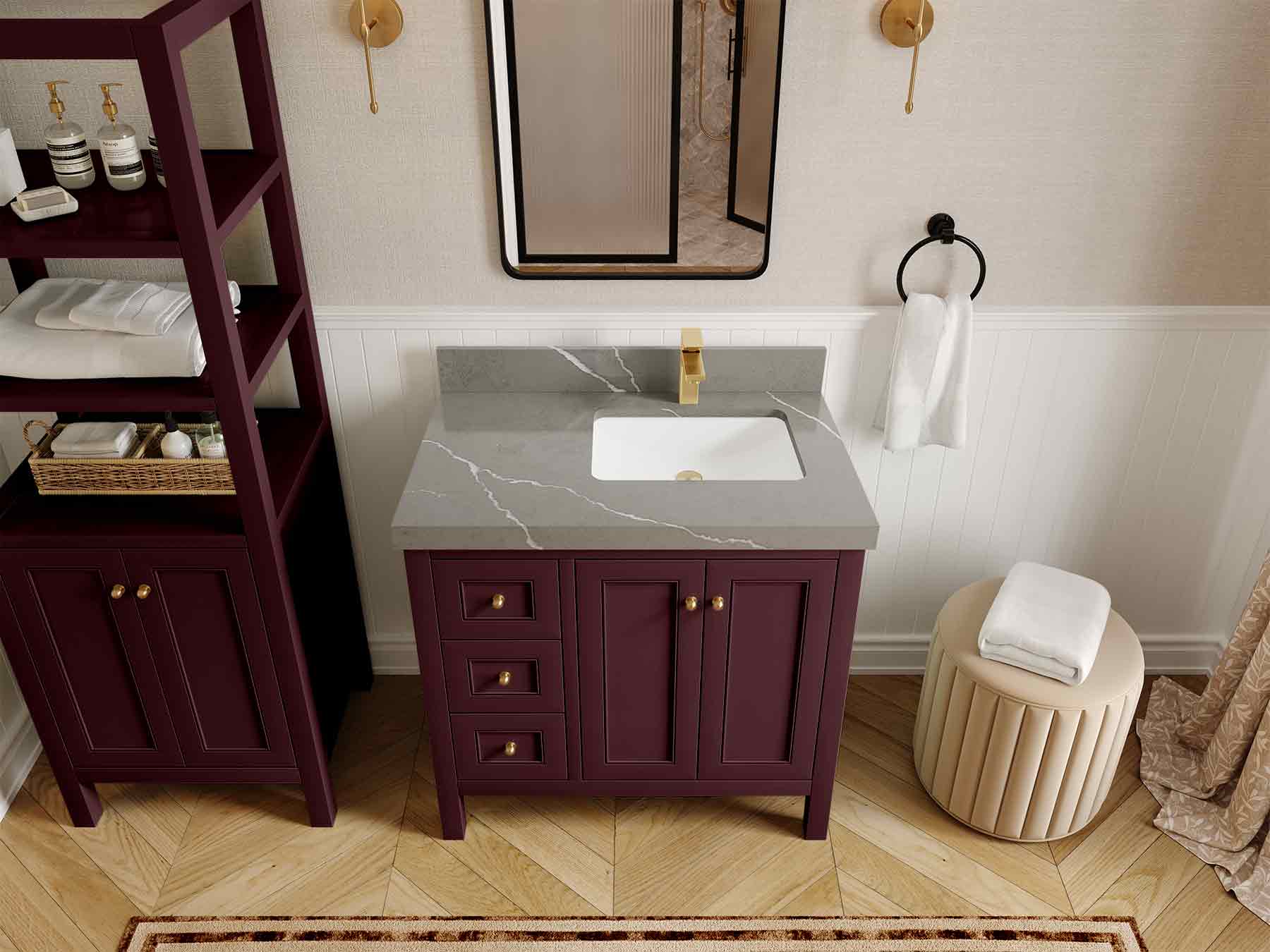 Nashville 36 in. W x 22 in D Right Offset Sink Bathroom Vanity | Burgundy