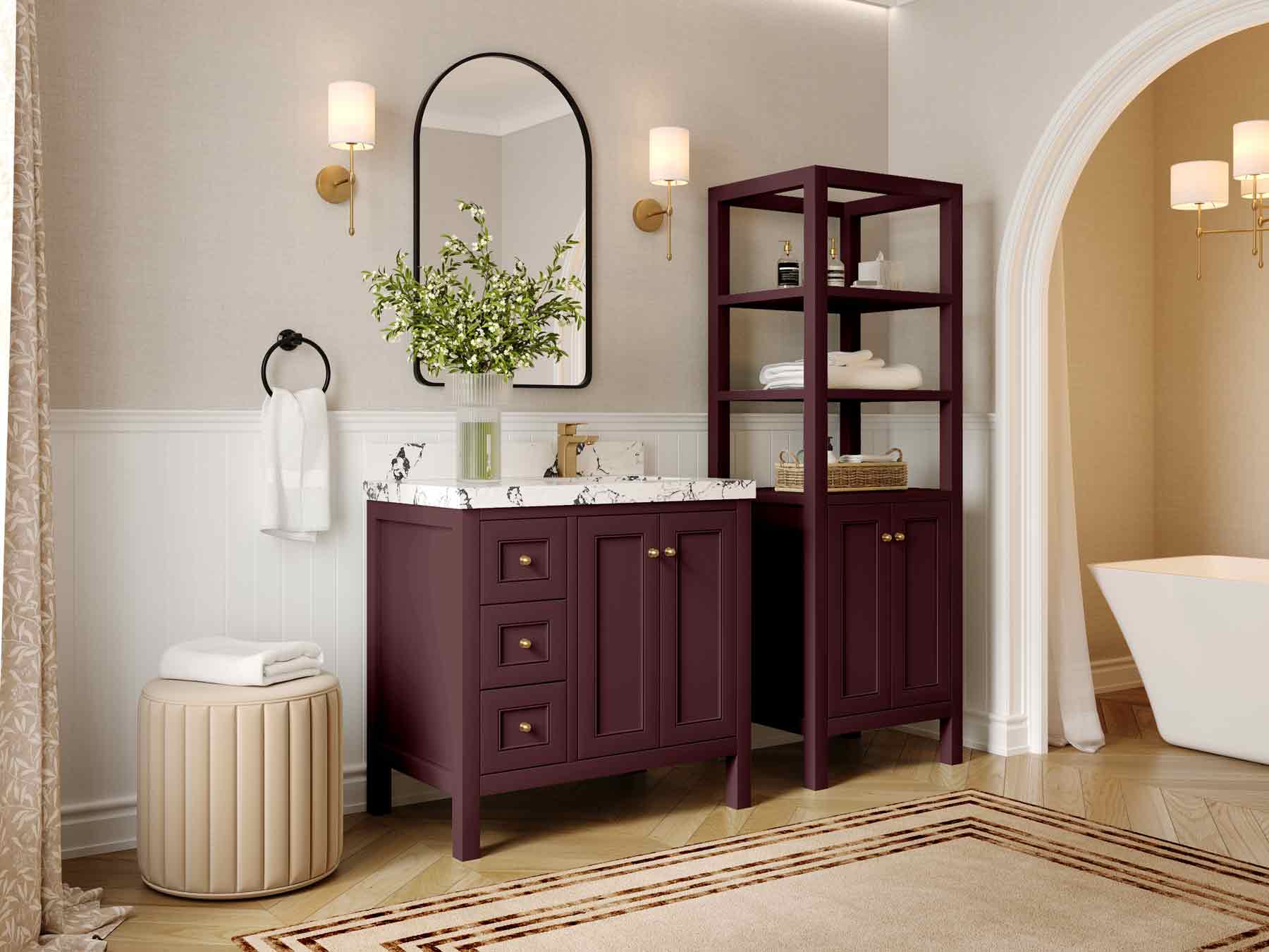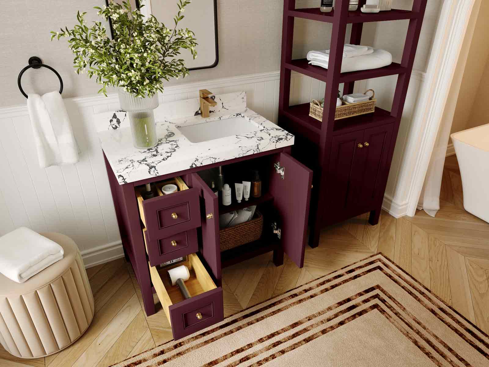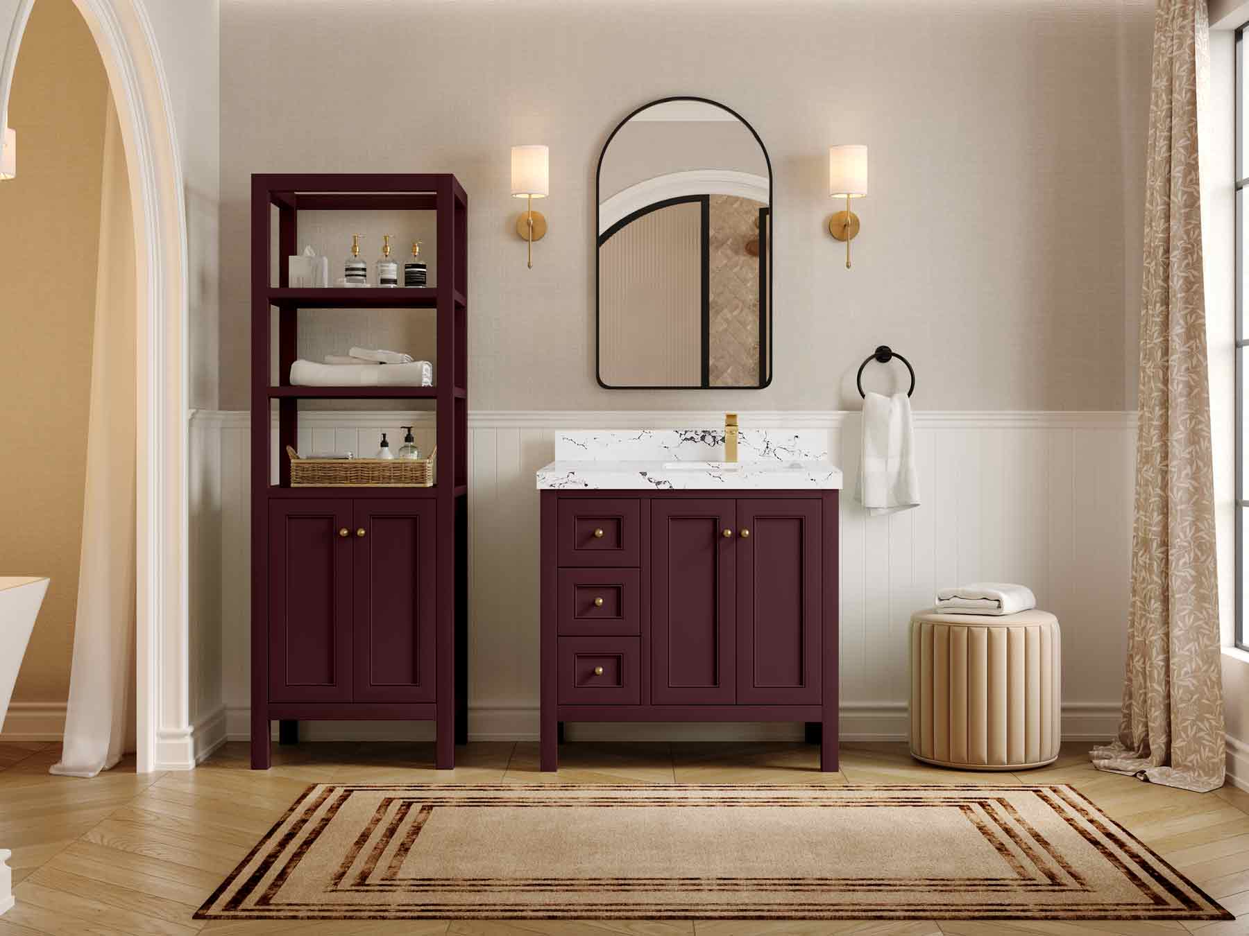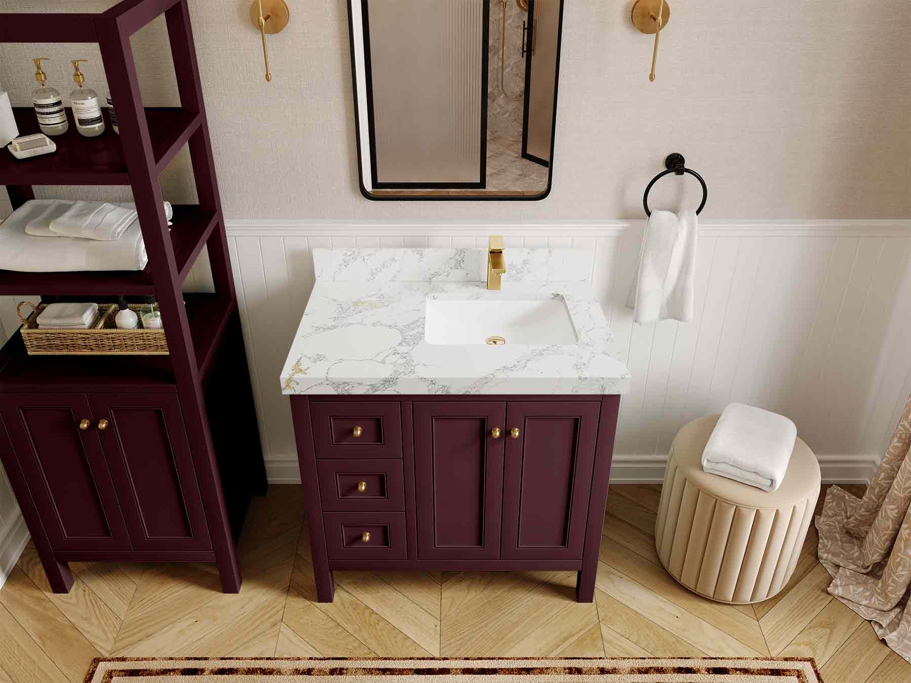 Nashville 36 in. W x 22 in D Right Offset Sink Bathroom Vanity | Burgundy